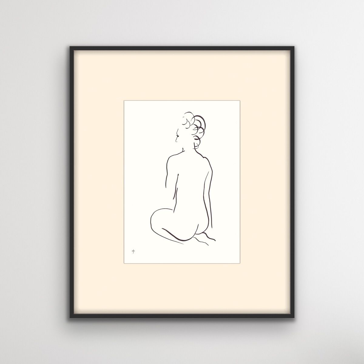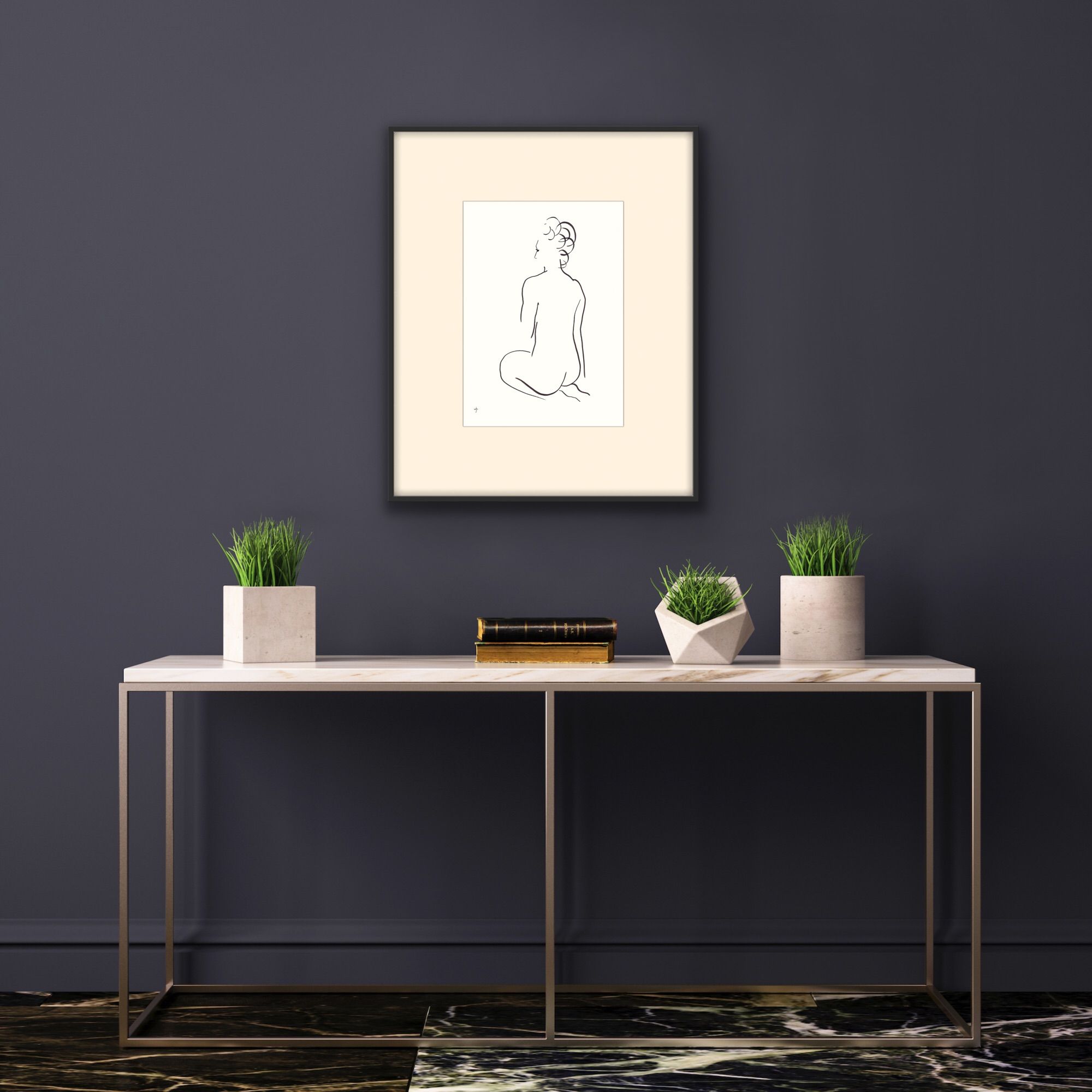 #2209E is an original minimalist style drawing by artist David Jones. In this contemporary life drawings David Jones used a drawing techniques central to his practise which involved meditative drawing, helping to create the clean lines and considered compositions.