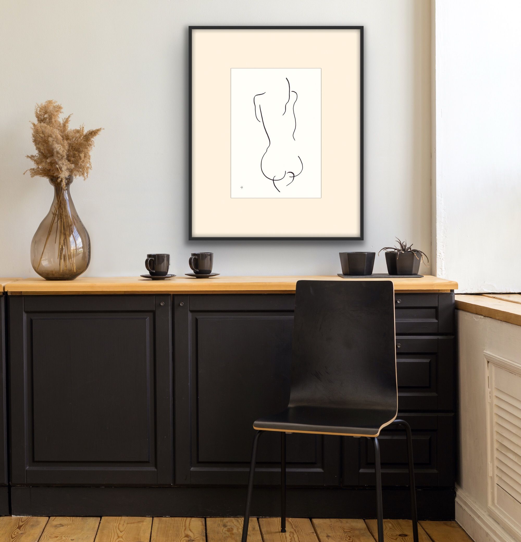 #2209G is an original meditative life drawing by David Jones. A technique the artist has developed to create these beautifully composed and minimal figurative drawings. David Jones, artist, is pleased to present a series of nude drawings in the style of Matisse. David Jones art is represented by Wychwood Art