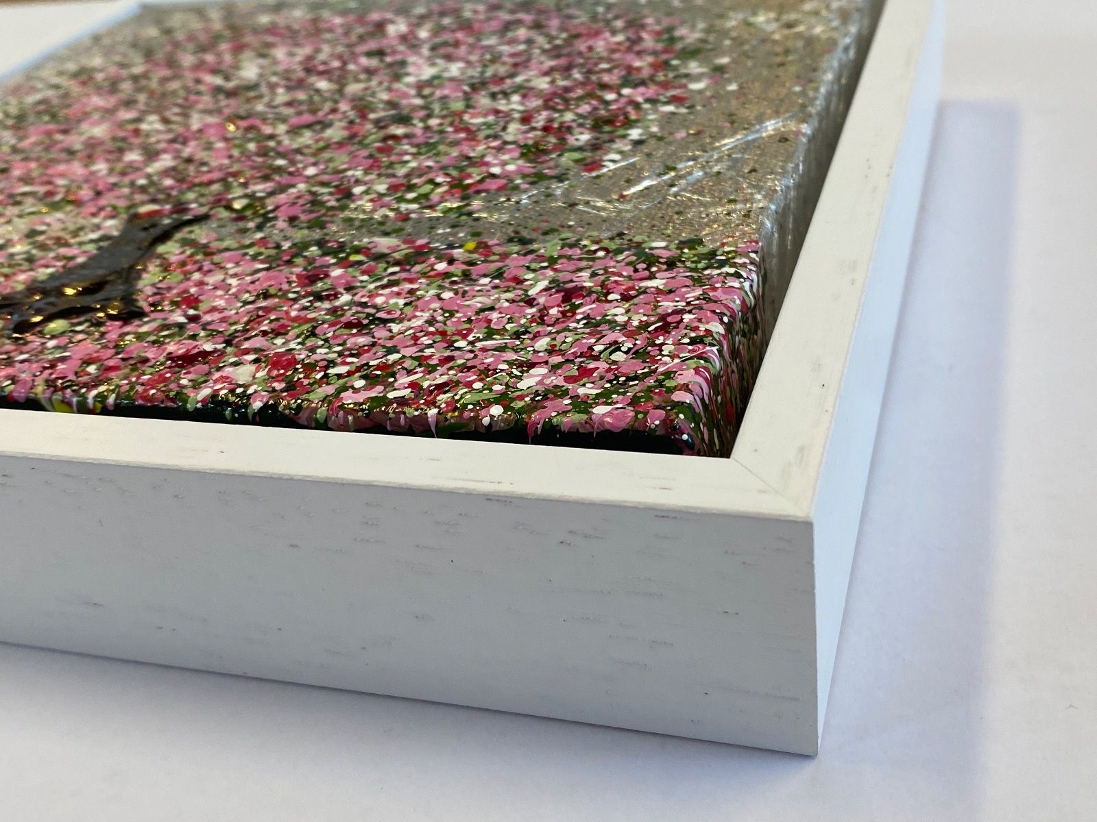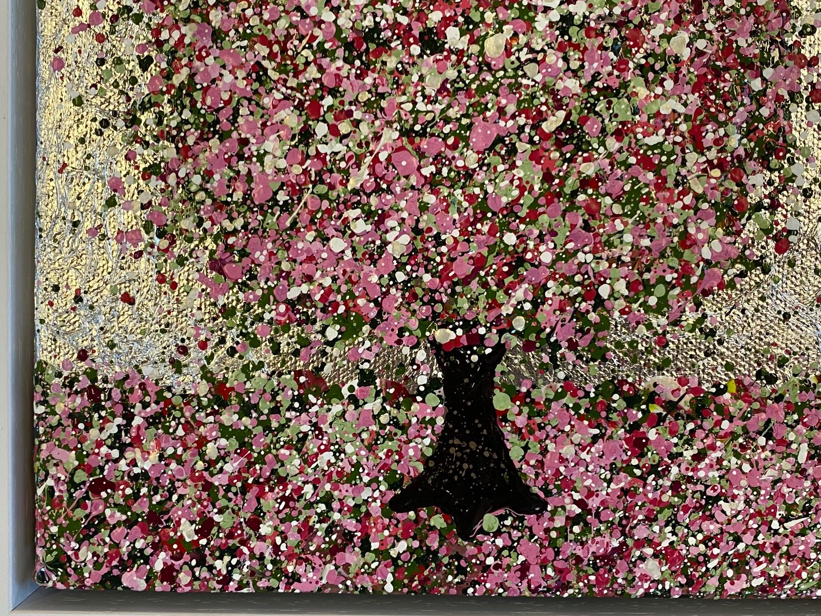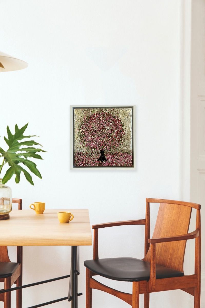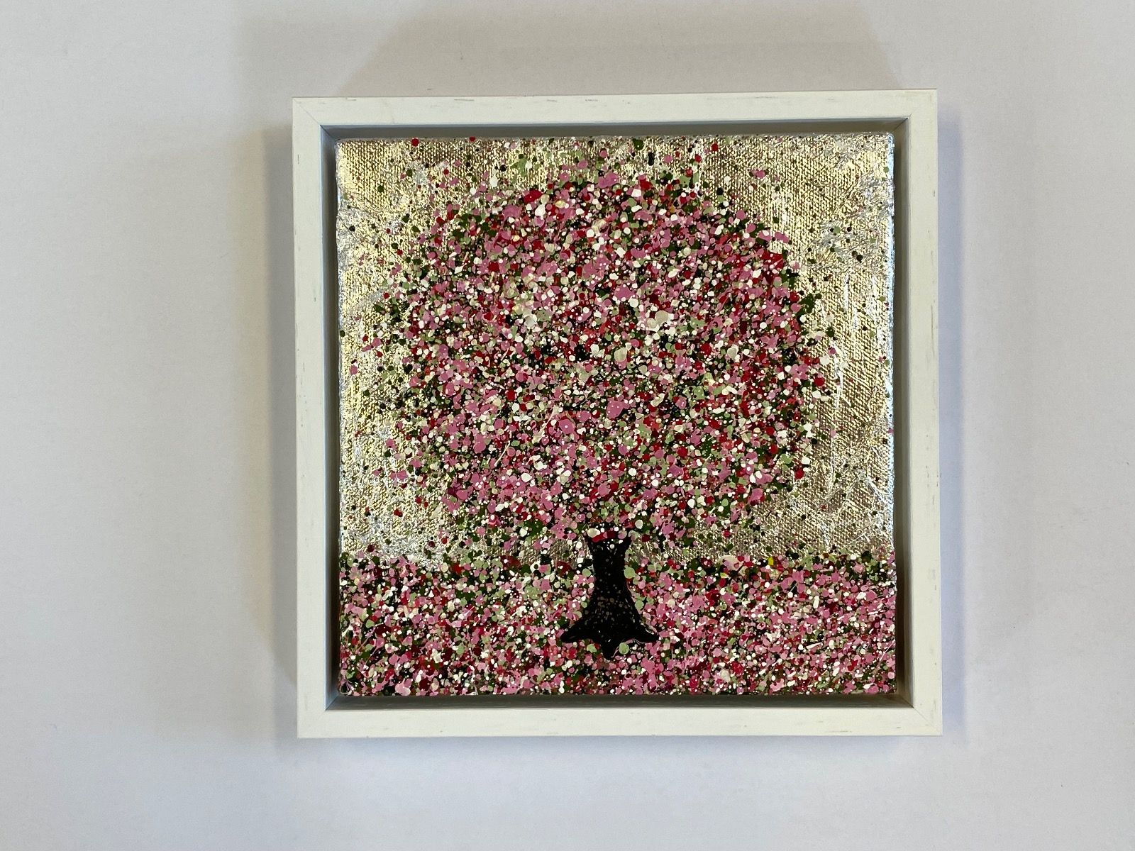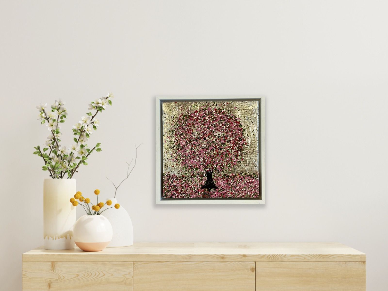 New original landscape painting by Nicky Chubb. Colourful and textured landscape painting of a tree with a pink shiny background. ADDITIONAL INFORMATION: signed and dated by artist on the back of the painting Acrylic on Canvas 23.2 H x 23.2 W x 4 D cm (9.13 x 9.13 x 1.57 in) Sold framed Image size: Height: