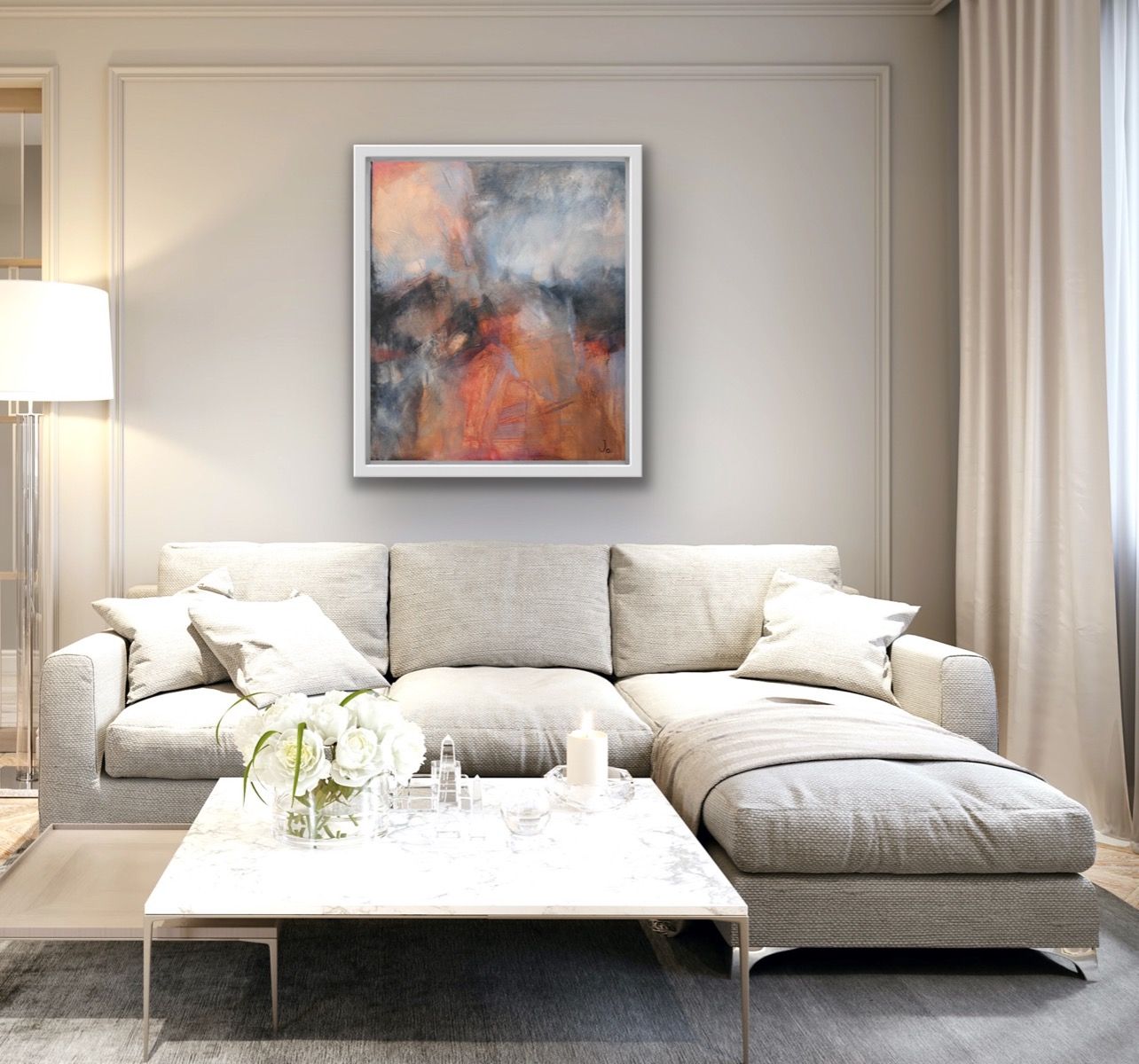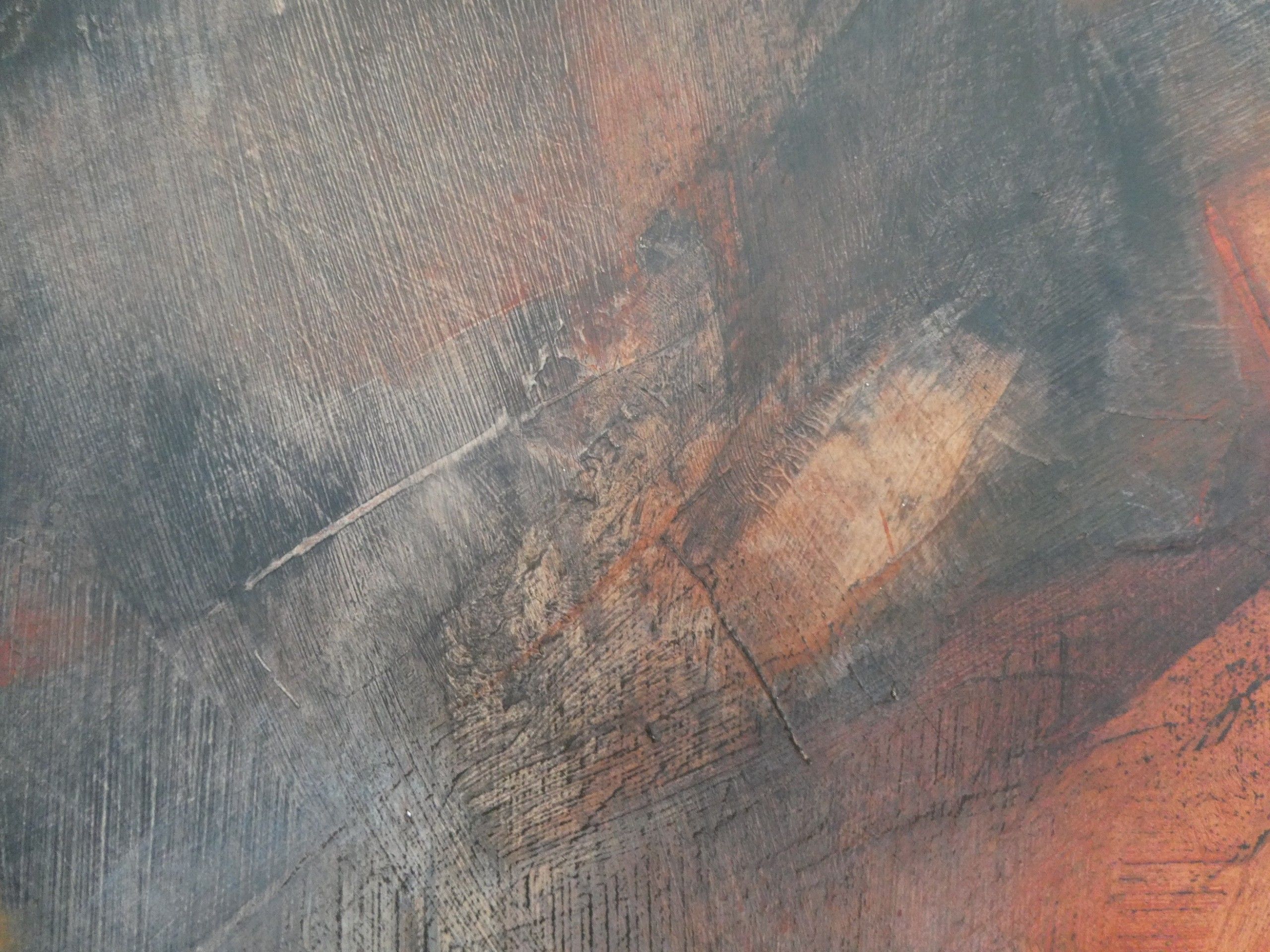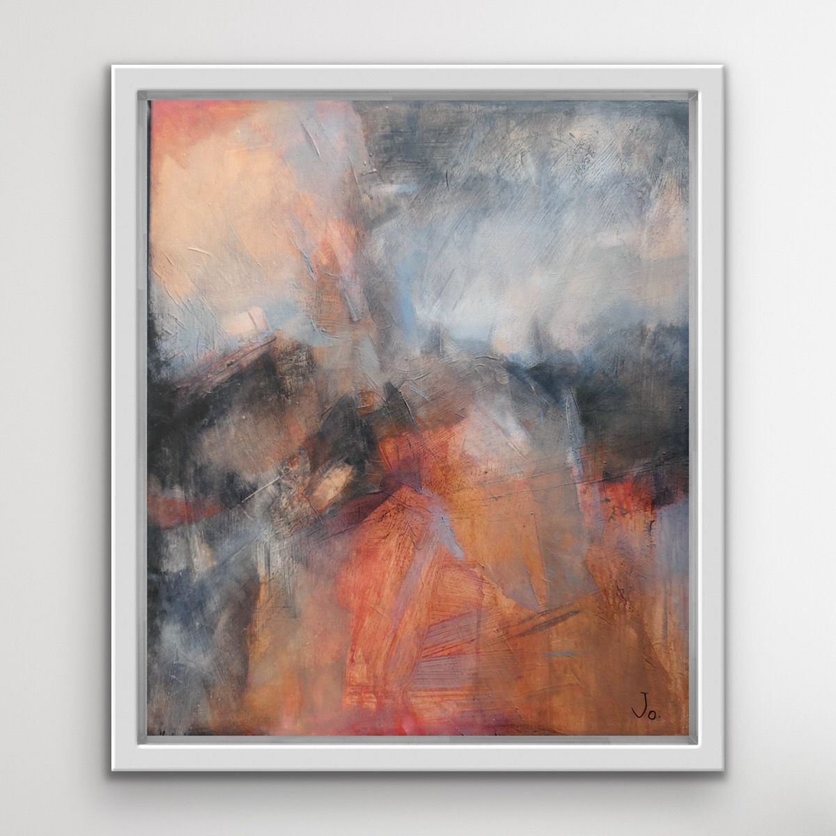 Original landscape painting with suggestions of dramatic skies and stormy weather. Paint applied onto a textured ground and then worked into.