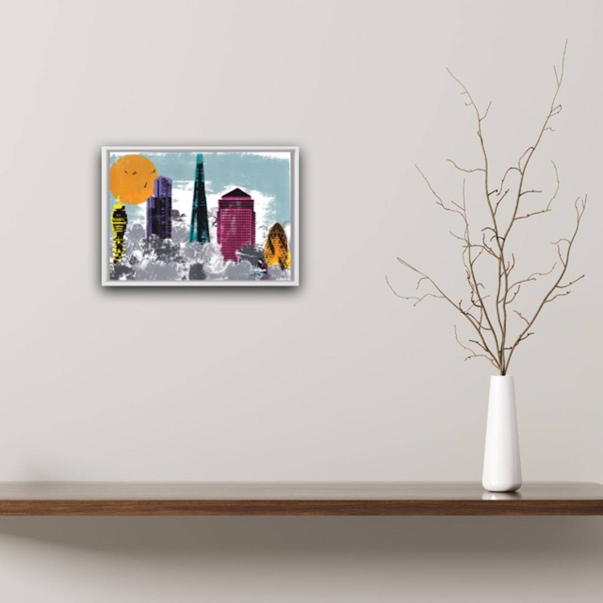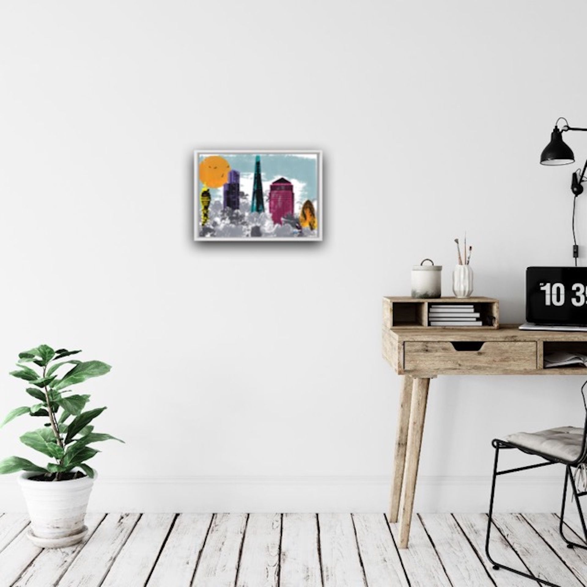 Katie Edwards Above the Clouds Limited Edition Silkscreen Print Edition of 10 Image Size: H 20cm x W 28.5cm Mounted Size: H 30cm x W 40.7cm x D 0.3cm Above the Clouds is a limited edition cityscape print by Katie Edwards. This piece is a playful image showing London's tallest buildings poking through the clouds, where