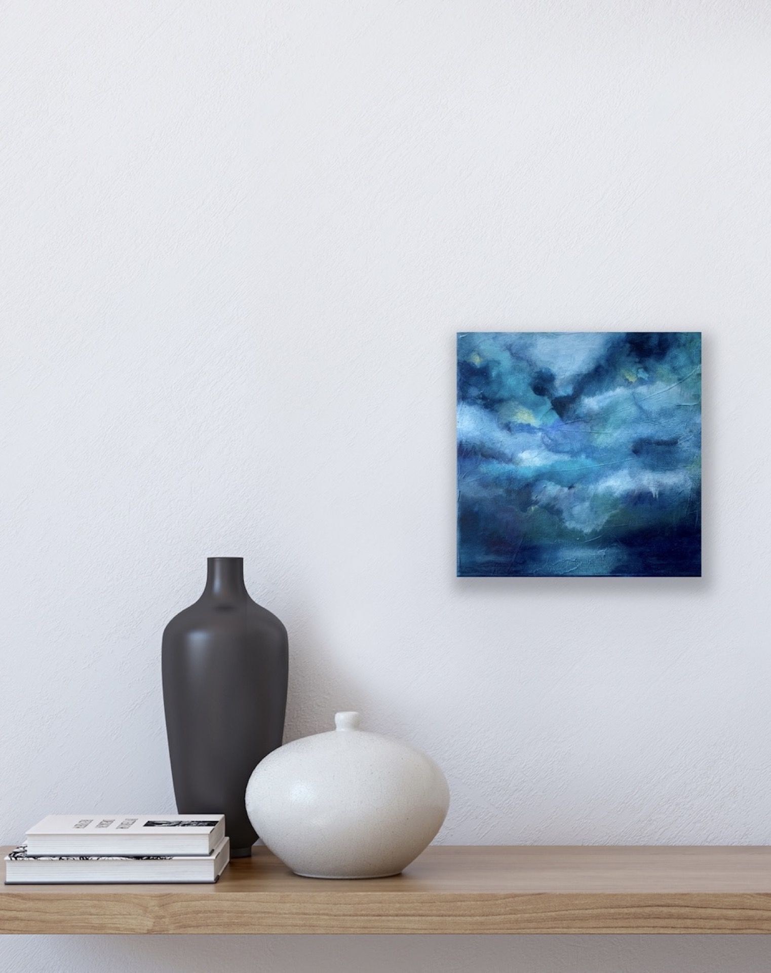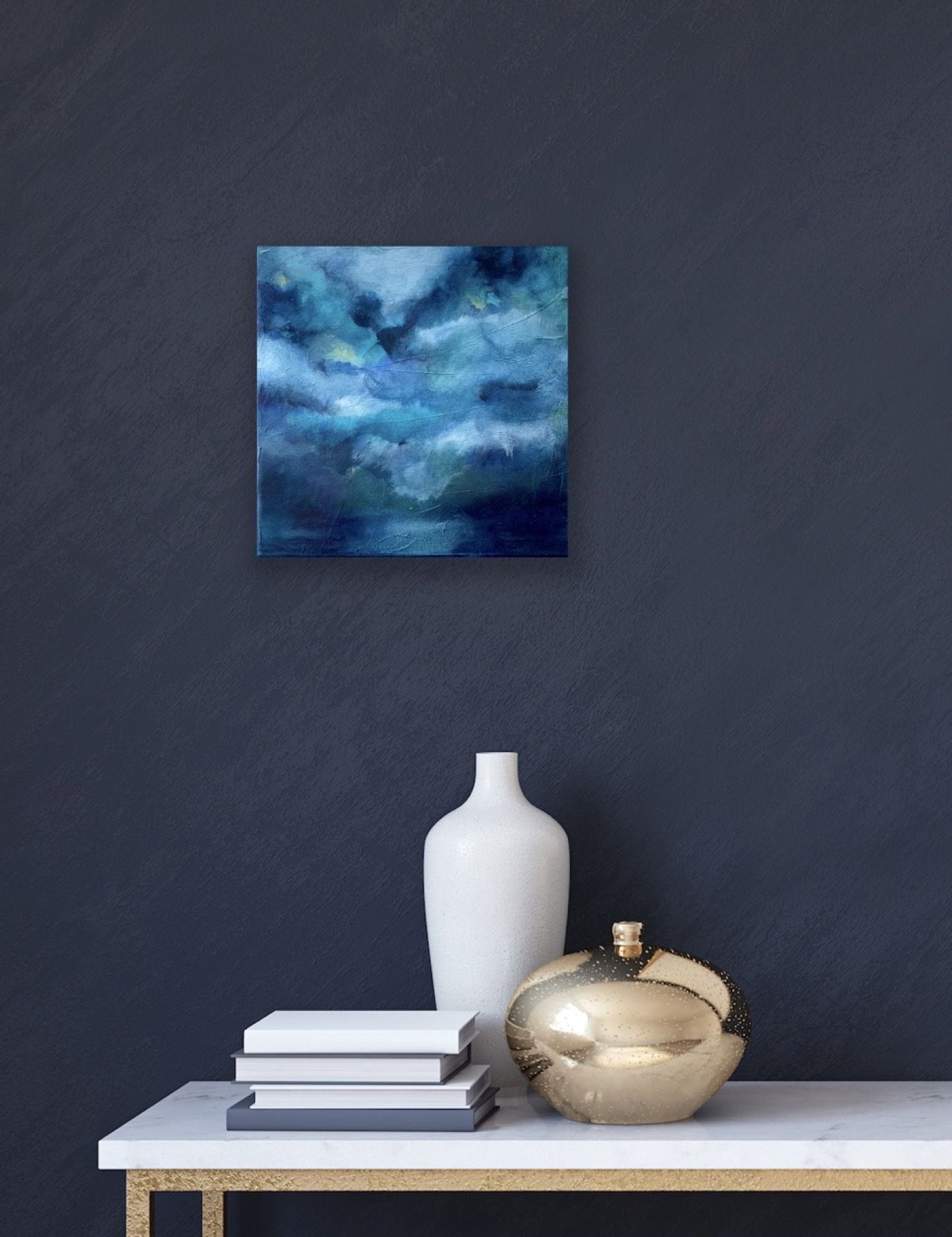 Called abstract horizon, it's an atmospheric original abstract painting in ink and mixed media. Part of the horizon series, this series explores connections with nature and the meditative value of looking towards a horizon and the grounding it gives. Theres something calming looking out to sea. There is a point at which you