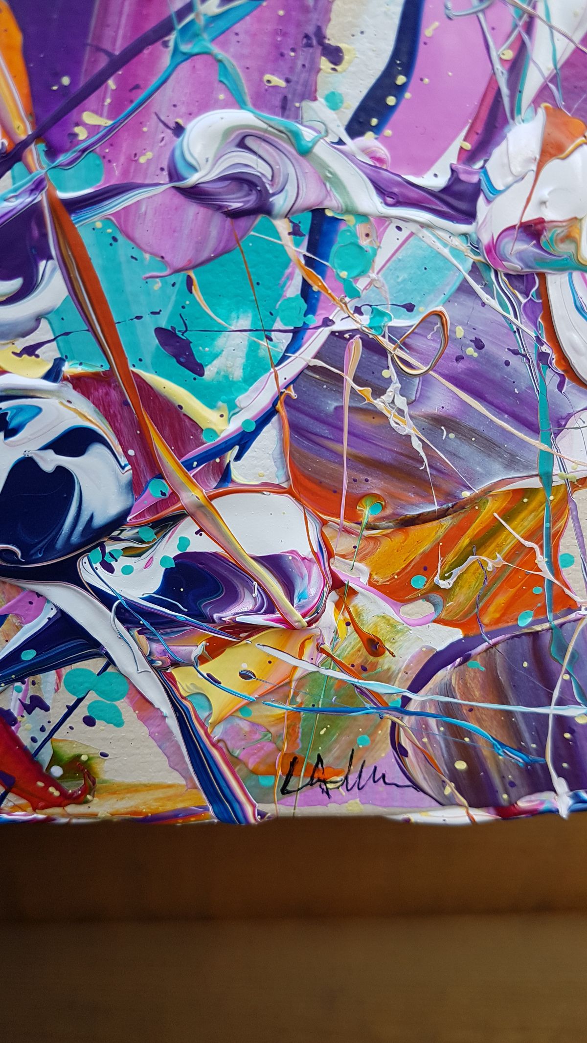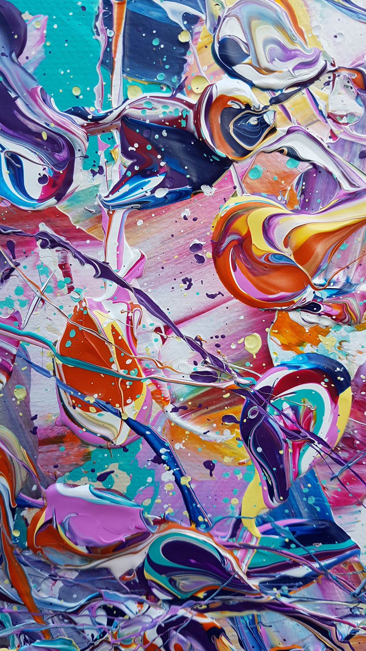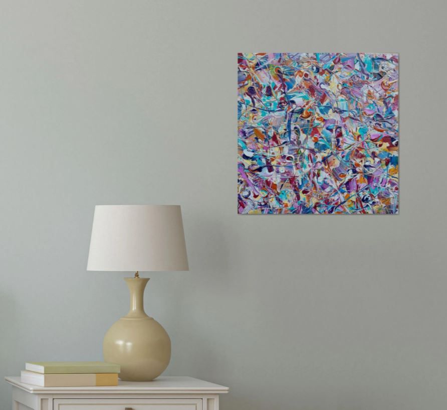 Abstract Synapses - Spring Break - An Original abstract painting by Lucy Moore. On deep edge canvas. This piece turned out better than I imagined. It takes a lot of patience to paint in this style mixing the paint just enough so it doesn't muddy. What I love the most