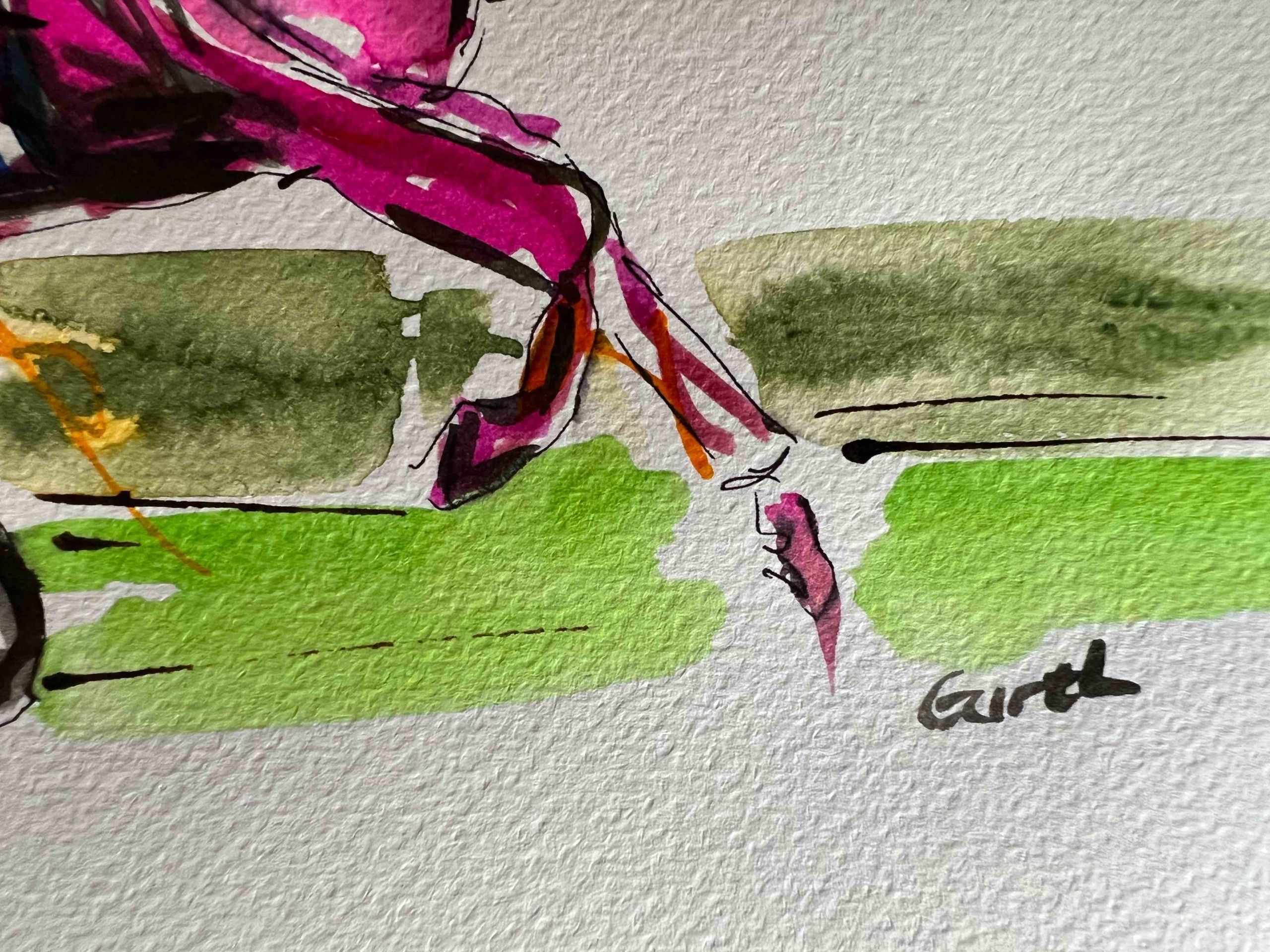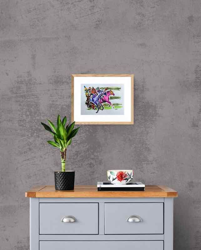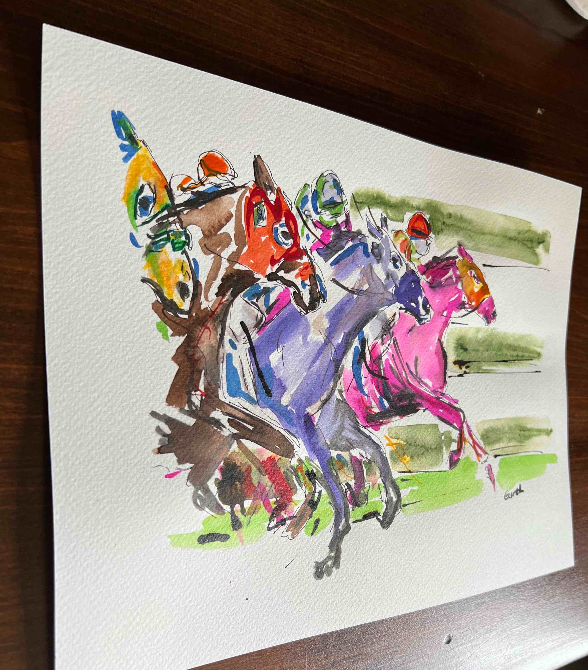 Garth Bayley Across the Line -Horses Racing Original pen and ink painting on watercolour paper Pen and ink on paper Image size: H24 cm x W32 cm x D 0.1cm Sold Unframed Please note that in situ images are purely an indication of how a piece may look. Red Rumps -Horses Racing an original painting by