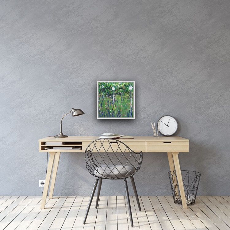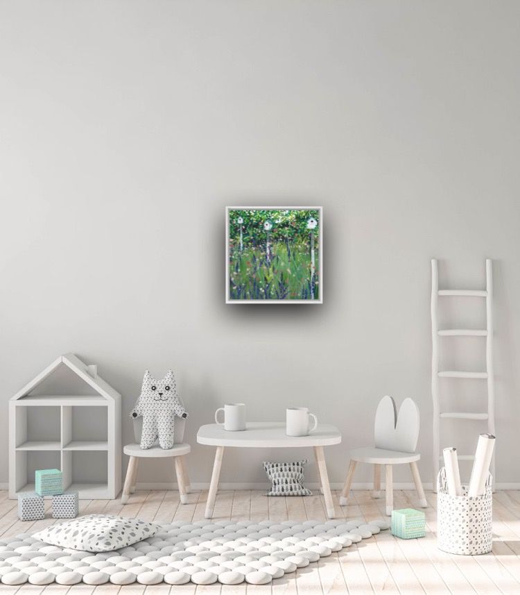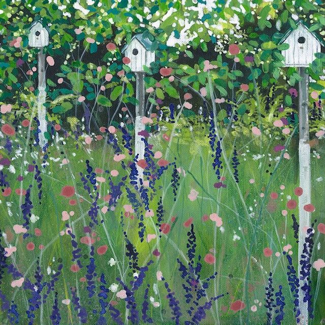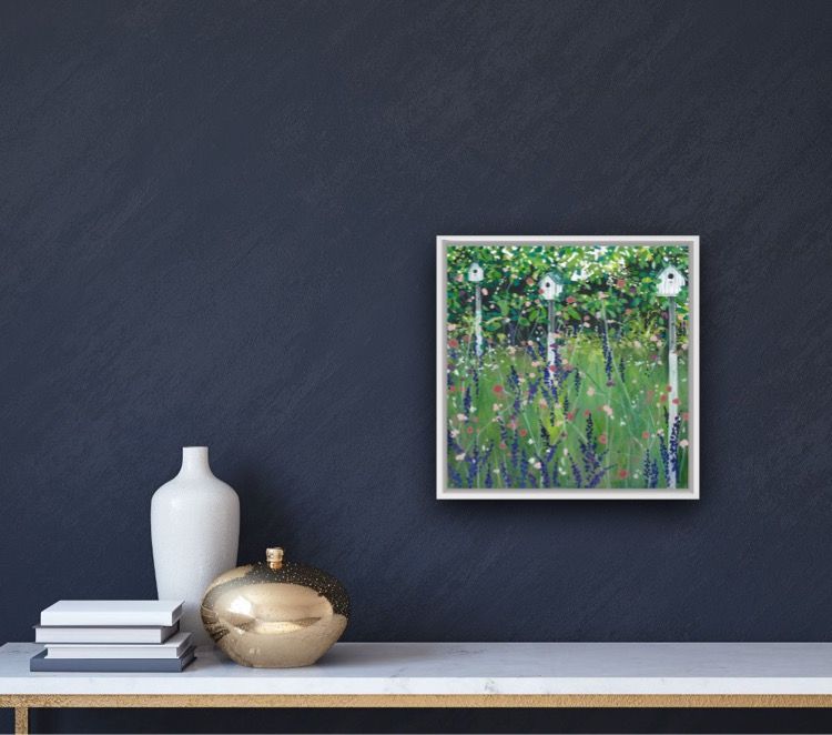 Adele Riley Bird Houses Original Acrylic Painting on Canvas Acrylic Paint and Acrylic Inks on Canvas Framed in a White Box Frame Image size: H 30.5cm (12″) x W 30.5cm (12″) x D 4cm (1.6″) Framed Size: H 34cm (13.4″) x W 34 (13.4″) x D 5.5cm (2.2″) Sold Framed in a White Box Frame Please note that