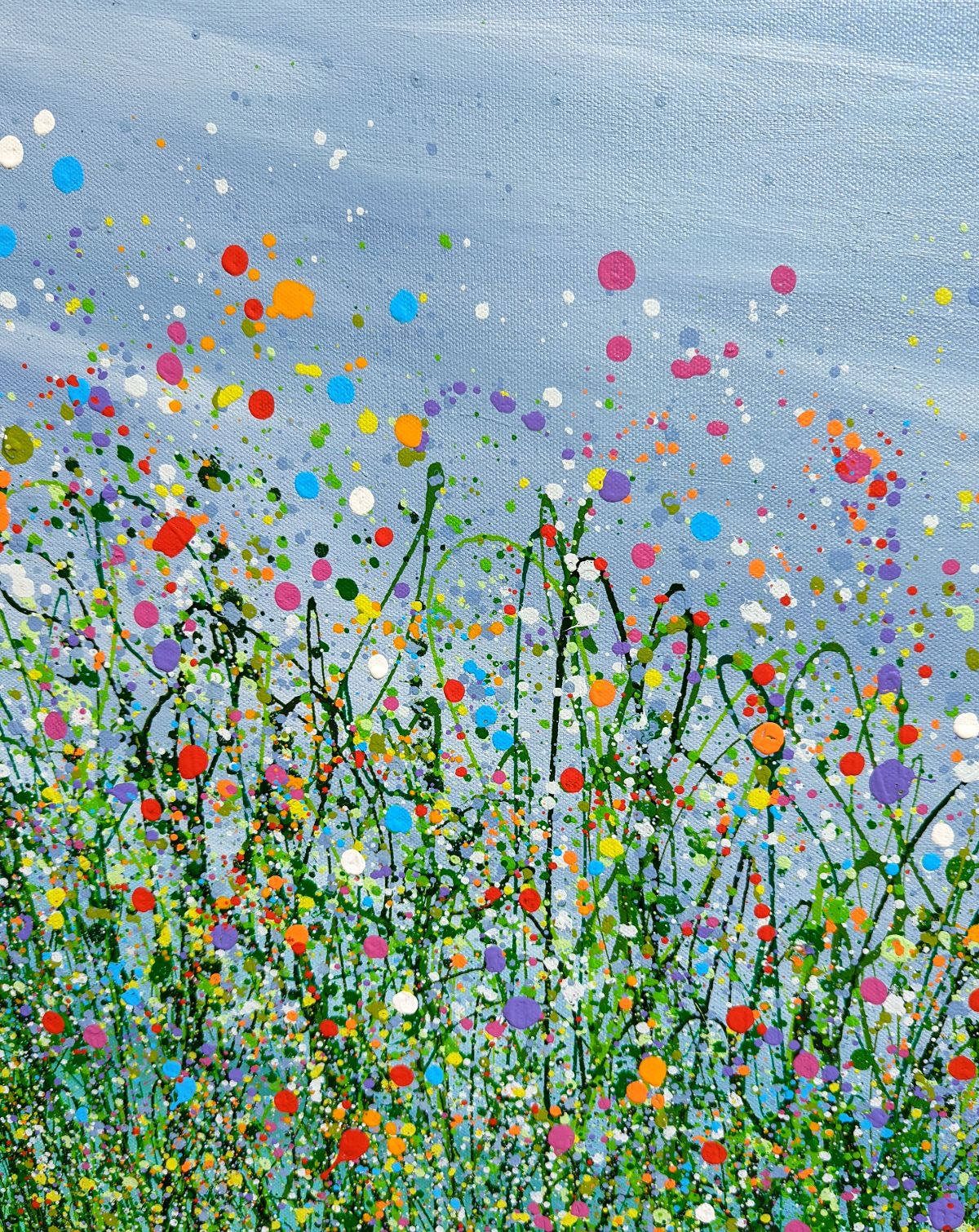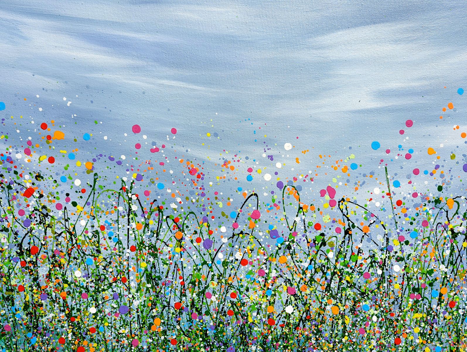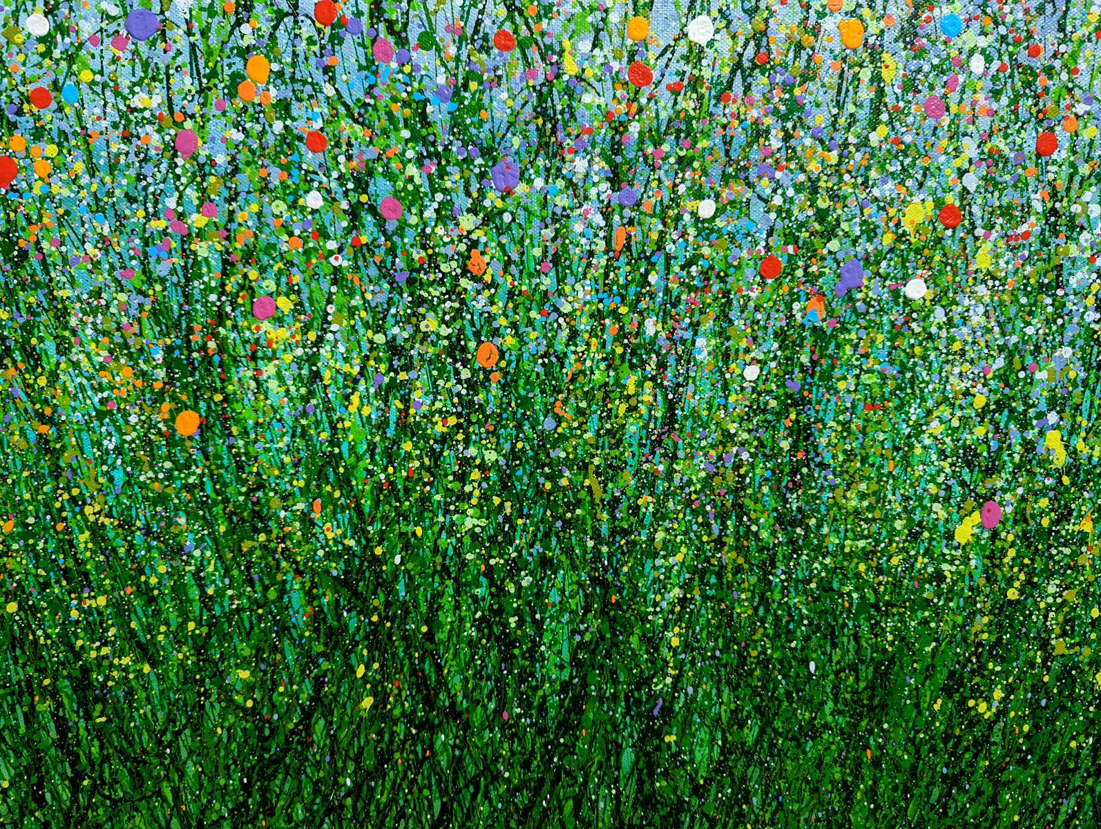 After The Rain #5 - After the rain, blooms begin to flourish. An Original semi-abstract painting by Lucy Moore. Using her signature string grass technique Lucy has created a semi-abstract twist to her classic meadow paintings. This piece would brighten any home or office, bring a little of the outside
