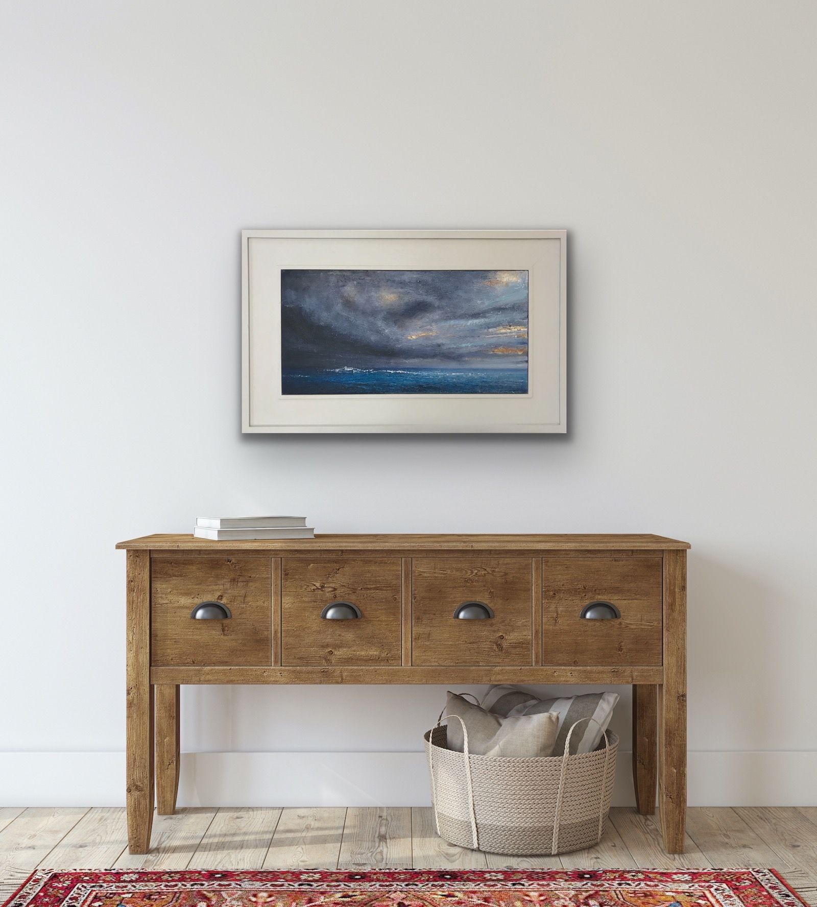 Alison Groom Tropical Storm Original Painting Oil over Acrylic Textured Ground on Board Image Size: H 26cm x W 51cm Framed Size: H 42cm x W 67cm x D 3cm Framed and Ready to Hang Signed Please note that any insitu images are purely an indication as to how a piece may look. Alison Groom is an artist based