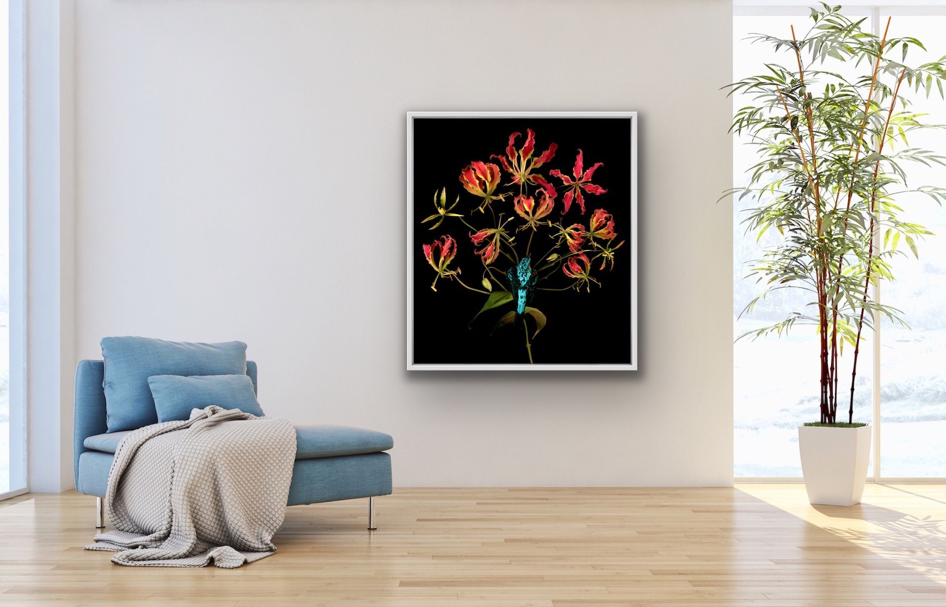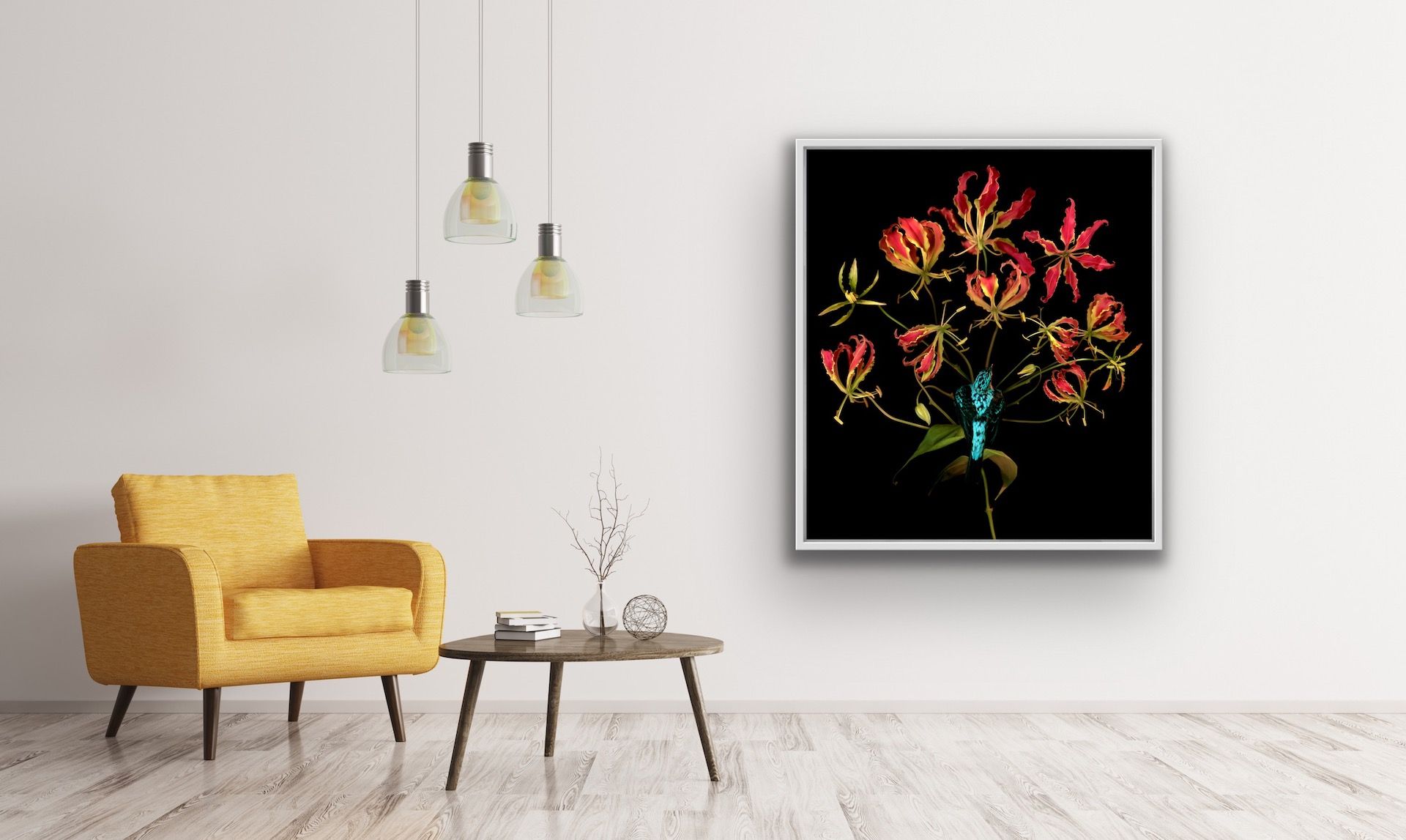 Allan Forsyth Flame Flight Limited Edition Archival Chromagenic Photographic Print Edition 12 Sheet Size: H 118cm x W 100cm x D 2cm Diasec Framed Allan Forsyth is an artist who explores a breadth of themes that is reflected in the range of techniques he employs: analogue and digital exposures taken by the artist exist in
