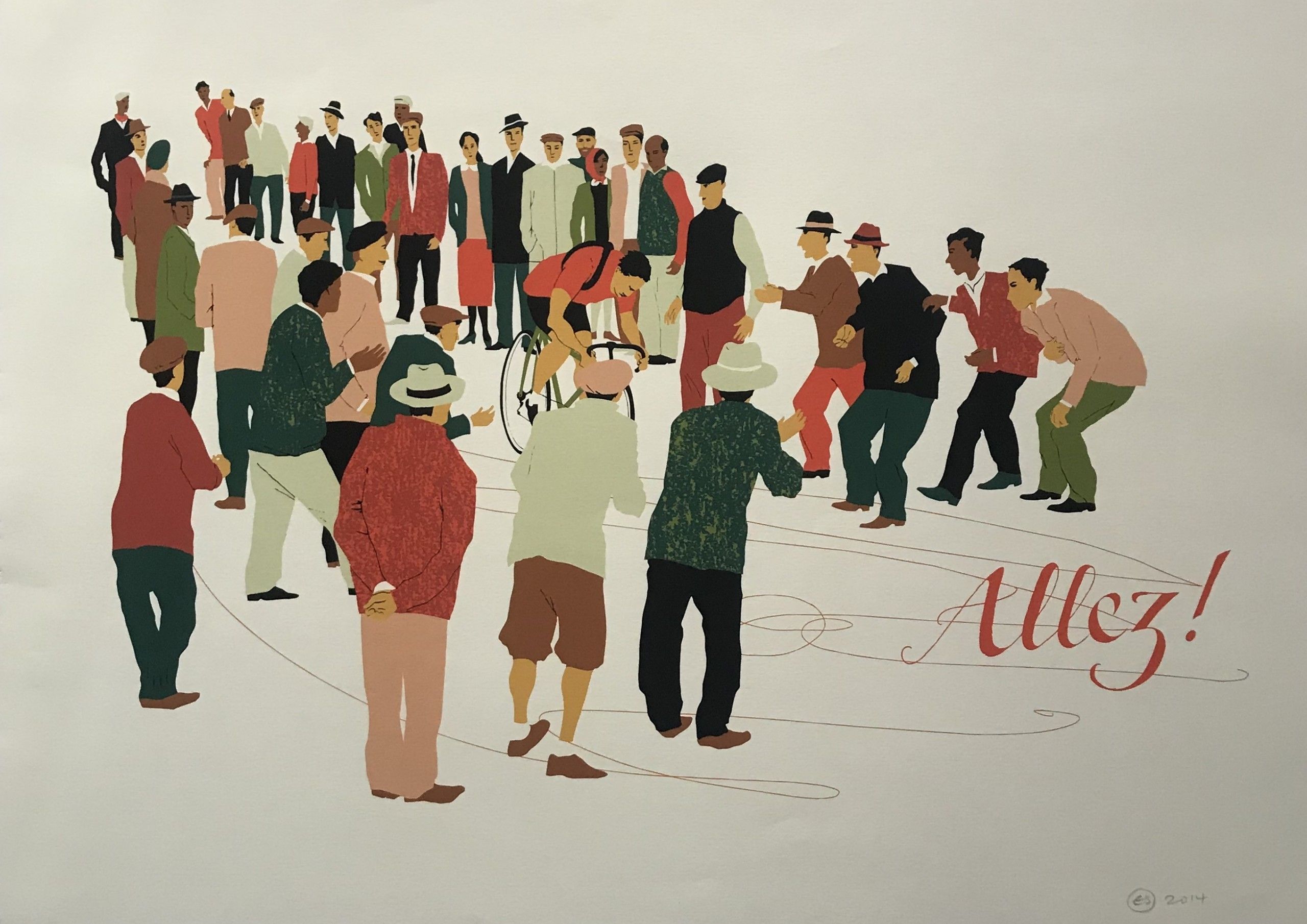 Eliza Southwood Allez Digital Print Sheet Size: H 50cm x W 70cm x D 0.5 Signed Sold Unframed Please note that any insitu images are purely an indication as to how a piece may look. Eliza Southwood cycling prints available for sale with Wychwood art online and in our Deddington art gallery. Eliza Southwood is a