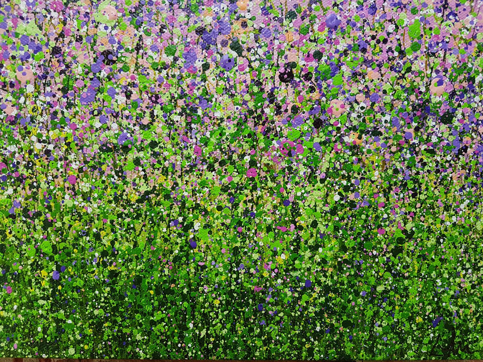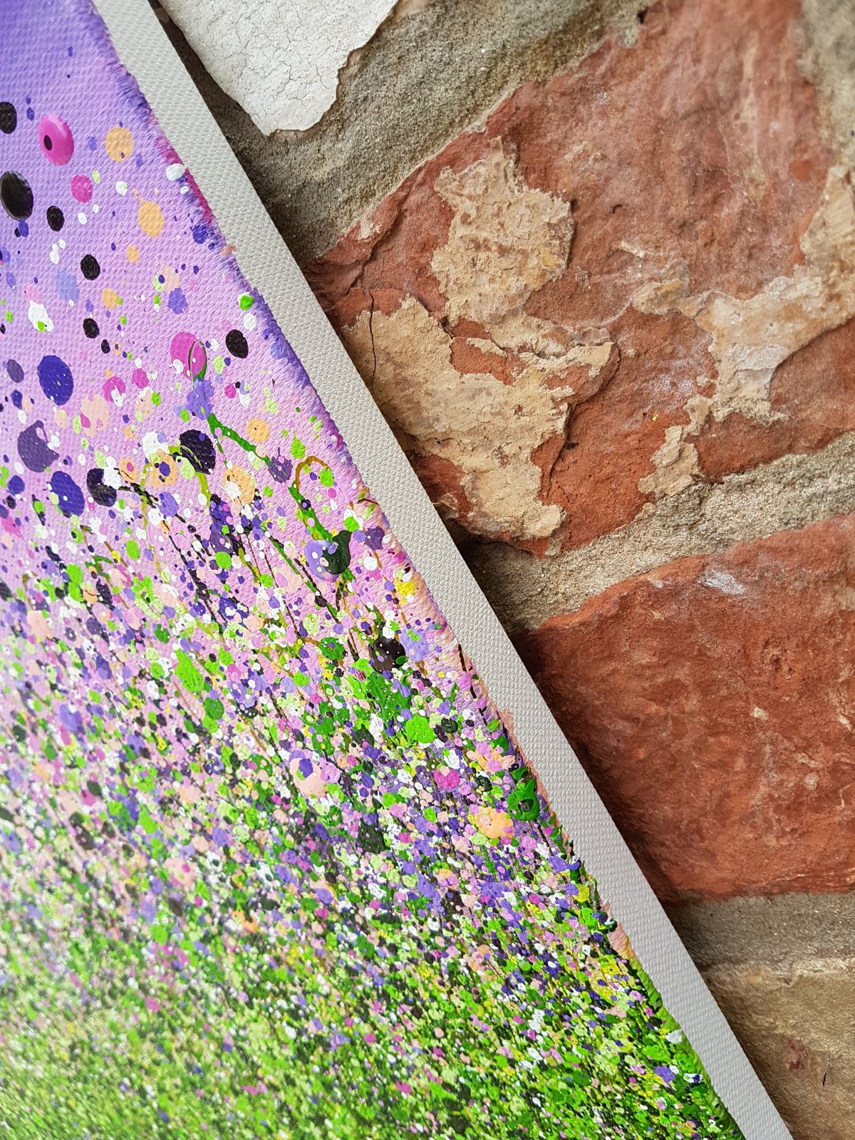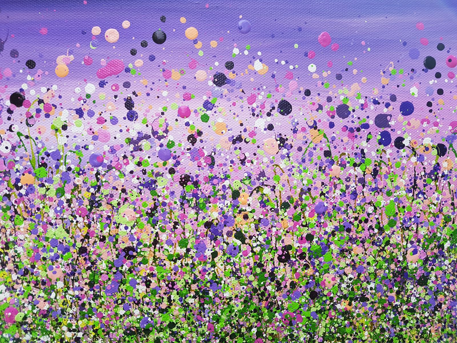 Amethyst Symphony - Exlusive to Wychwood Art. An Original semi-abstract painting by Lucy Moore. Using her signature string grass technique Lucy has created a semi-abstract twist to her classic meadow paintings. This piece would brighten any home or office, bring a little of the outside inside. Lucy Moore comments "I