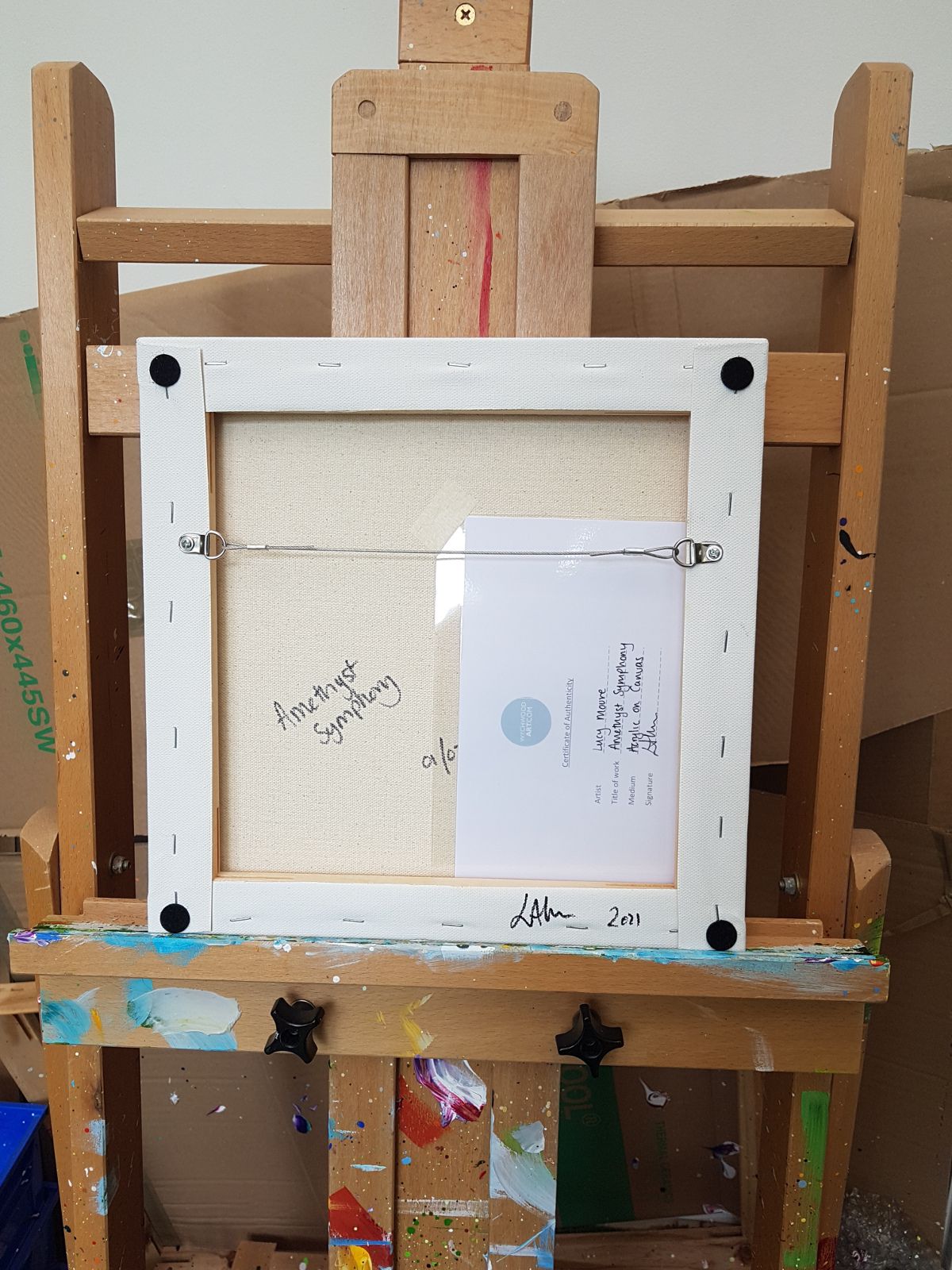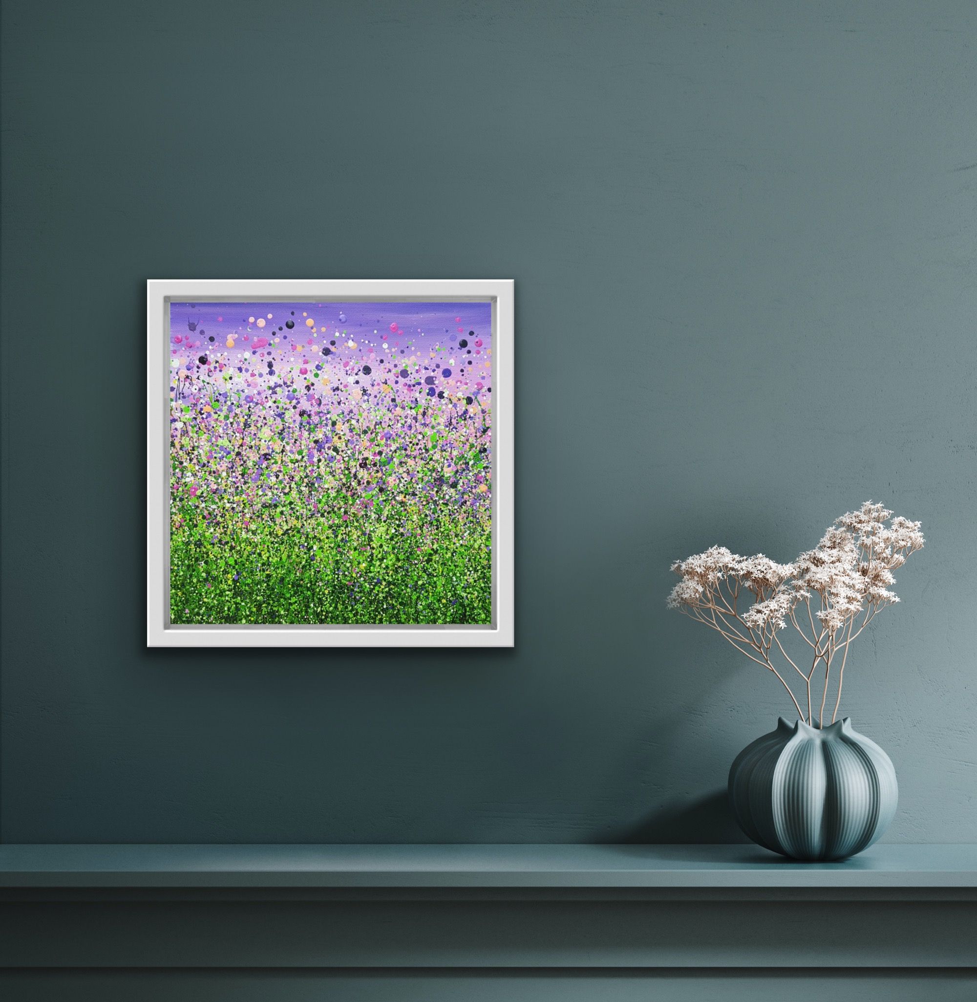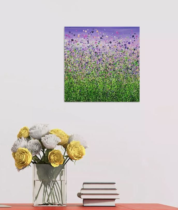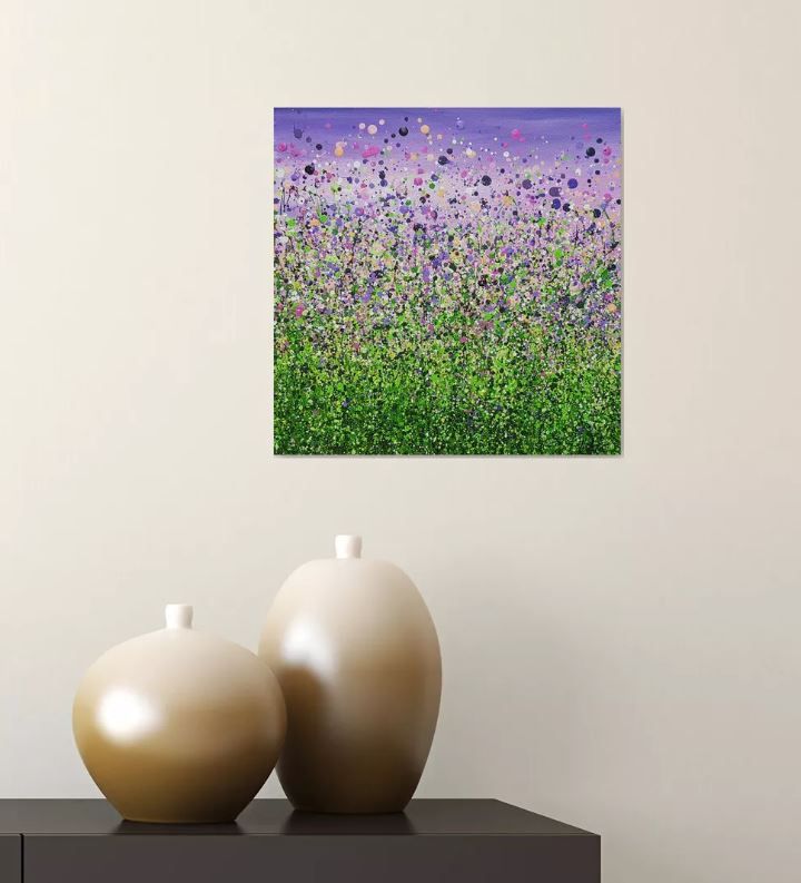 Amethyst Symphony - Exlusive to Wychwood Art. An Original semi-abstract painting by Lucy Moore. Using her signature string grass technique Lucy has created a semi-abstract twist to her classic meadow paintings. This piece would brighten any home or office, bring a little of the outside inside. Lucy Moore comments "I