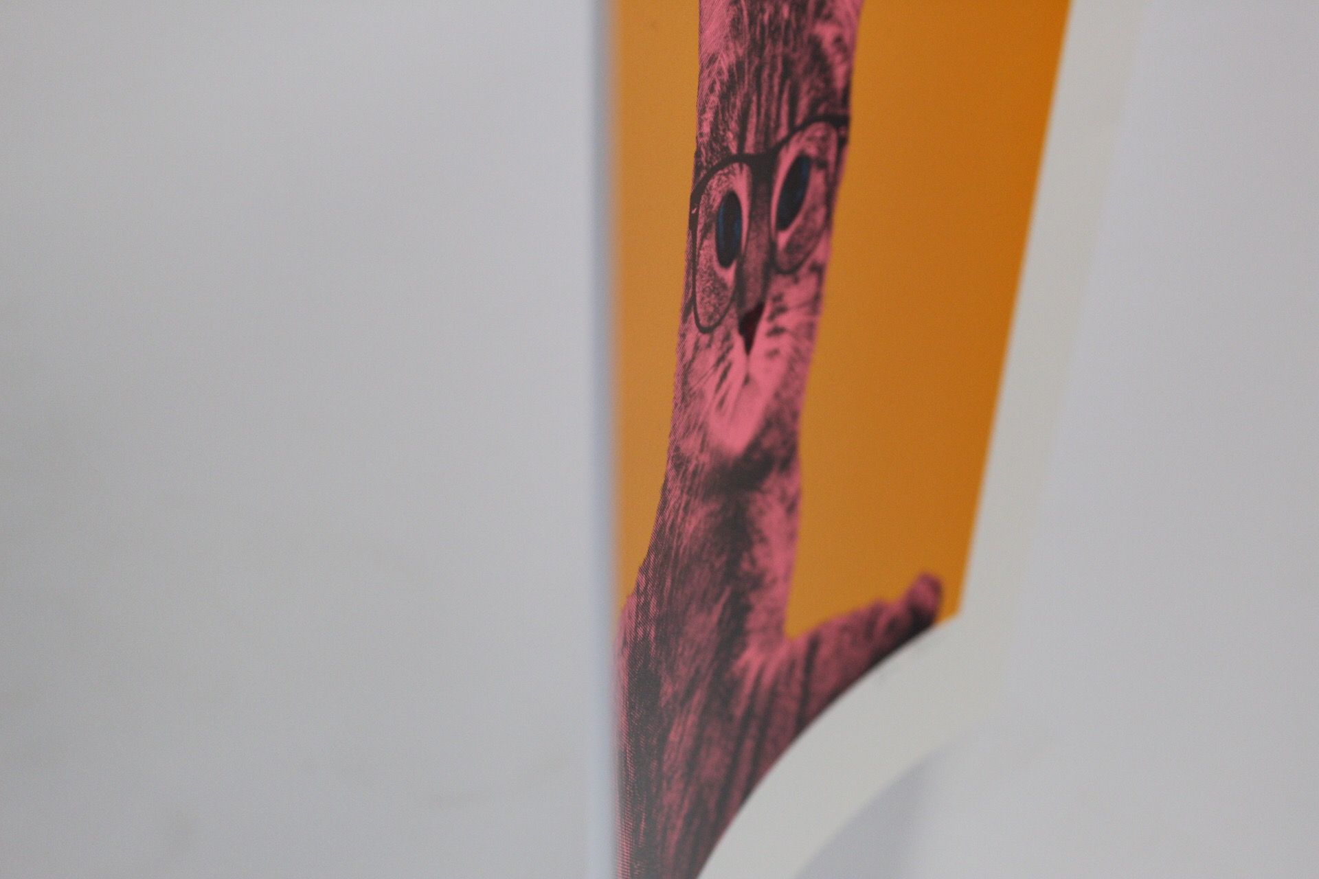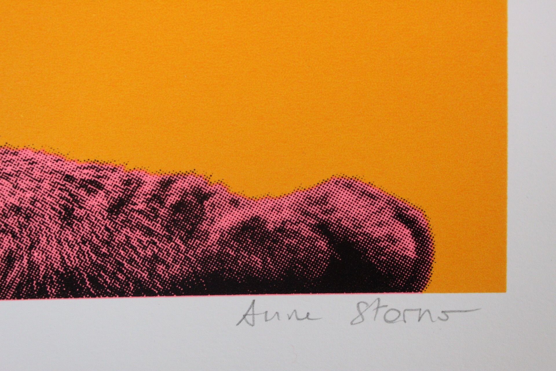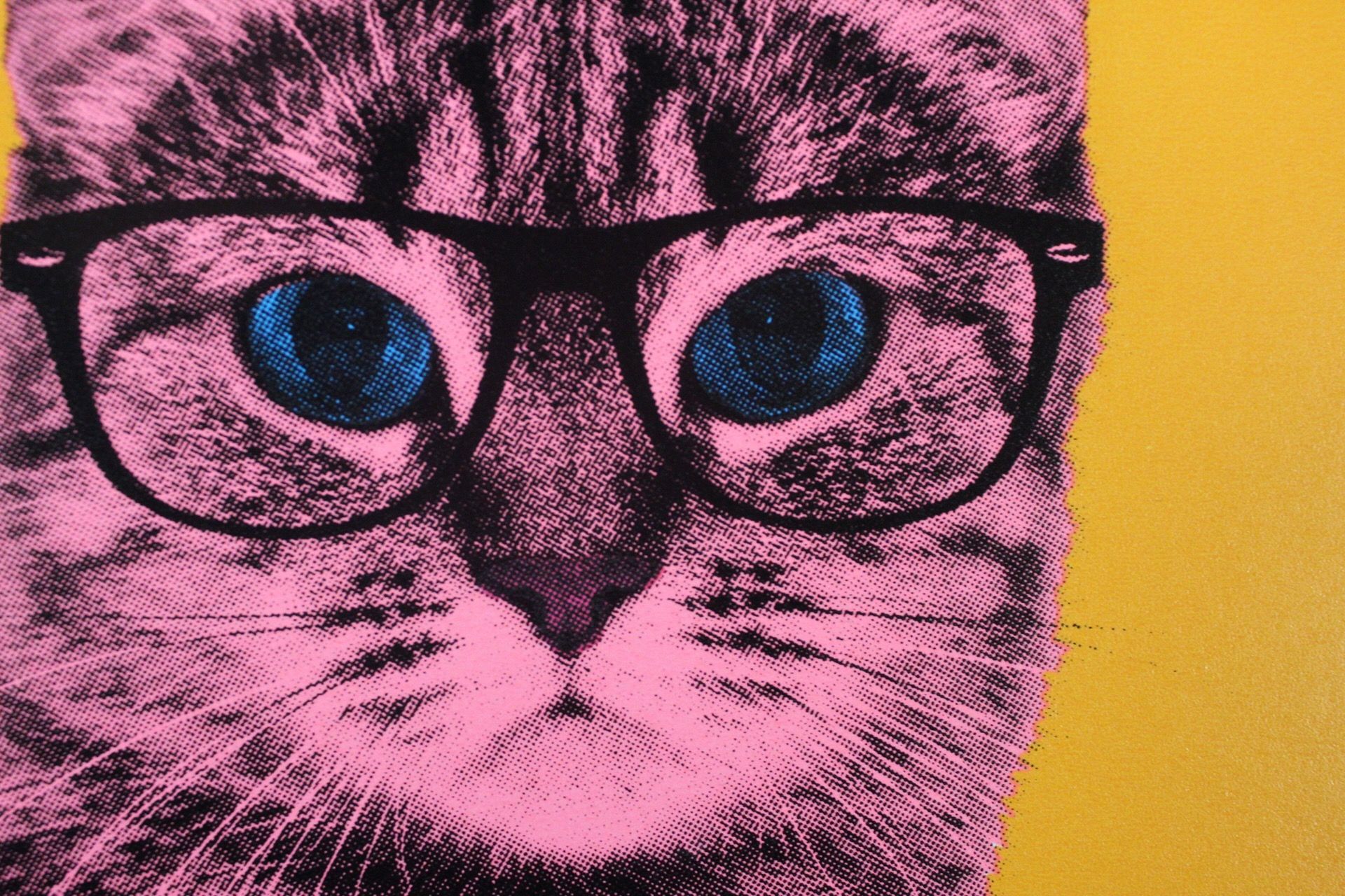 Anne Storno - Life in technicolor - Screenprinting - Limited edition of 12 A Bengale cat printed in fluorescent pink and blue on a bright orange background. This background provides a modern and pop touch. This a very colourful artwork with bright and shiny colours that gives energy, happiness and brings