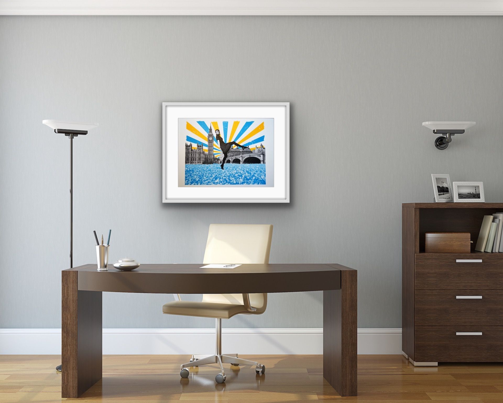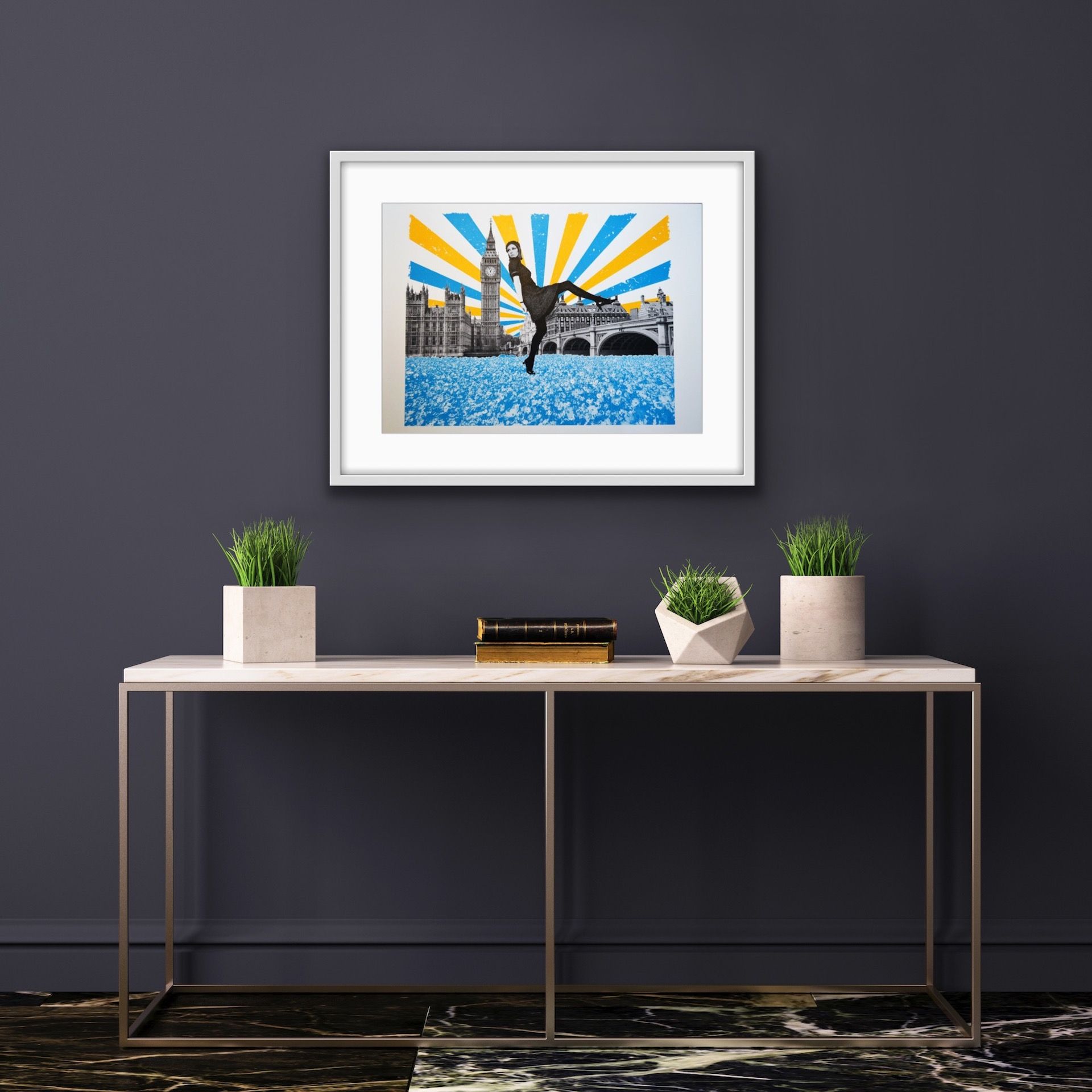 Anne Storno, London Stride Inspired by Pop art and Surrealist work. A colourful and vibrant London. Size of the image: 58x39cm Size of the paper: 70x50cm Handmade Screen Print