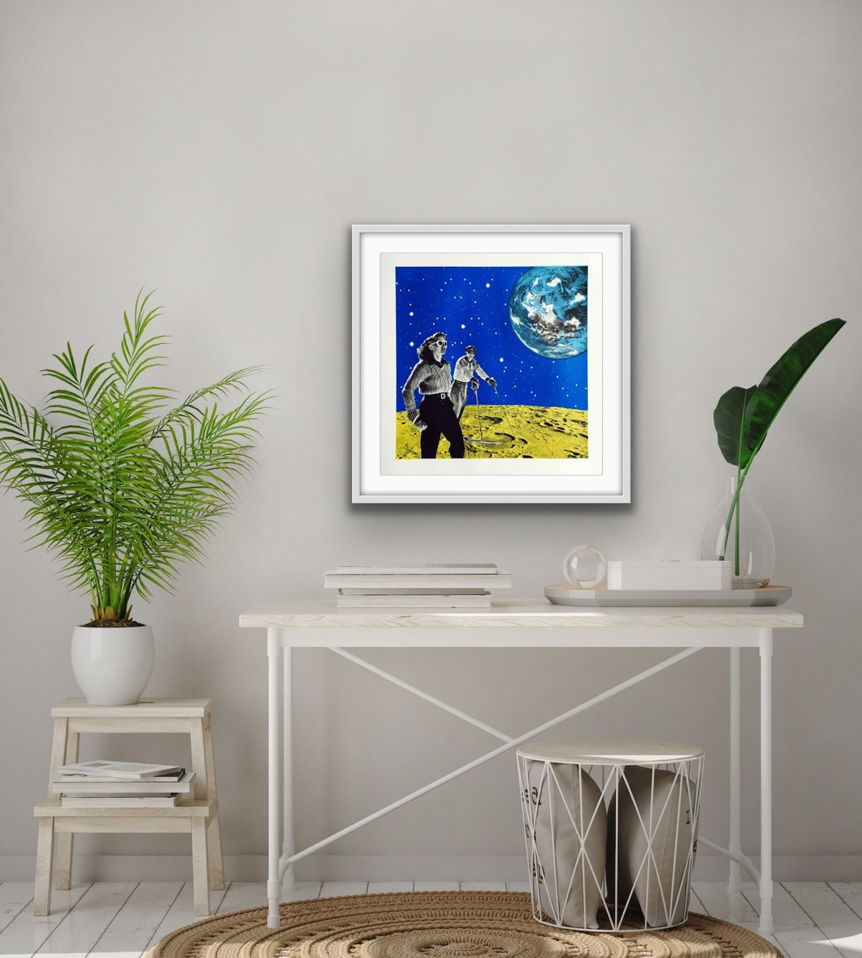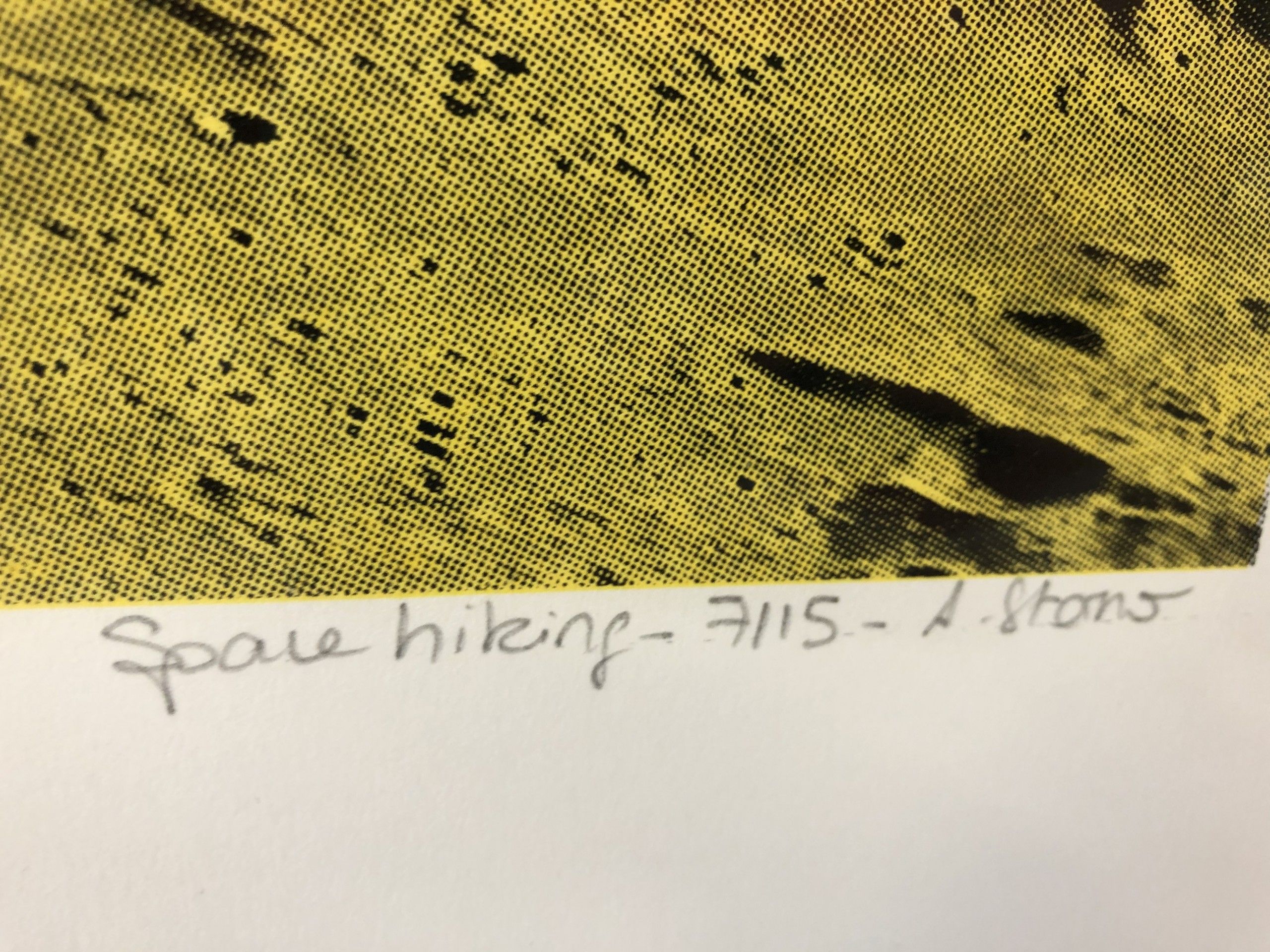 Anne Storno A limited edition, hand printed screen print, made in England. As we heard a lot in medias about Mars or trip that could be organised soon in space, I was thinking "what it would be to hike on a planet like Mars ?" This work is inspired by collage and surrealist