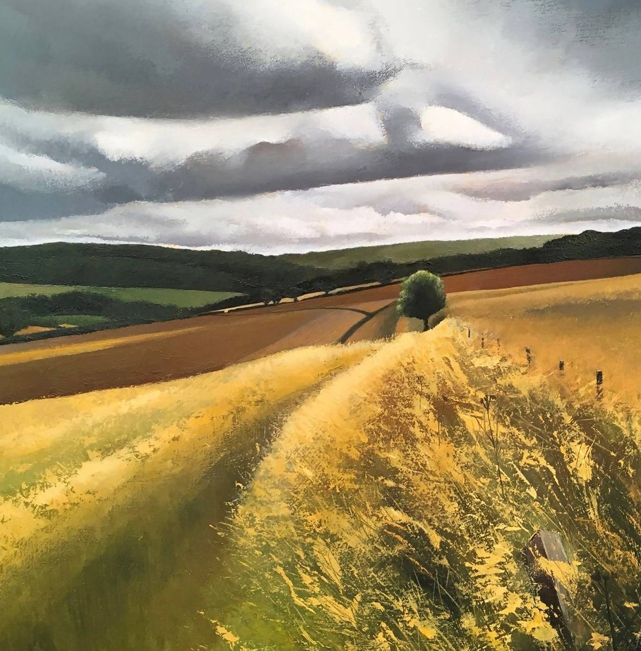 Tim Woodcock-Jones Ashbridge, A landscape painting in oil on wood panel 40cm x 30cm. Unframed. A view towards Ashridge from Pitstone Hill in the Chilterns.