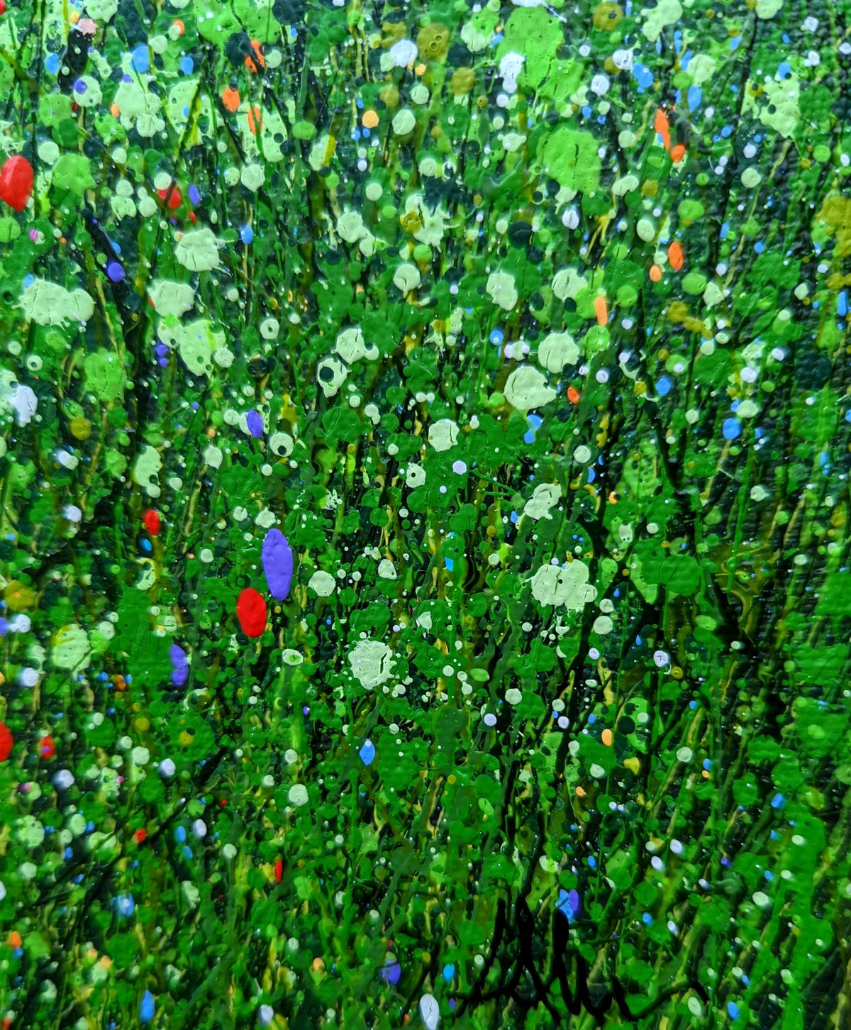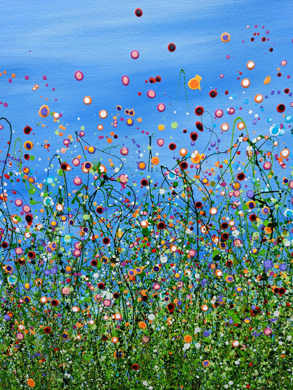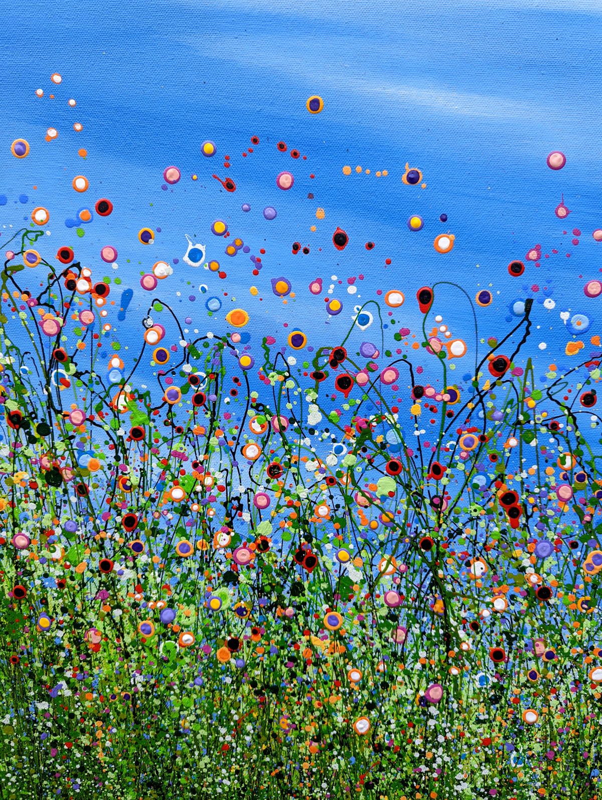 Beautiful Chaos #6 - An Original semi-abstract painting by Lucy Moore. Using her signature string grass technique Lucy has created a semi-abstract twist to her classic meadow paintings. Colourful pastels flowers beneath a sunlit skyline. This piece would brighten any home or office, bring a little of the outside inside.