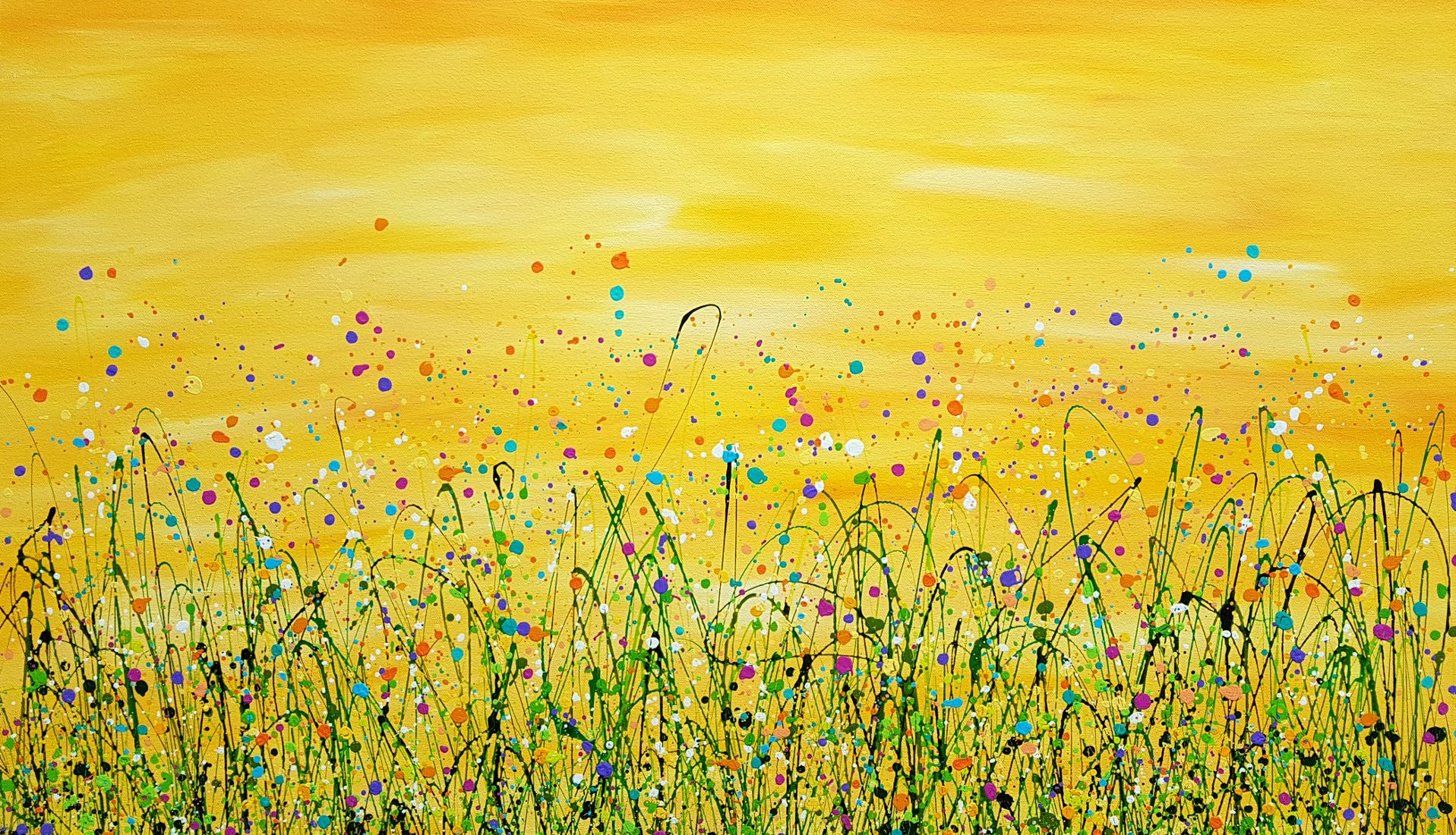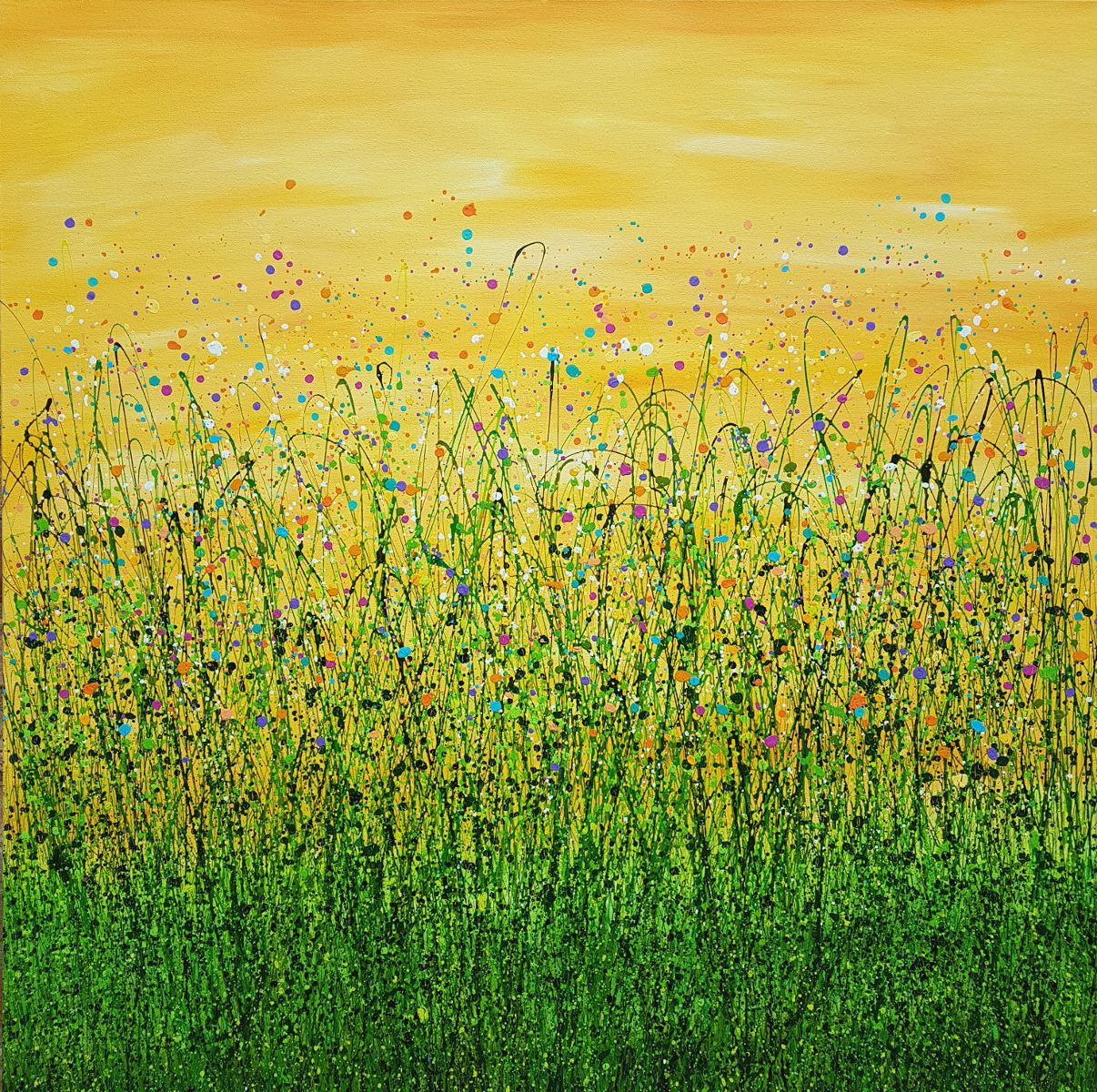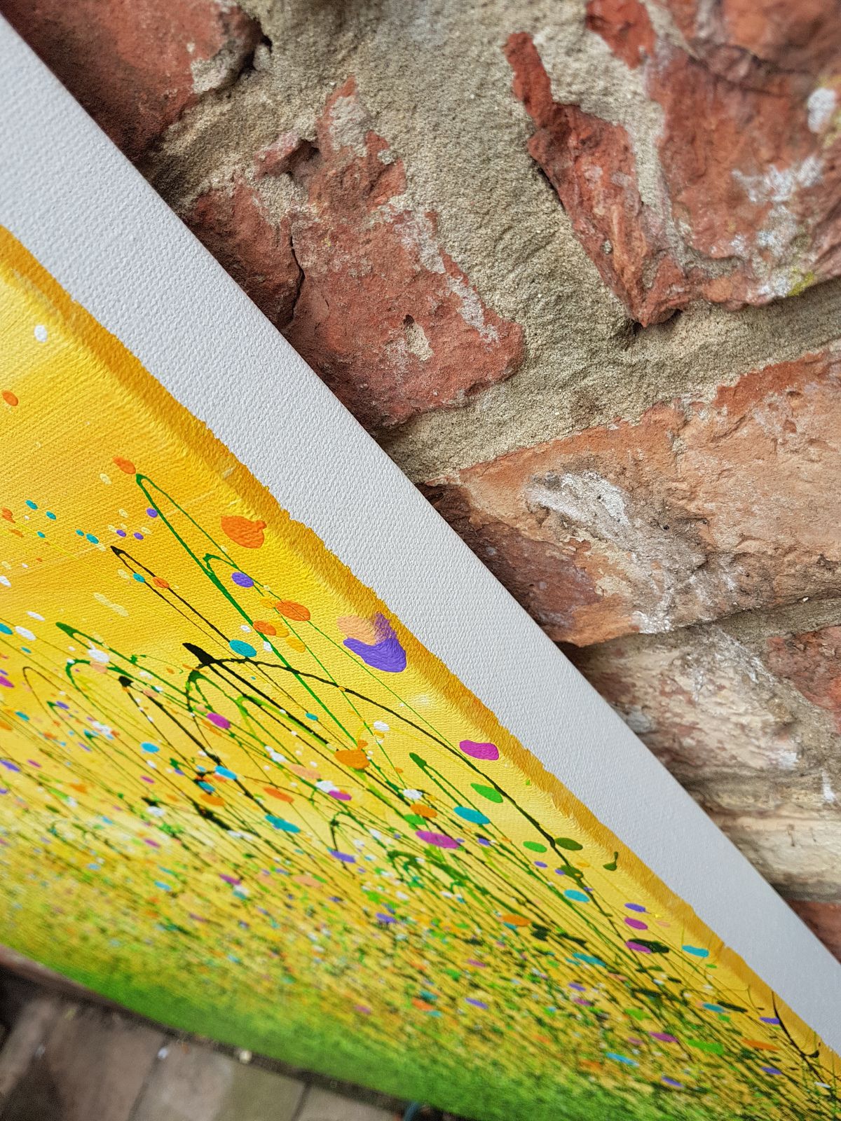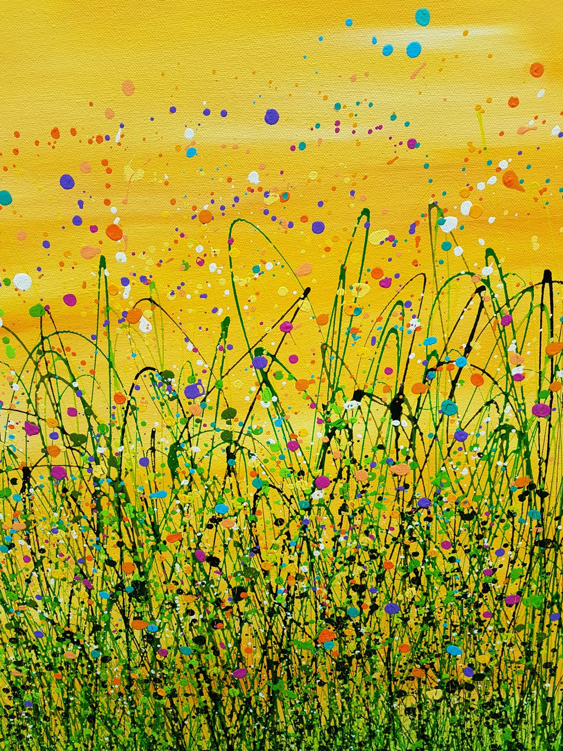 'Before I Wake' is an original semi-abstract painting by Lucy Moore. "Using my signature string grass technique With an abstract twist I’ve created a vibrant statement meadow. This piece would brighten any home or office, bring a little of the outside inside." If you would like to commission your own statement meadow