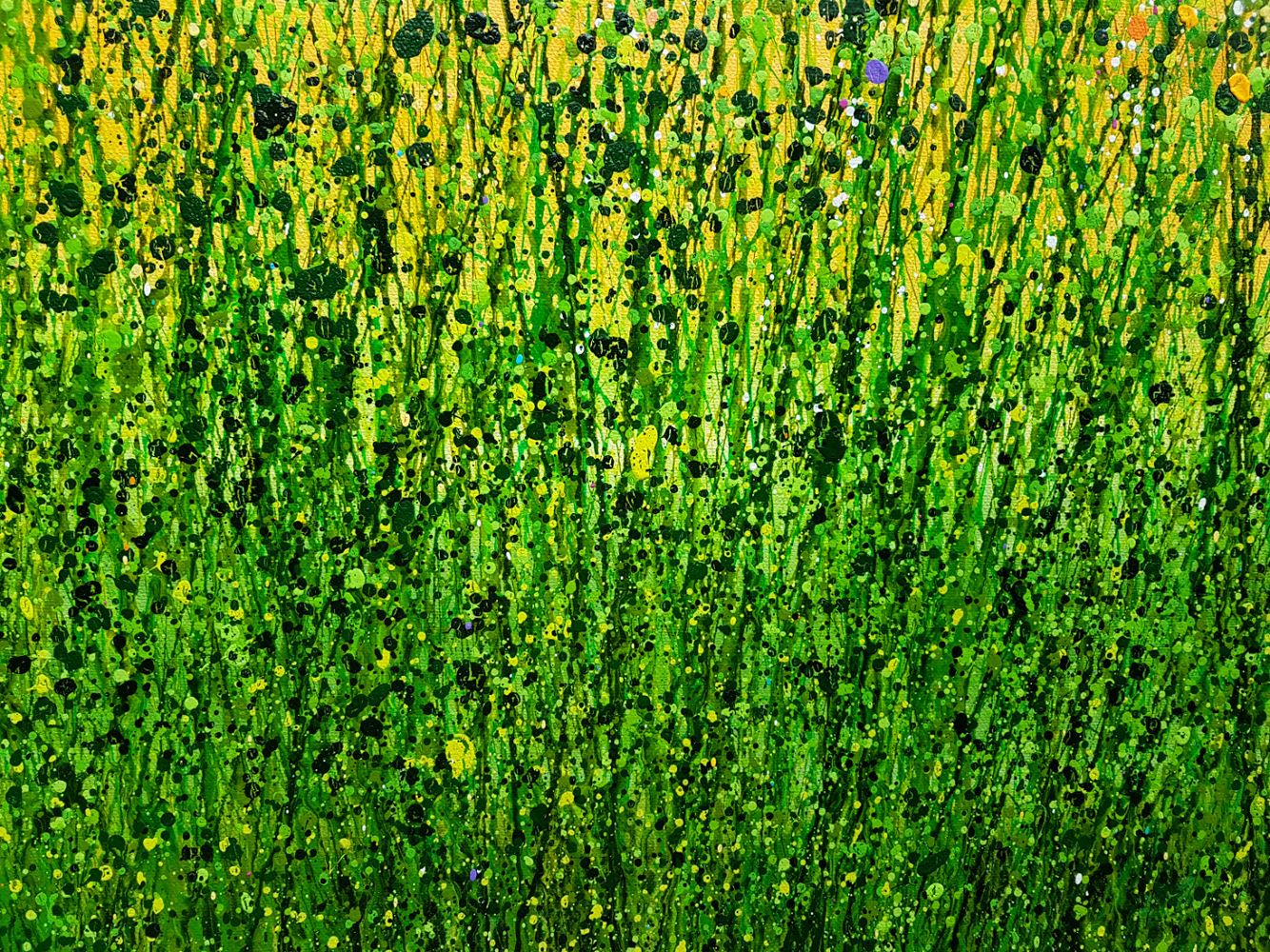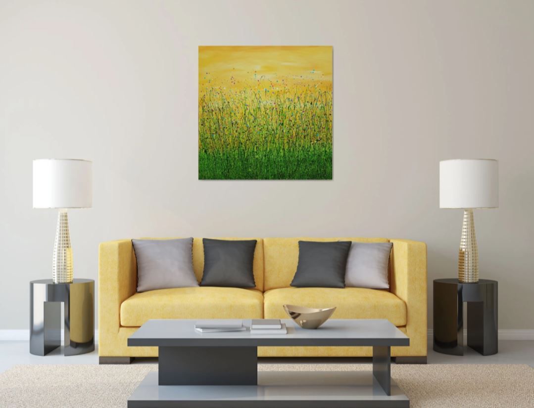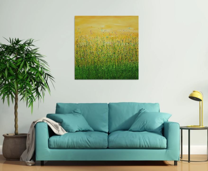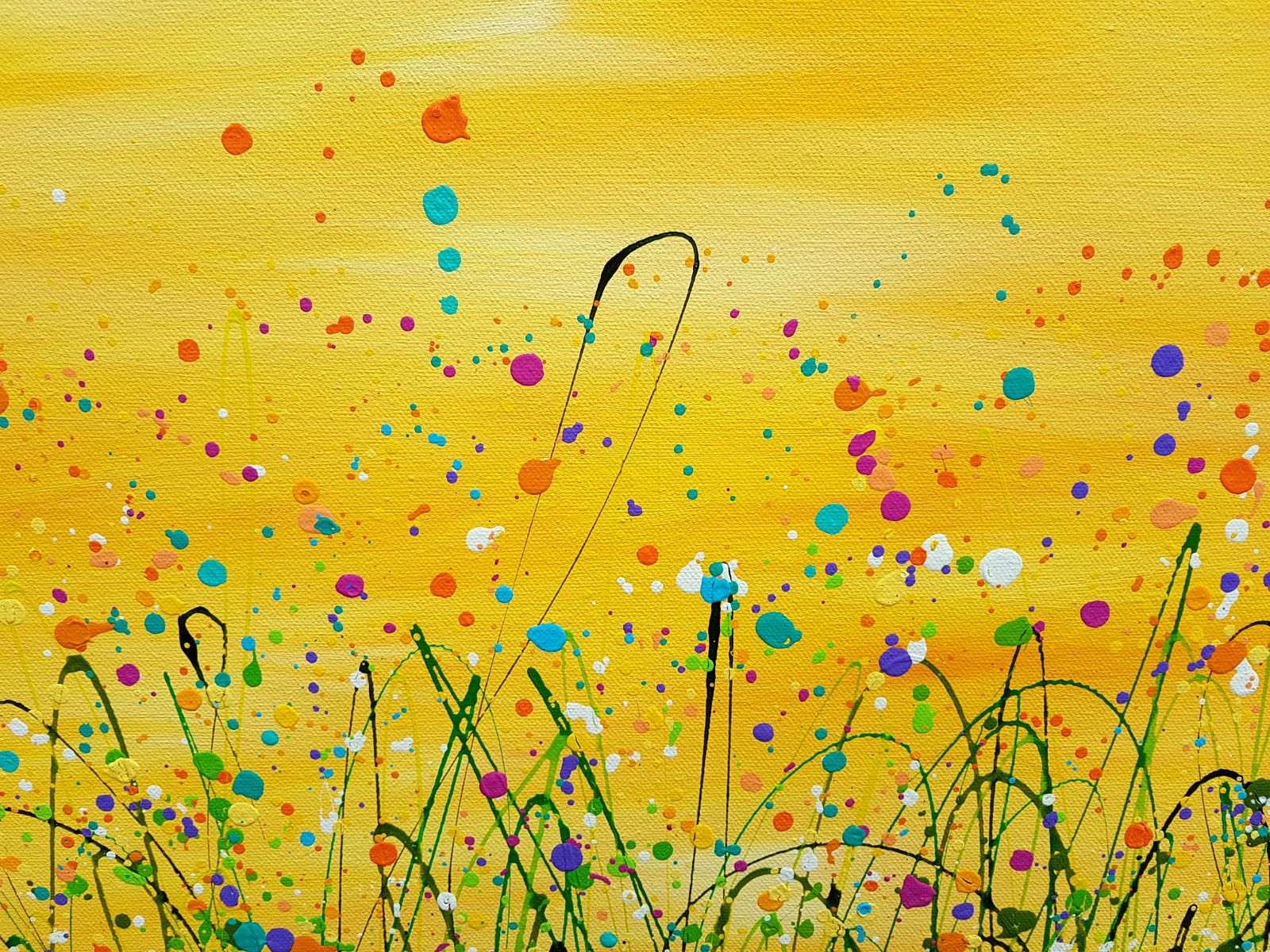 'Before I Wake' is an original semi-abstract painting by Lucy Moore. "Using my signature string grass technique With an abstract twist I’ve created a vibrant statement meadow. This piece would brighten any home or office, bring a little of the outside inside." If you would like to commission your own statement meadow