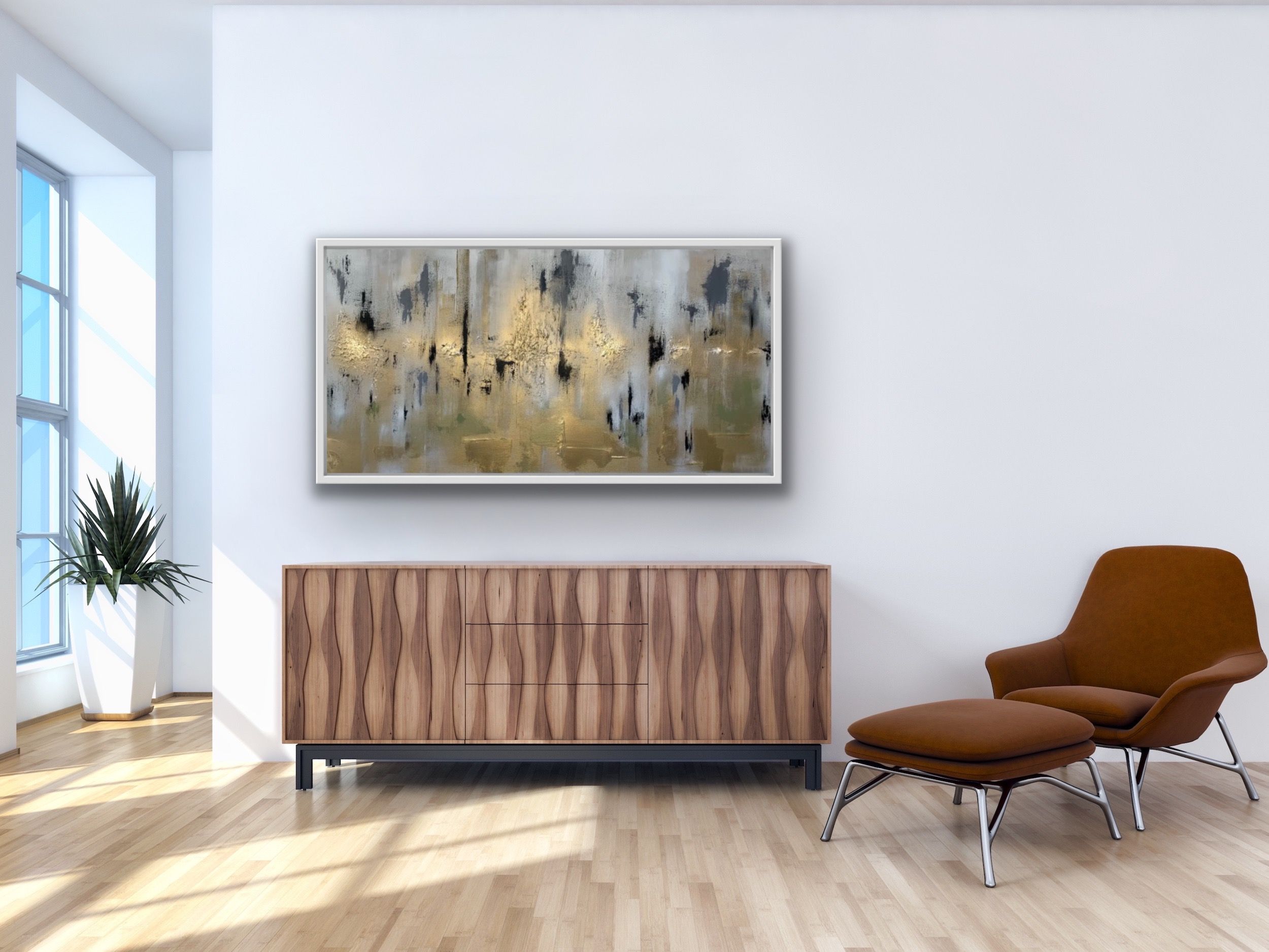 "Black & Gold" is the first in the new Abstract Metallics Collection. This original abstract painting with a metallic twist is by artist Sarah Berger. Her paintings are derived from her love of nature, combined with her absolute passion for metallics and heavily textured artwork. Original canvas painted in mixed