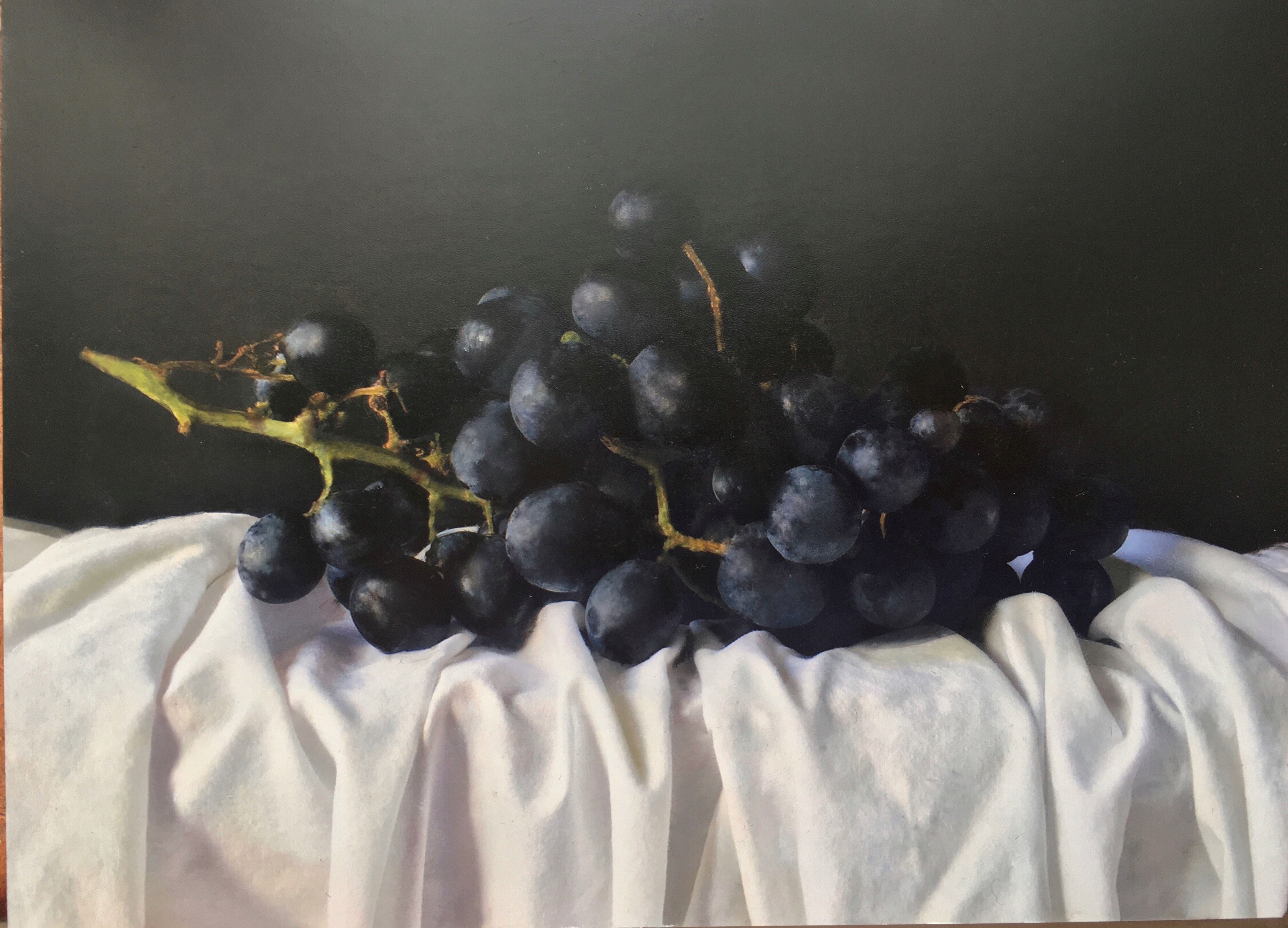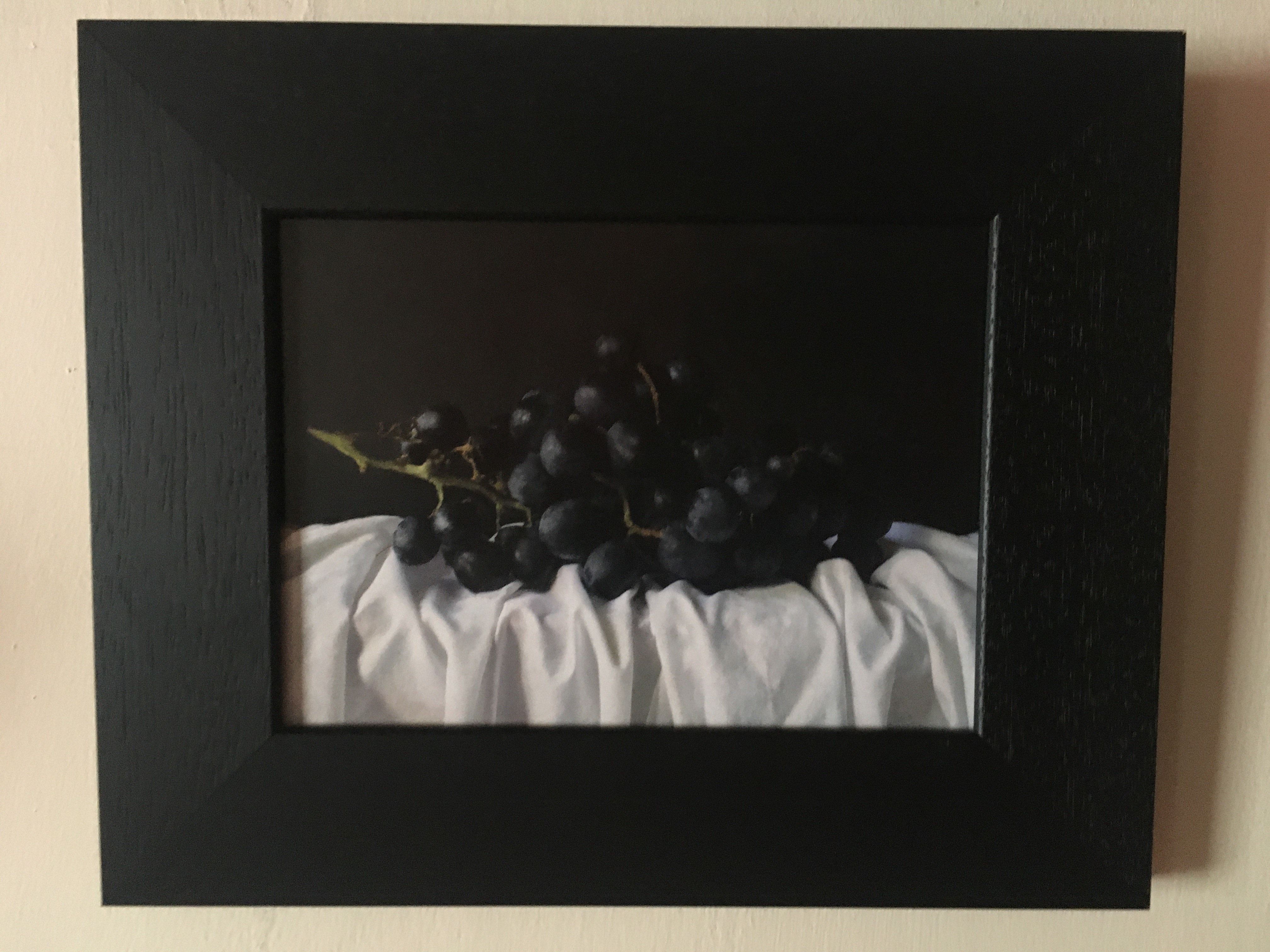 Black Grapes, oil on paper on board ADDITIONAL INFORMATION:Kate Verrion [2024]Original paintingOil Paint on paper on boardComplete size of framed work: 23.5 H x 28.5 W x 2 D cm (9.25 x 11.22 x 0.79 in)Sold Framed Please note that insitu images are purely an indication of how a piece may look SIZE:Image