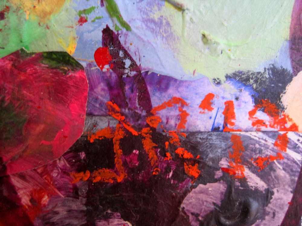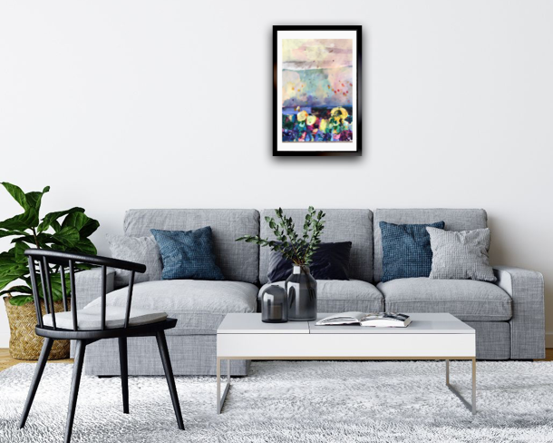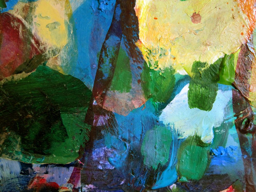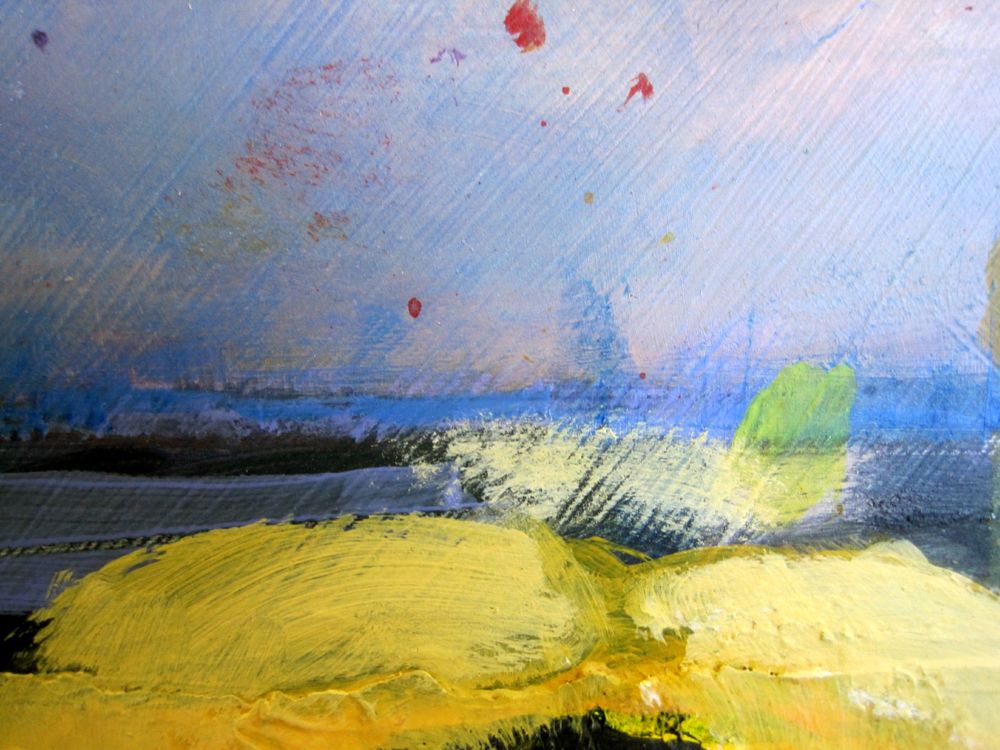 Jon Rowland - Contemporary abstract expressionism. This painting is a serenade to the sea and the land. The title echoes an old poem that sprang to mind:- "And in green underwood and cover, Blossom by blossom the spring begins." Such hope! Joyous abundance of colour against a varied background of differing horizons, have