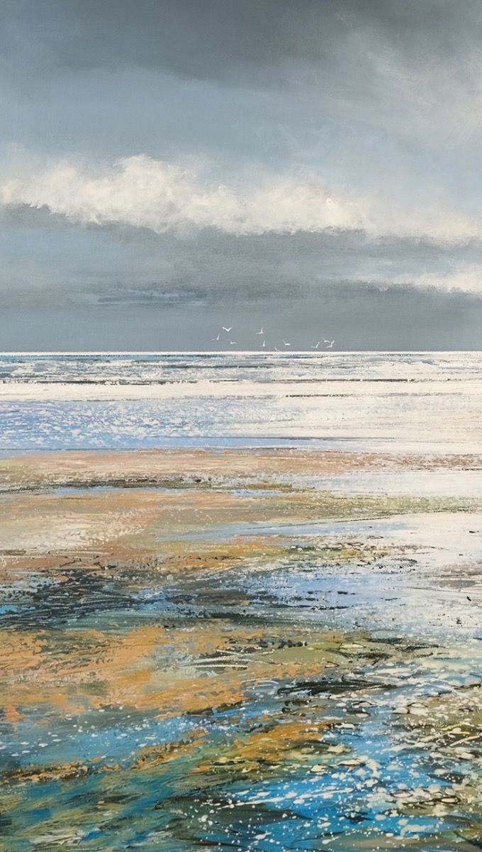 An original mixed-media painting by Michael Sanders. 90 x 90 cm deep edge canvas painted around the edges and ready to hang.