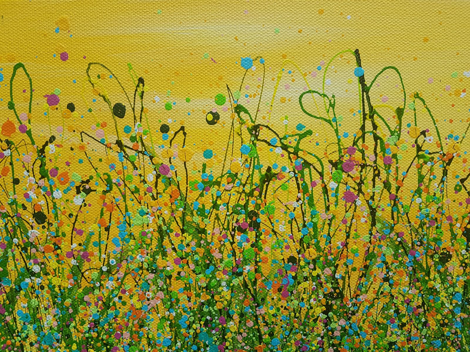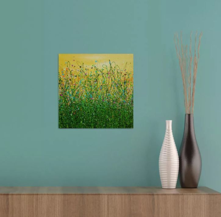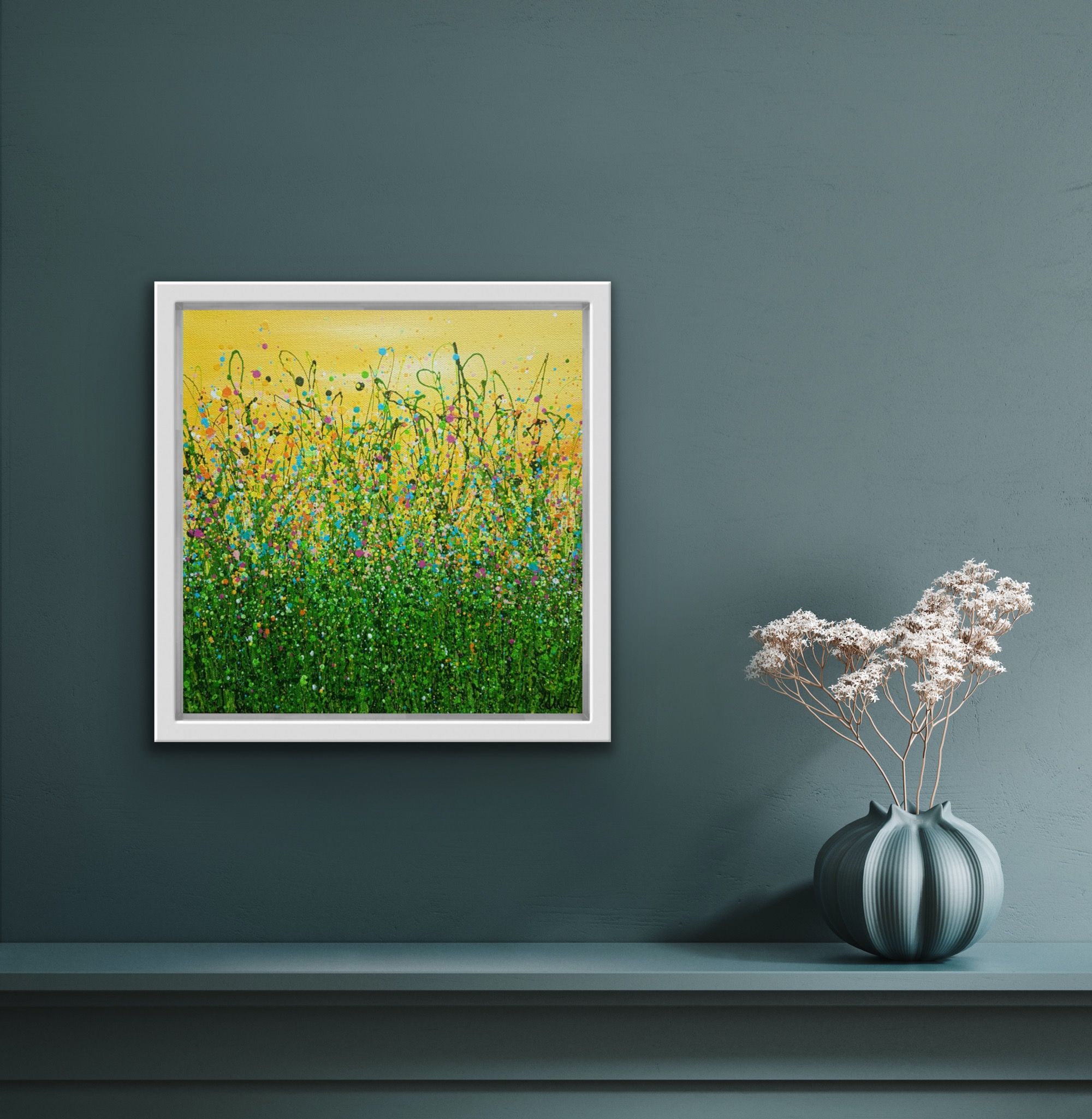 Breaking Dawn Meadows #2 - Exclusive to Wychwood Art. An Original semi-abstract painting by Lucy Moore. Using her signature string grass technique Lucy has created a semi-abstract twist to her classic meadow paintings. This piece would brighten any home or office, bring a little of the outside inside. Lucy Moore