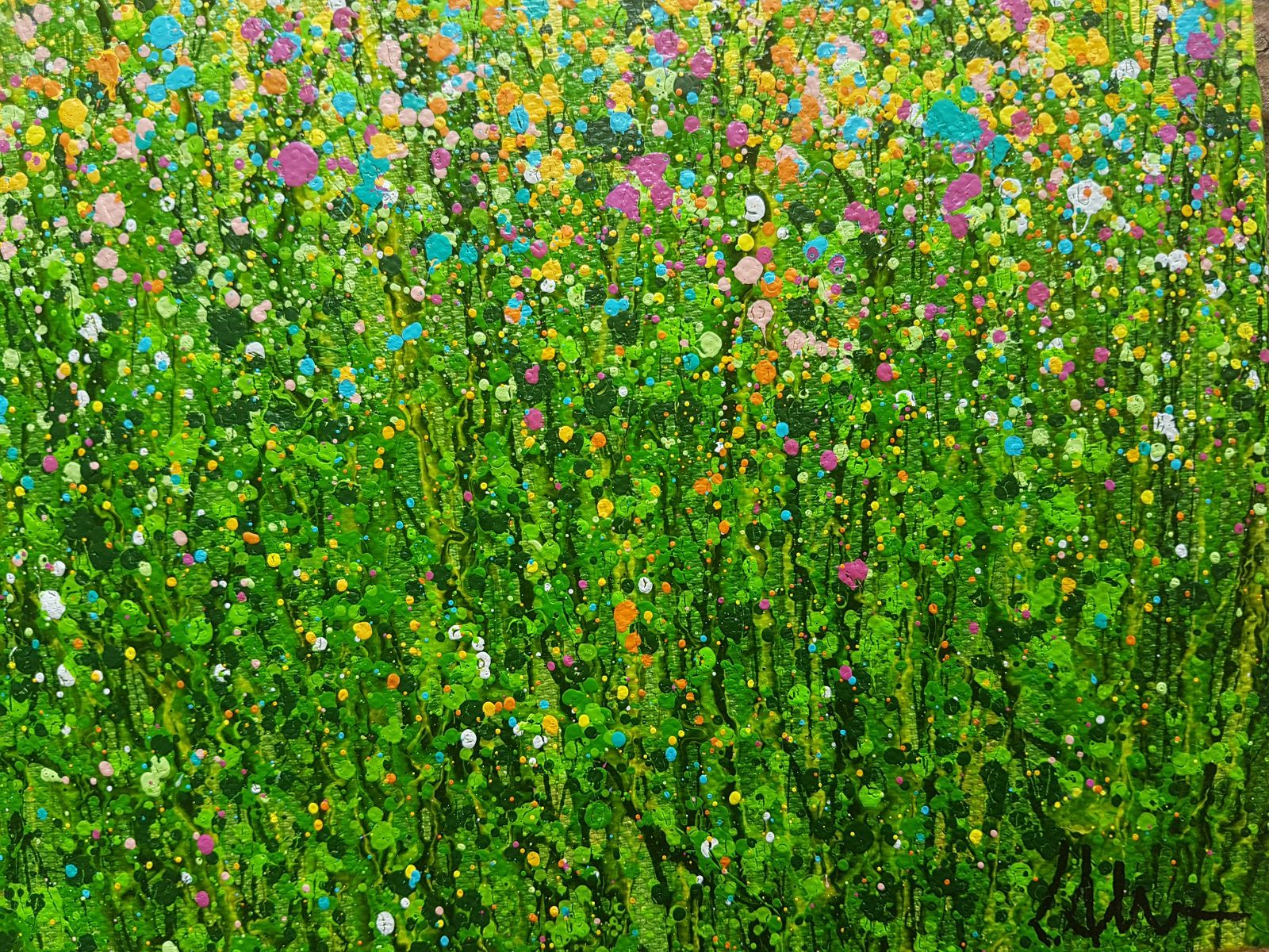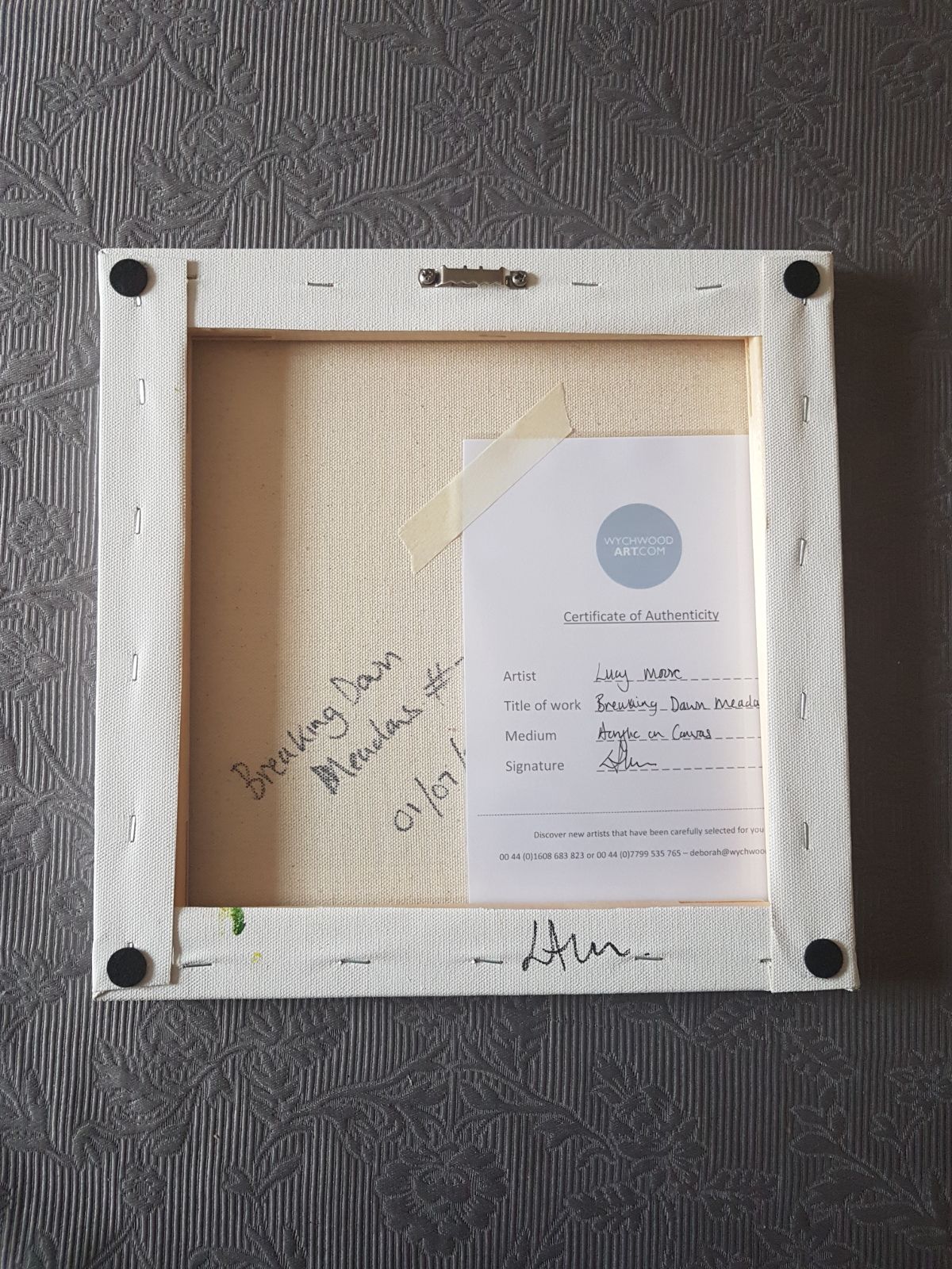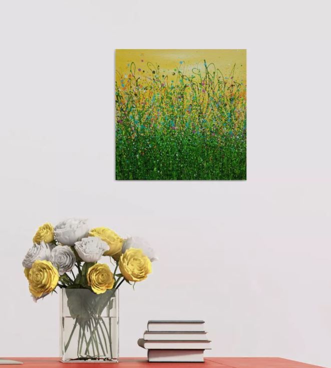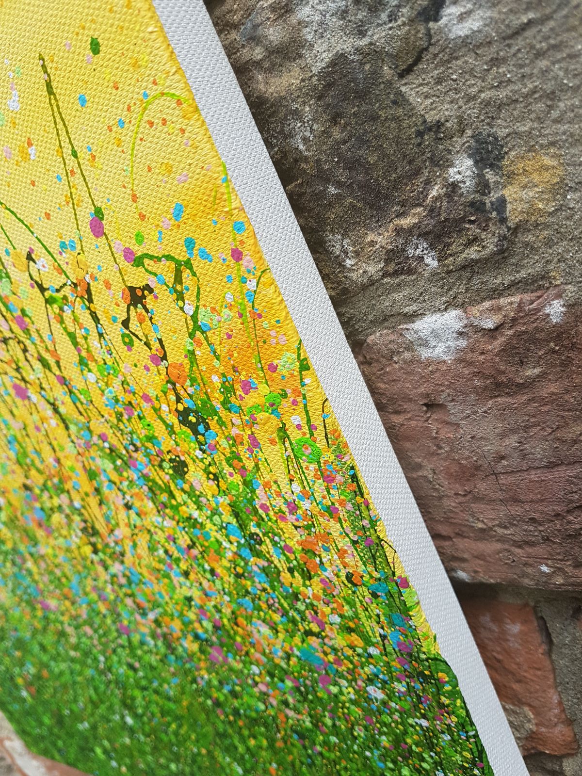 Breaking Dawn Meadows #2 - Exclusive to Wychwood Art. An Original semi-abstract painting by Lucy Moore. Using her signature string grass technique Lucy has created a semi-abstract twist to her classic meadow paintings. This piece would brighten any home or office, bring a little of the outside inside. Lucy Moore