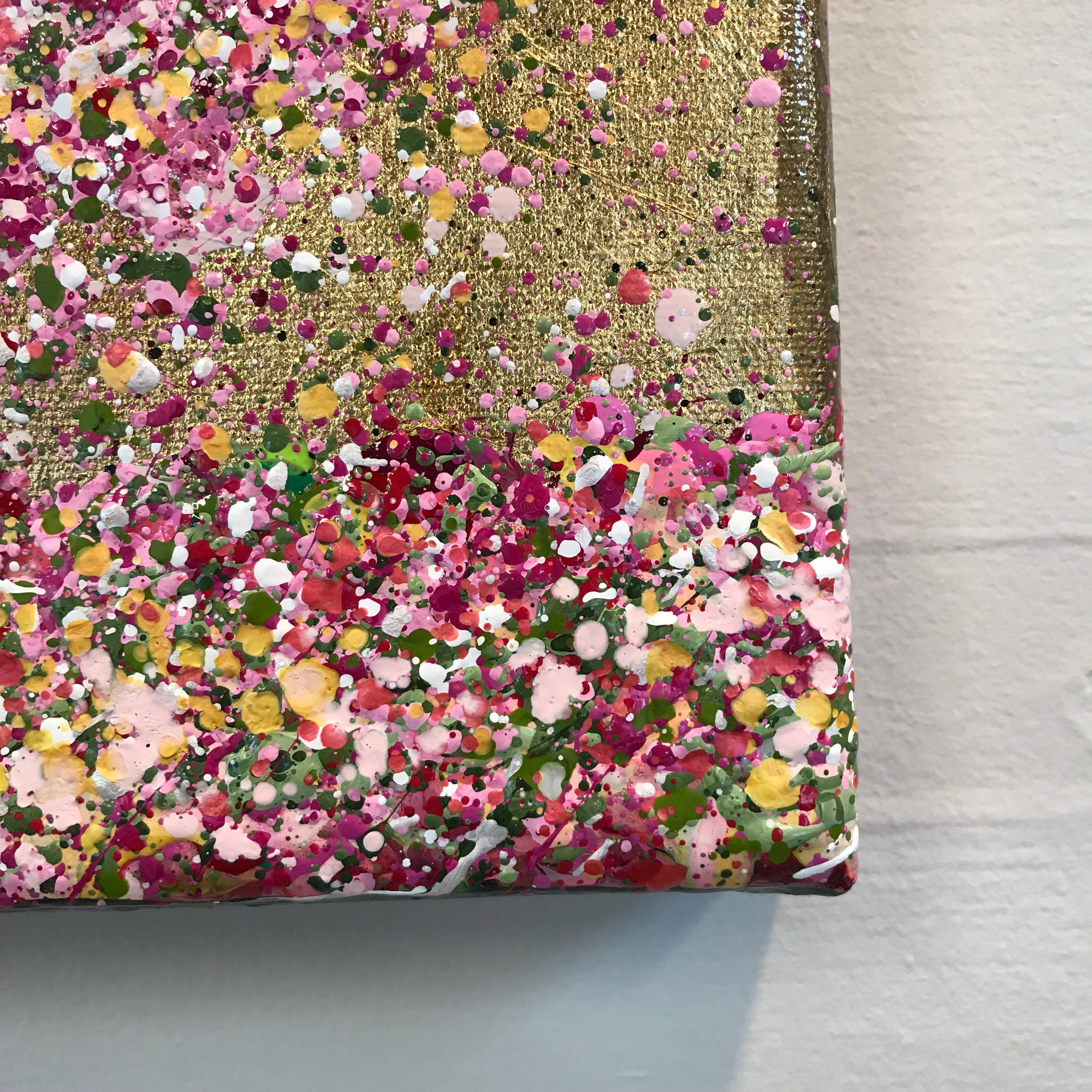 Nicky Chubb, Bright Pink Treasure 30x30x4 cm Original painting Acrylic and mixed media including gold leaf on canvas Nicky was born in Durham in 1969 and grew up in Manchester, moving to Surrey in 1986. She originally trained as a designer, first studying for a foundation course in Art & Design at Epsom School of Art