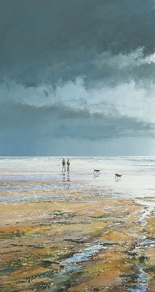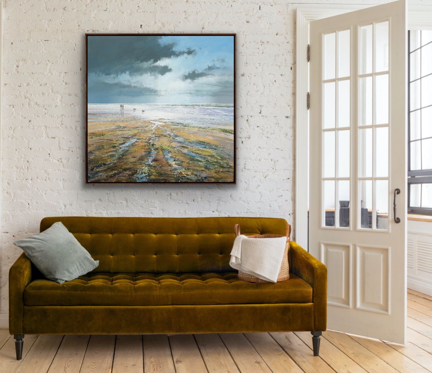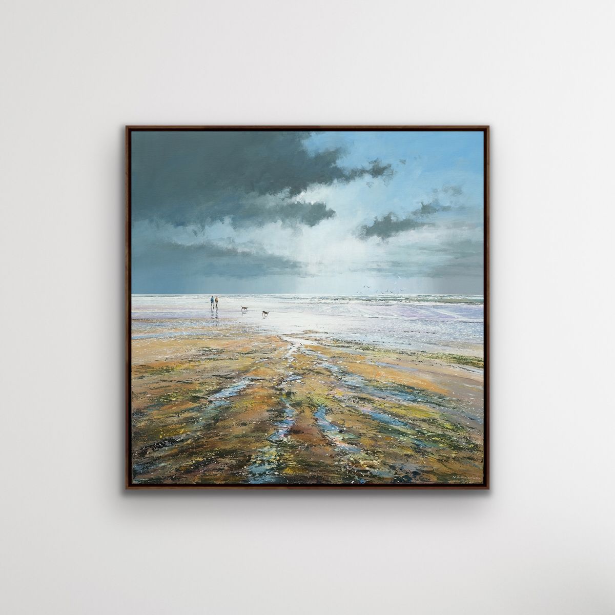 An original mixed-media painting by Michael Sanders. 90 x 90 cm deep edge canvas painted around the edges and ready to hang. "This painting shows the promise of bright blue sky as the heavy clouds part after a storm. I aimed to capture the light and freshness in the air coupled with