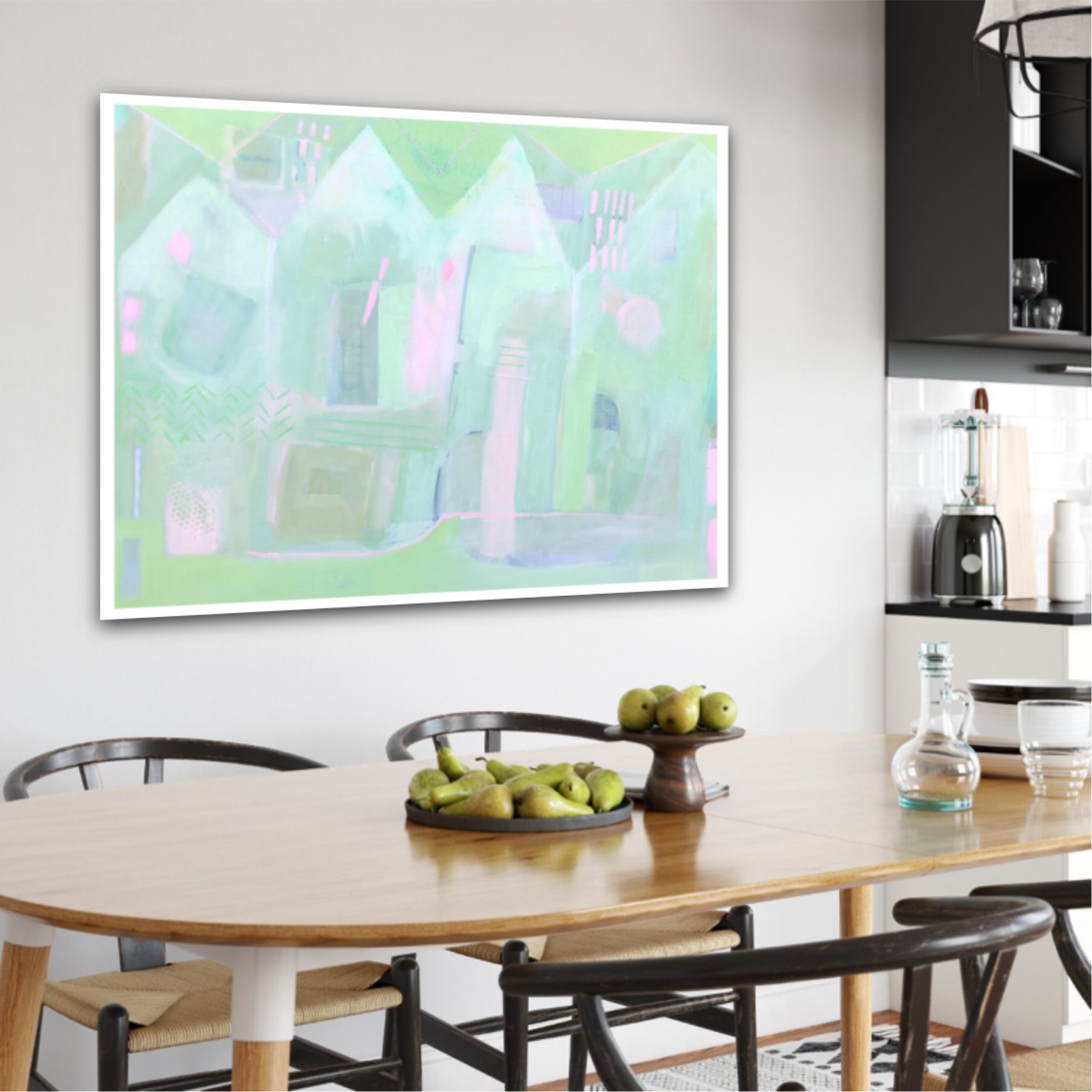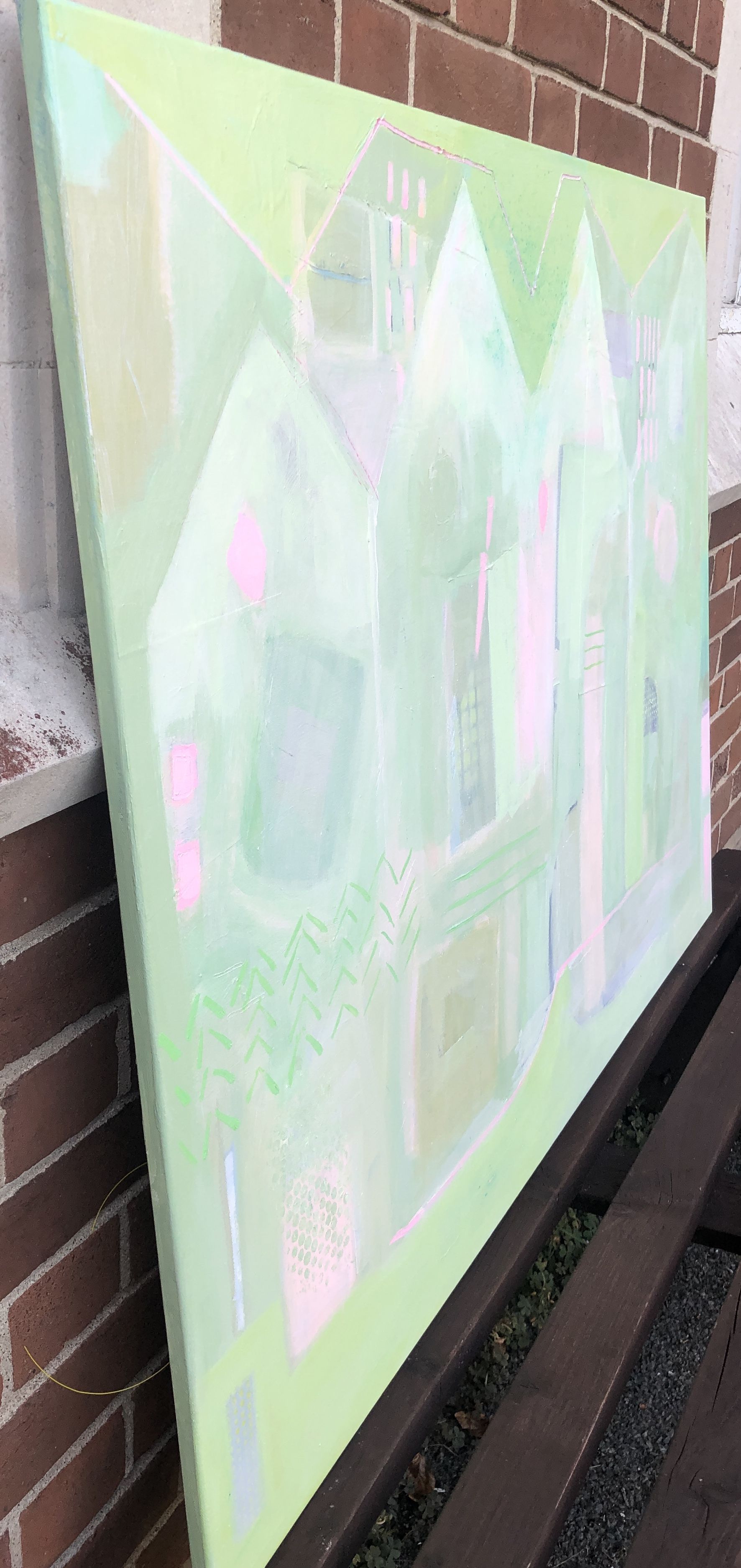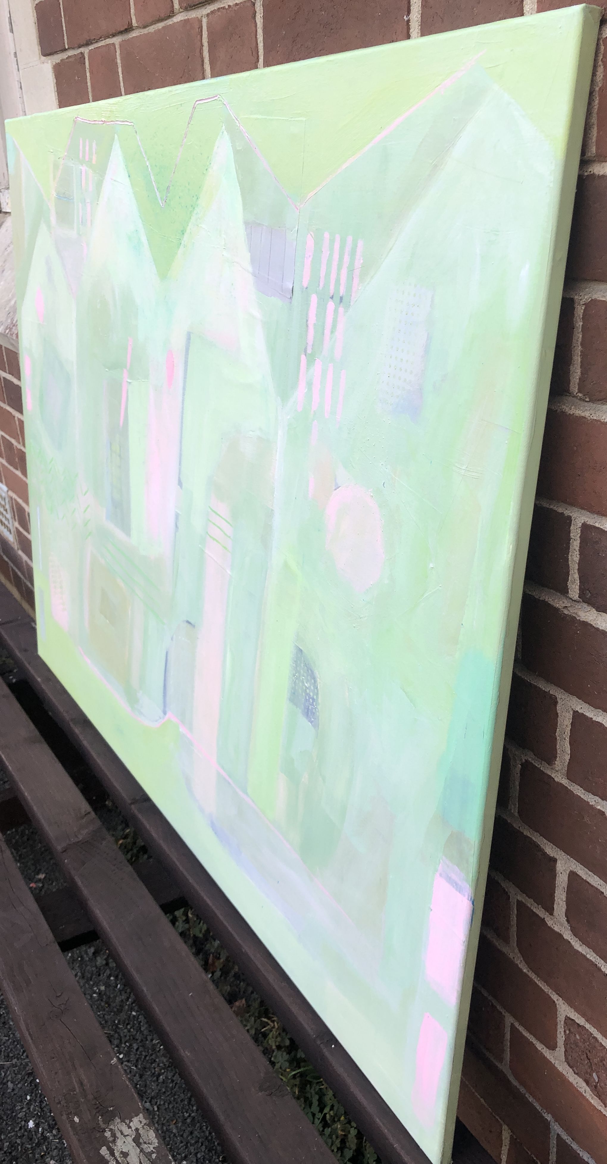 Bryggen facades 3 was made after a trip to Norway . Bryggen is the historic harbour town of Bergen in south west Norway , beautiful wooden houses line the harbour rebuilt following the fire in 1702 . The early morning mist wraps itself around the fiords giving a look