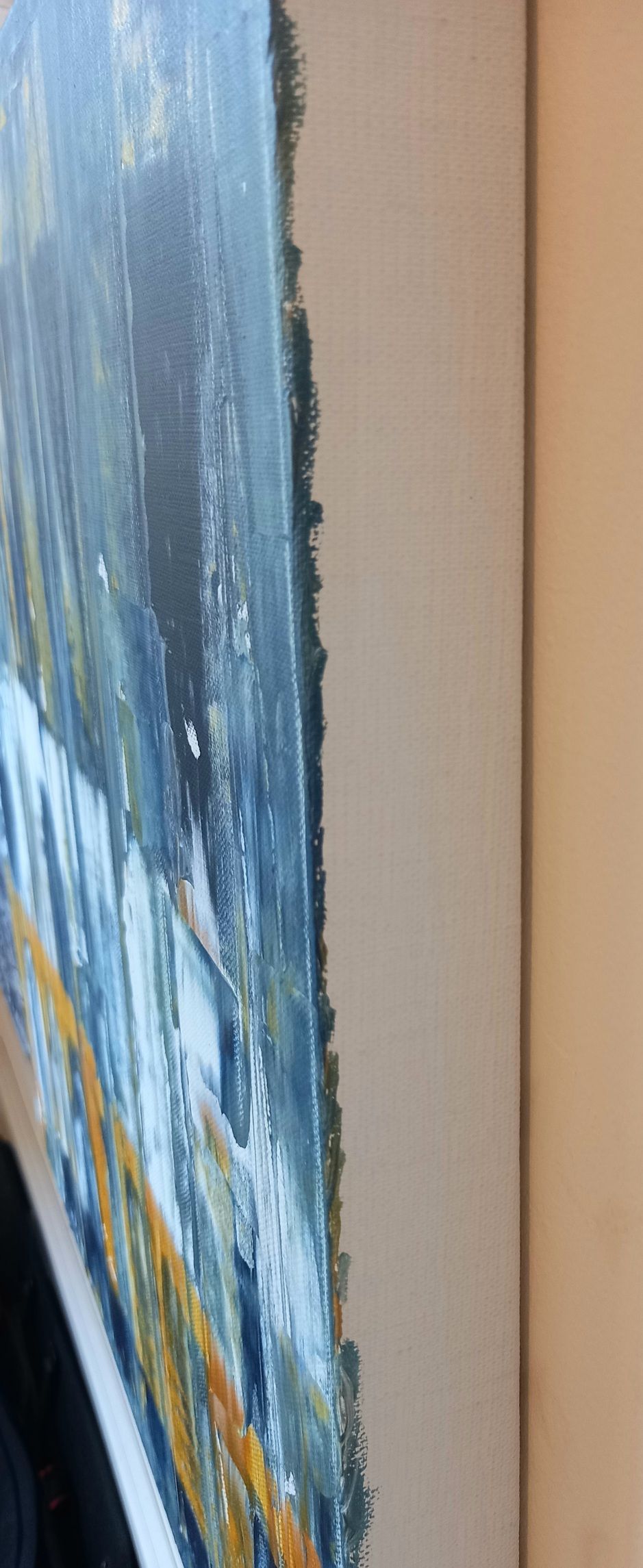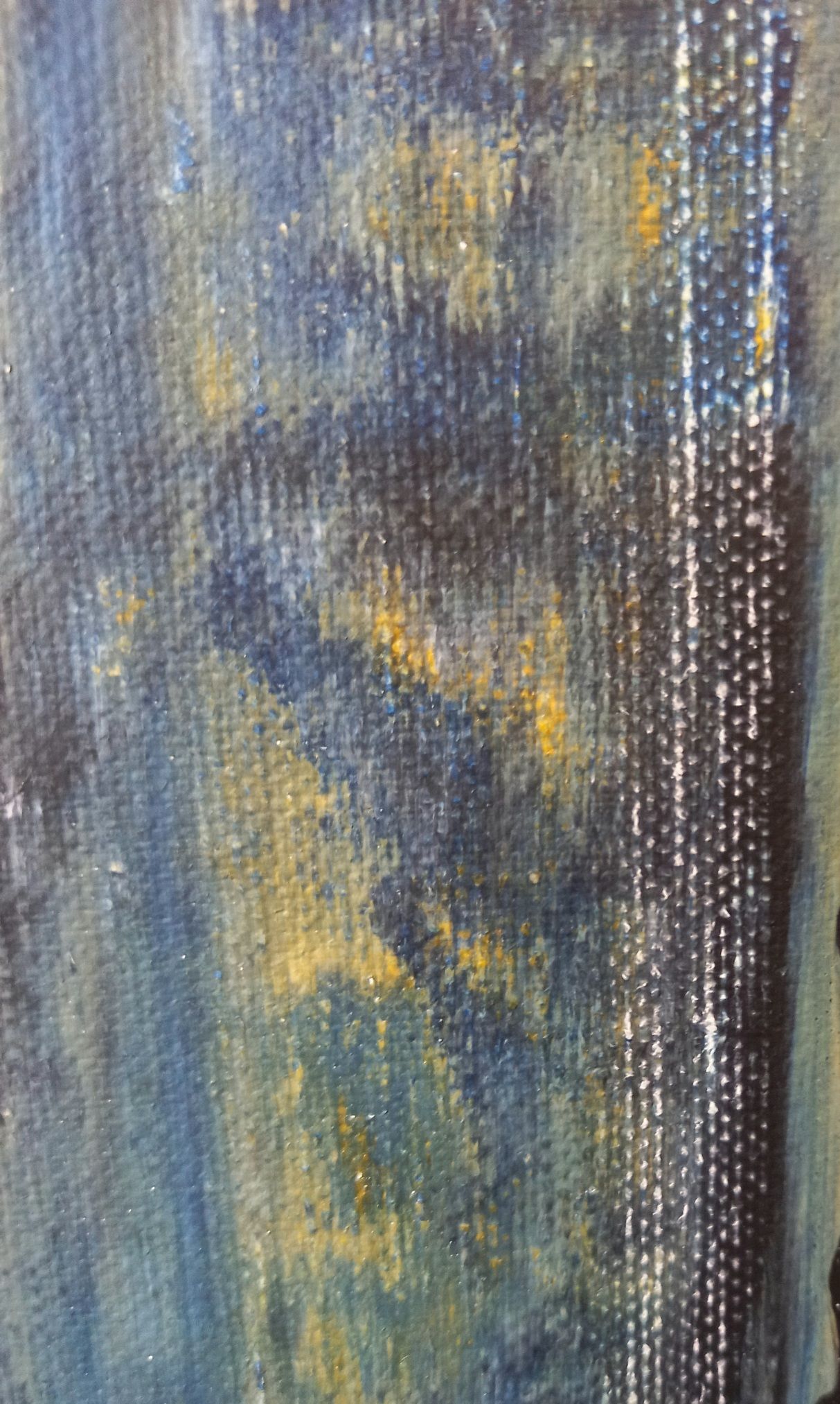 The second in a series of paintings inspired by waterfalls. The way the water cascades and flows allowing light, reflections and glimpses on what lies behind it.