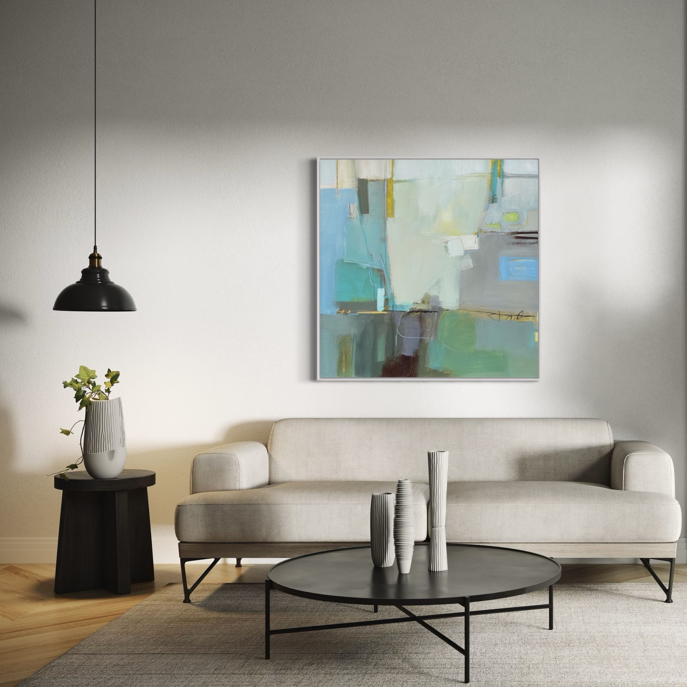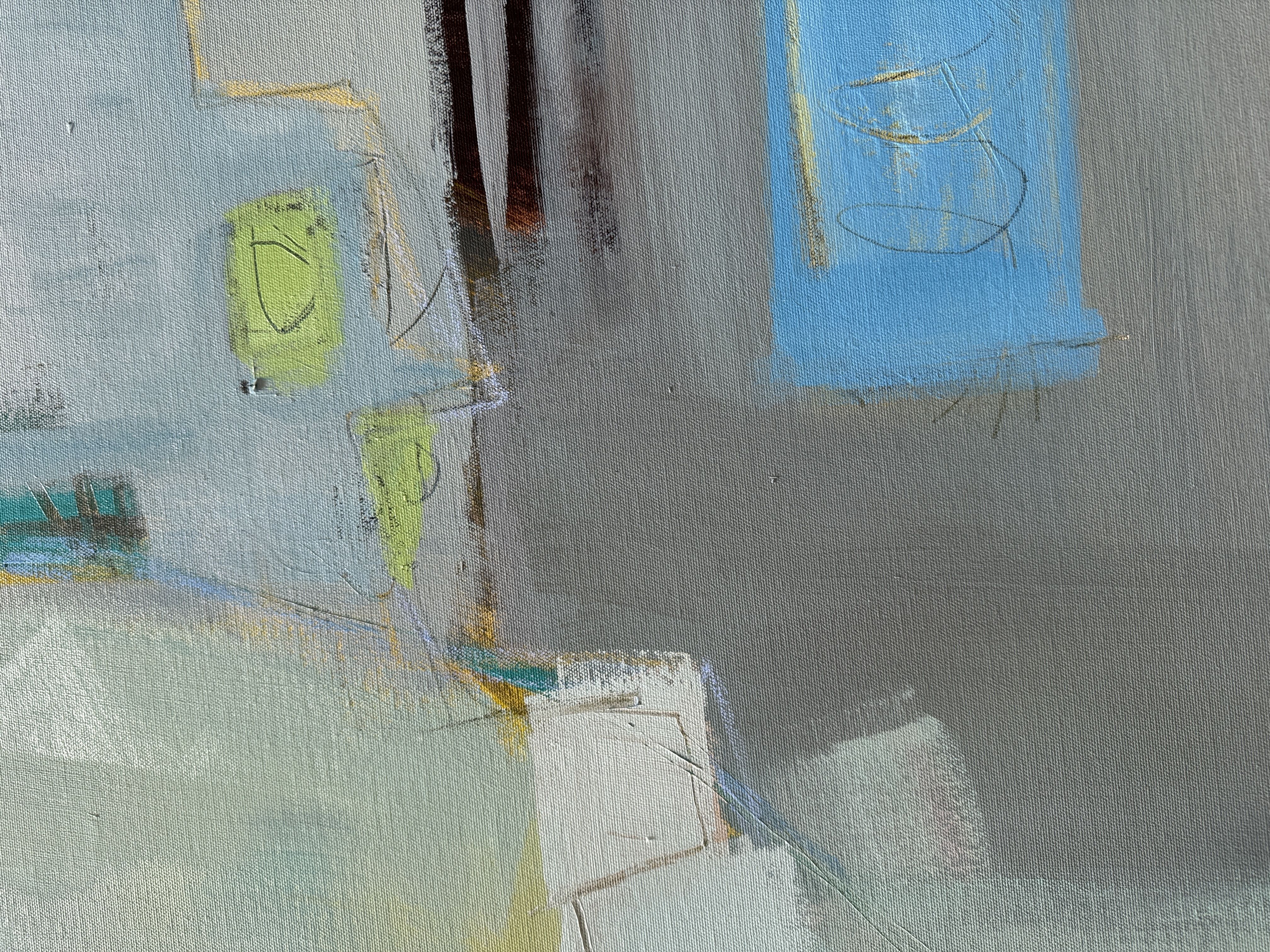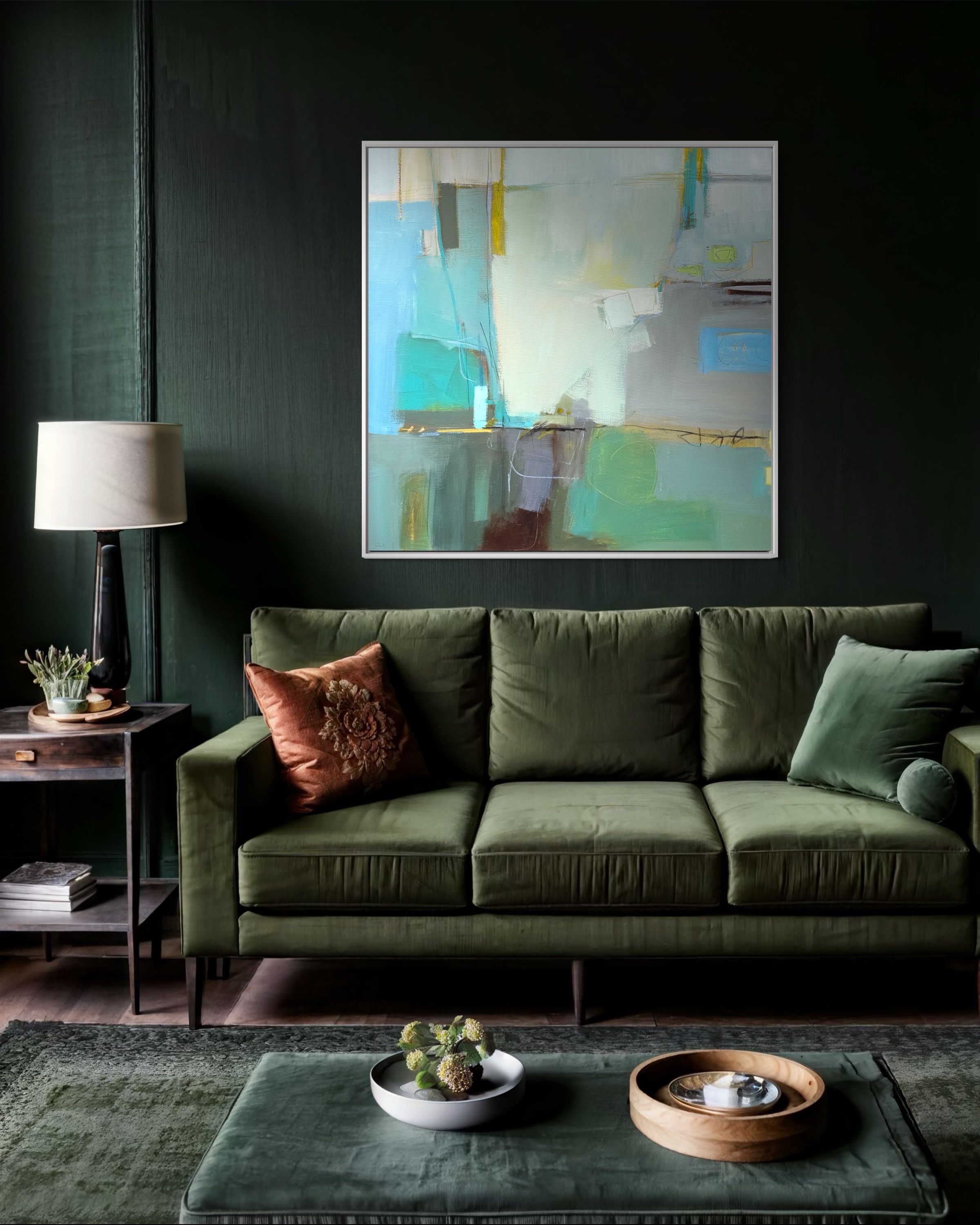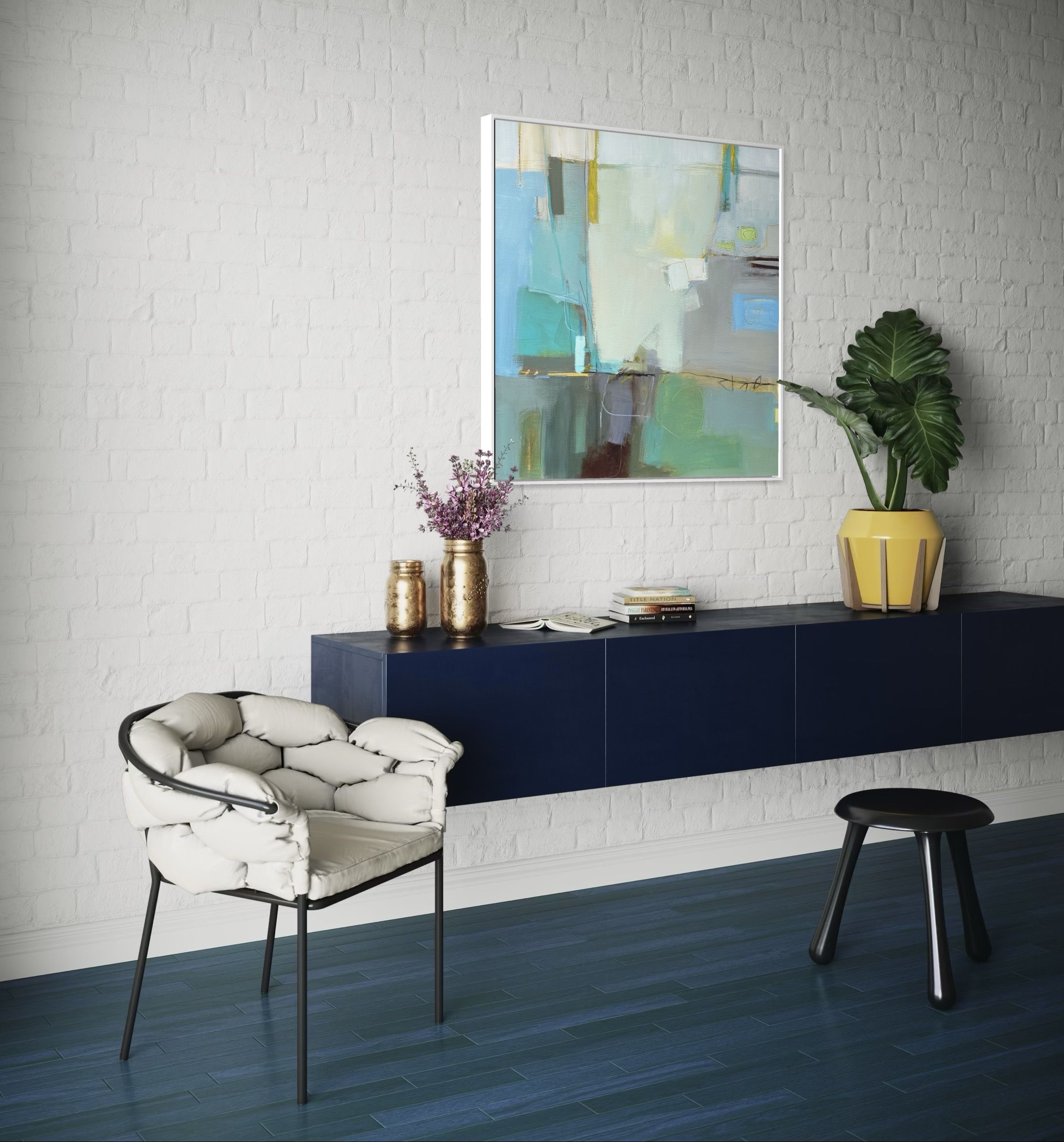 The UK has some of the most beautiful stretches of water and this painting using acrylic, ink, charcoal and pencils takes inspiration from the junction between the green of the fields and trees and where they greet the water whether that is river lake or sea.