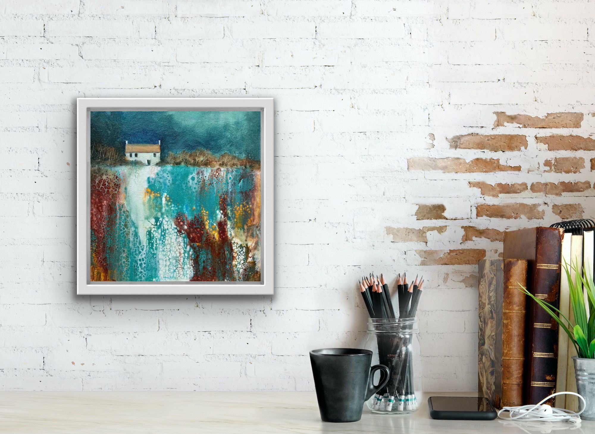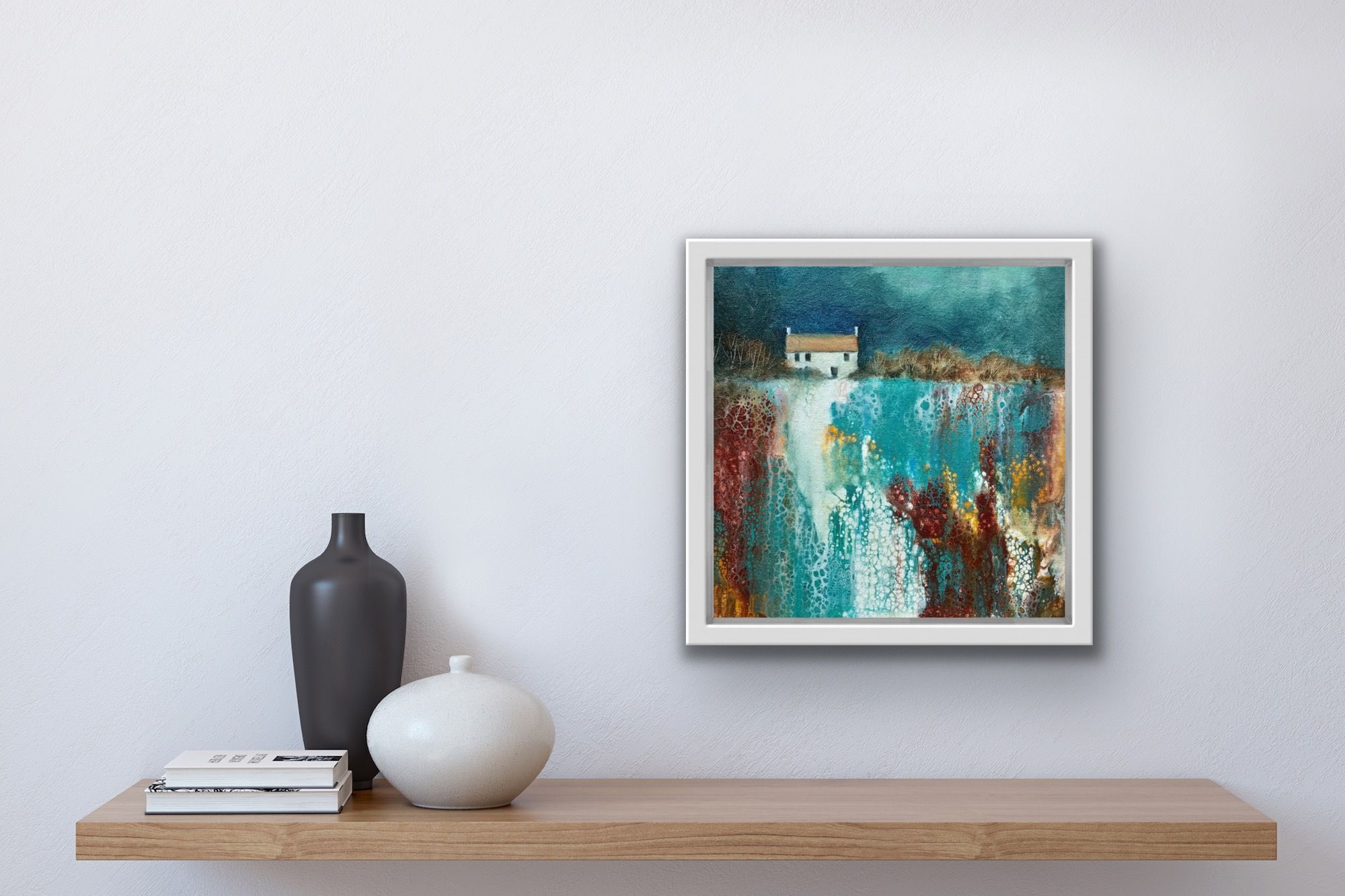 Cathryn Jeff No Neighbours Original Mixed Media Painting on Deep Canvas Canvas Size: 25 cm x 25 cm x 3.5 cm Sold Unframed Free Shipping Please note that in situ images are purely an indication of how a piece may look. No Neighbours is an original landscape painting on canvas by Cathryn Jeff. This artwork was predominantly