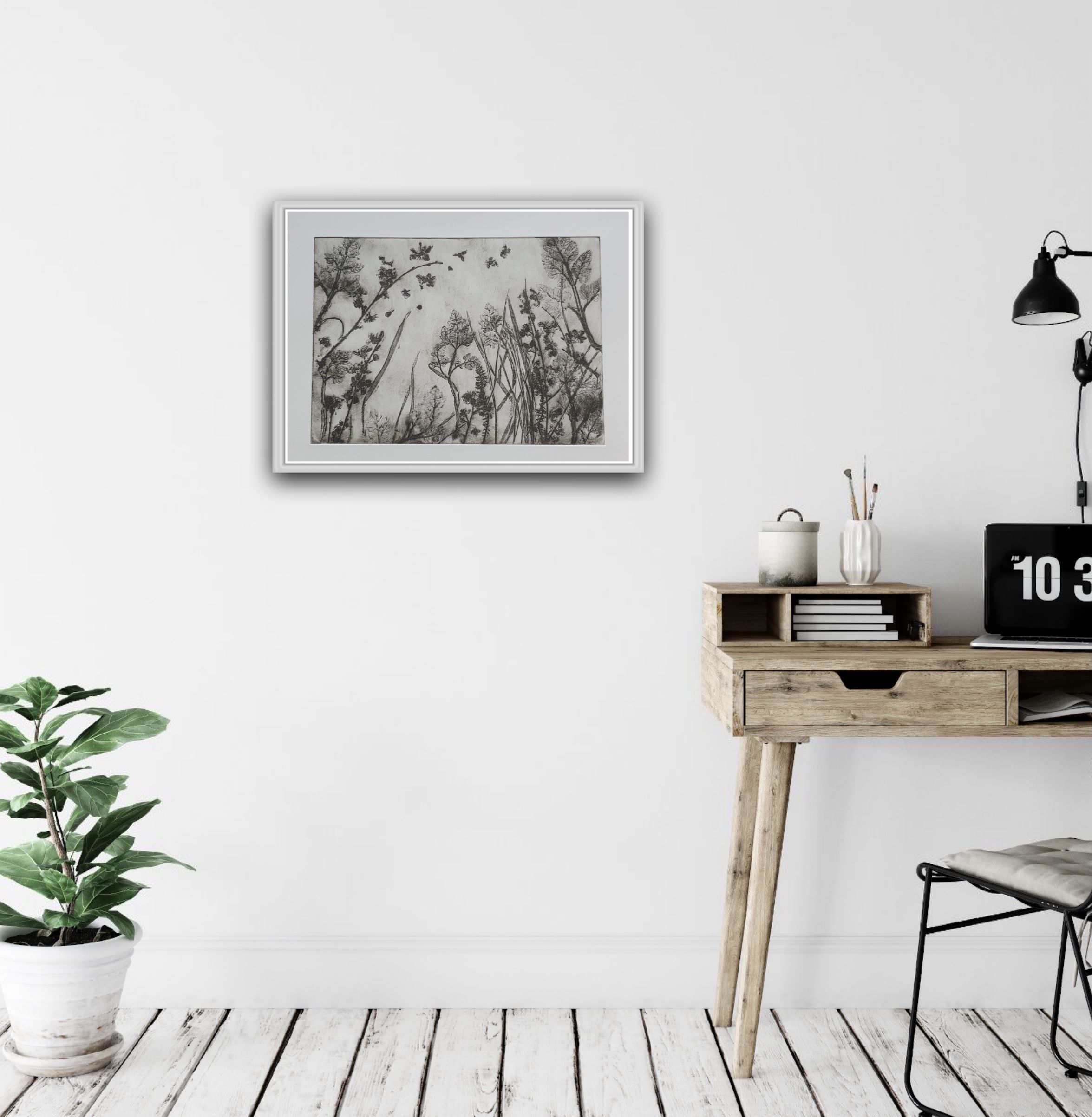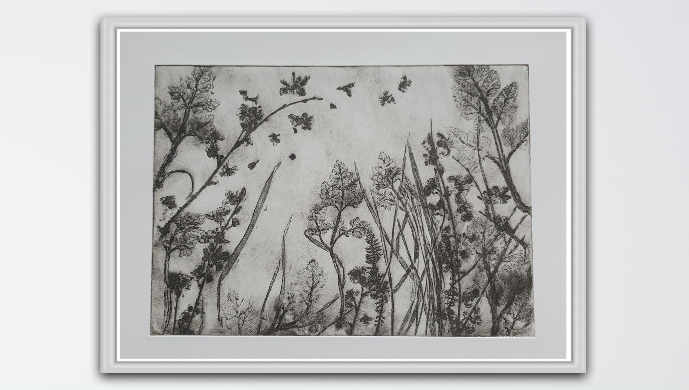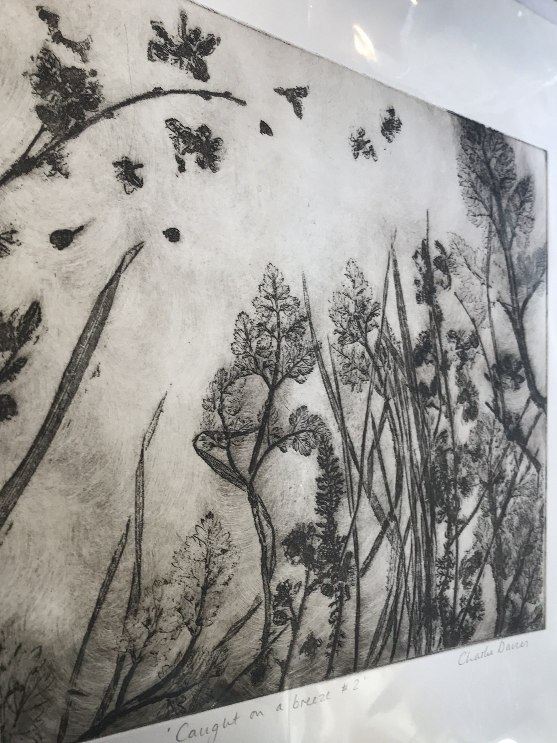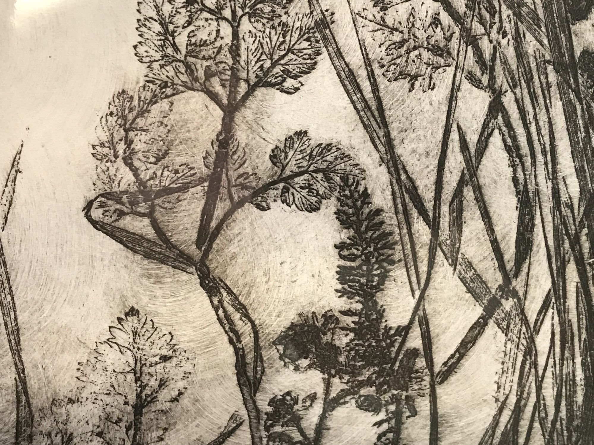 This soft ground etching was made using impressions of natural plants and printed with etching inks on Fabriano paper. ADDITIONAL INFORMATION: This print is a variable edition of 100, and is signed, numbered and comes with a certificate of authenticity. Please note that insitu pictures are just an indication of how the art