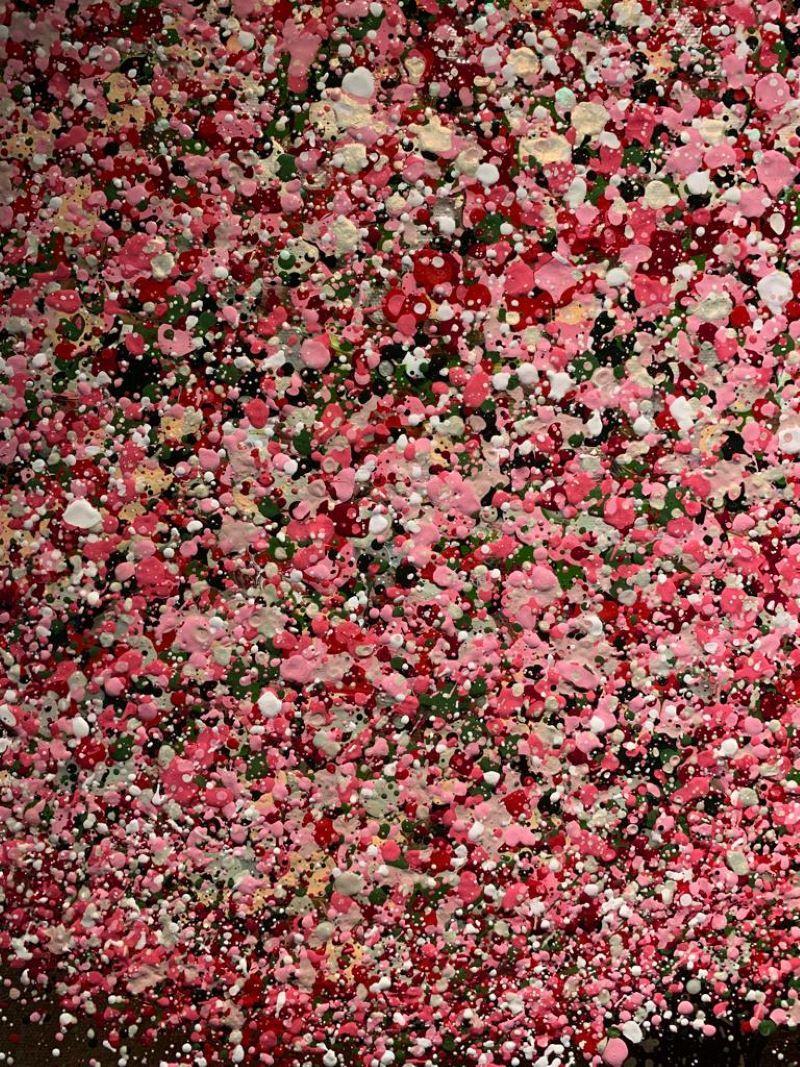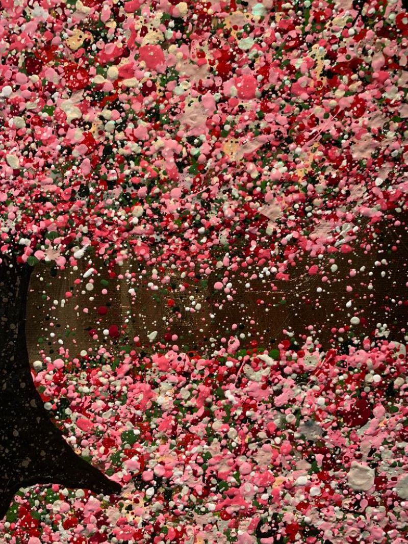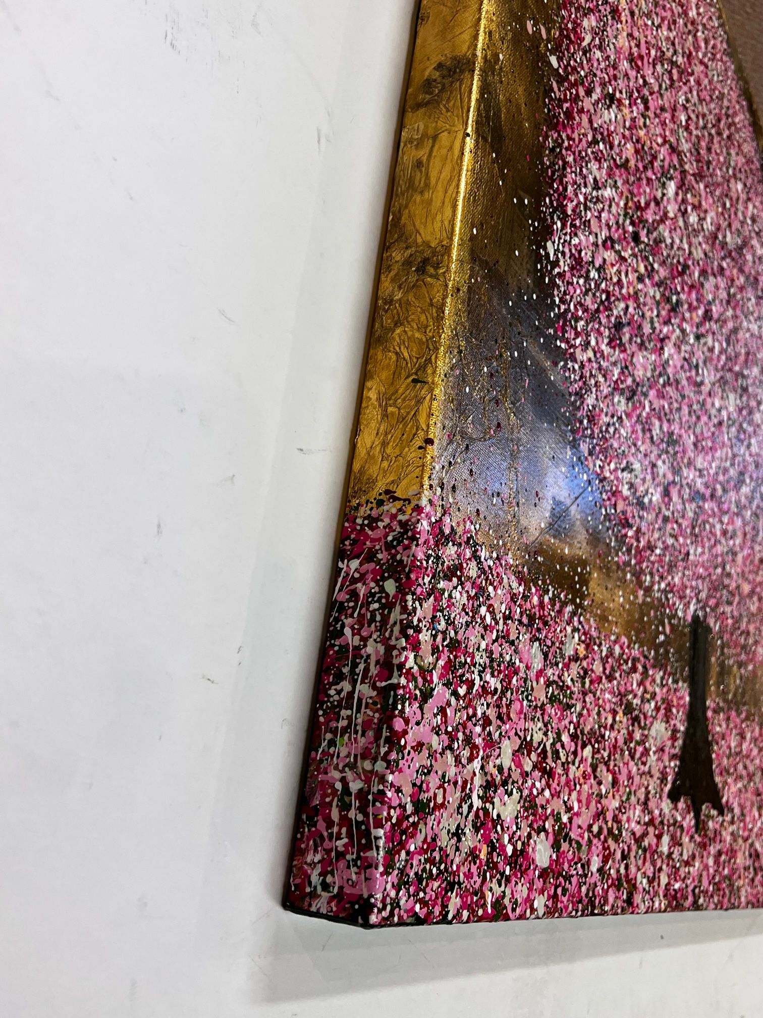 Cherry Blossom I by Nicky Chubb is an original painting of a vibrant pink tree against a gold background.