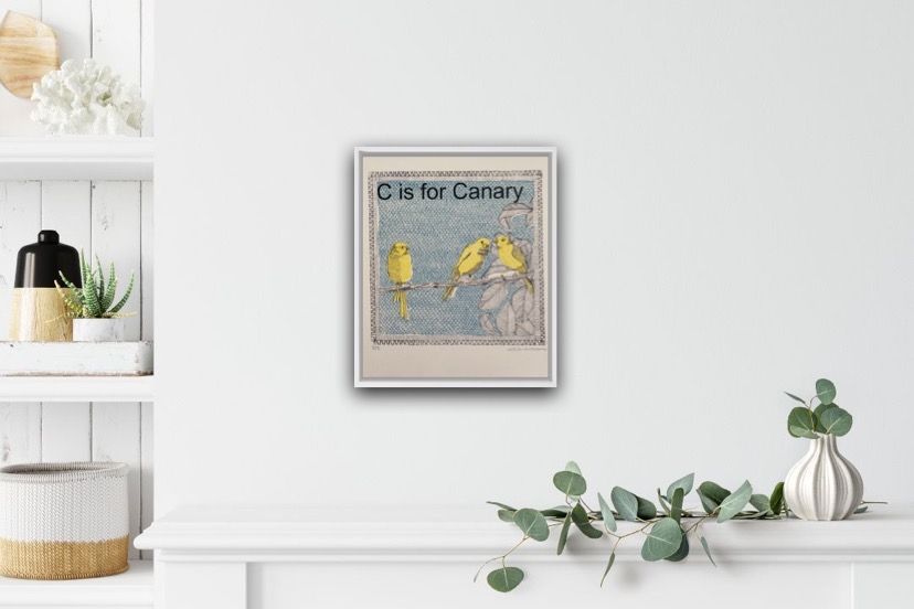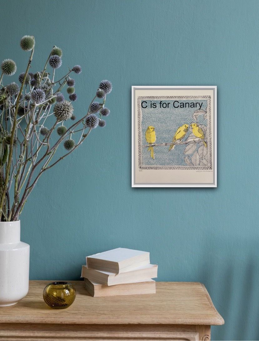 Clare HalifaX C Is for Canary Limited Edition 3 Colour Silkscreen Print Edition of 75 Image size H 22 x W 22cm Sheet Size: H 27 x W 25cm x D 0.1cm Sold Unframed Please note that in situ images are purely an indication of how a piece may look. The process involved in producing a print starts
