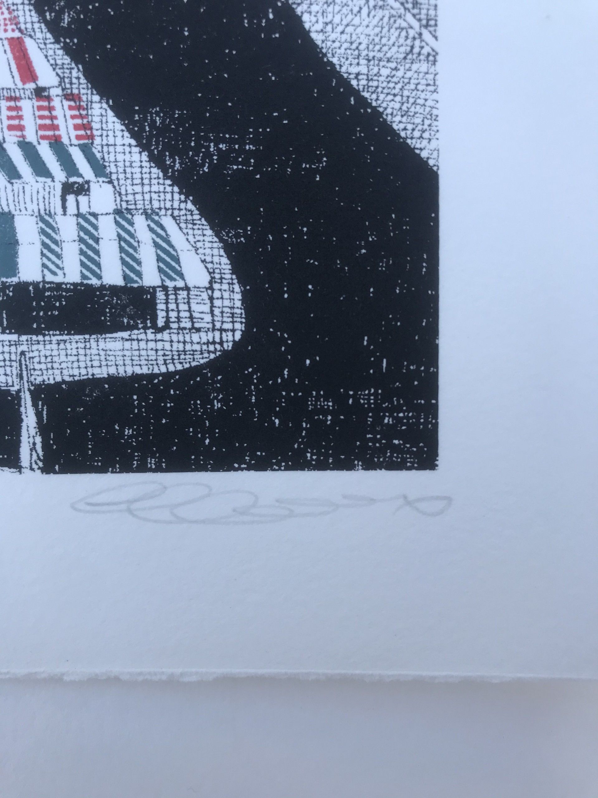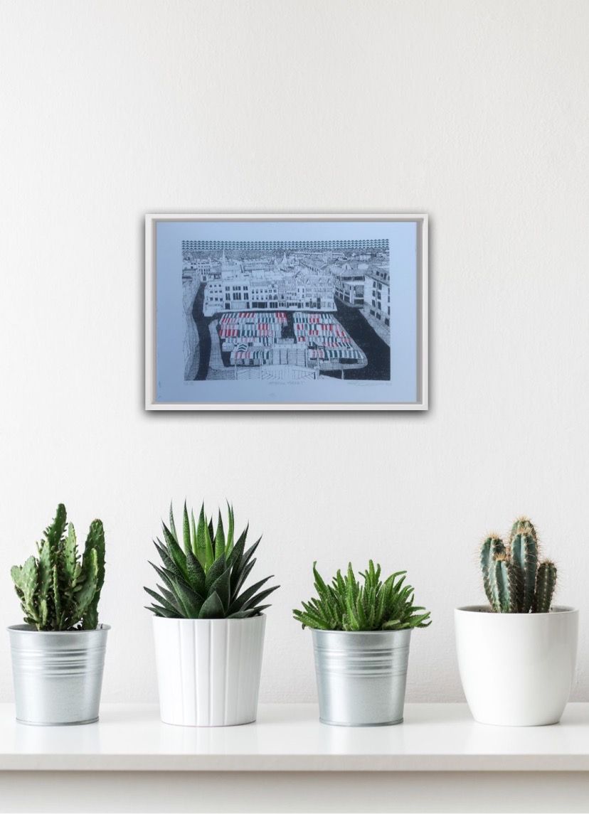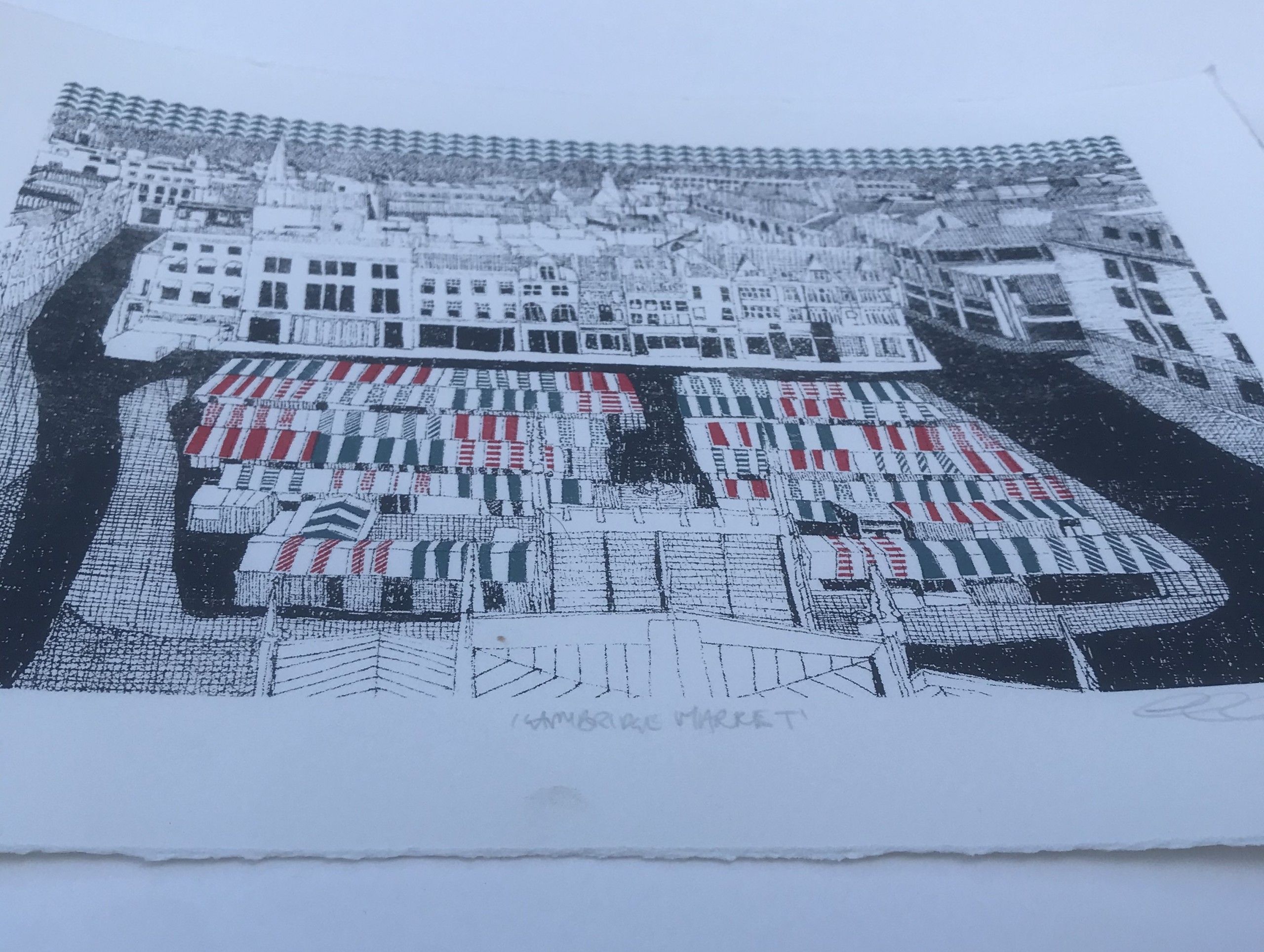Clare Halifax Cambridge Market Limited Edition Print Silkscreen Print on Paper Edition of 75 Image Size: H 12cm x W 25cm Sheet Size: H 22cm x W 31cm Signed Sold Unframed Please note that any insitu images are purely an indication of how a piece may look. Cambridge Market is a limited edition print by Clare Halifax. It