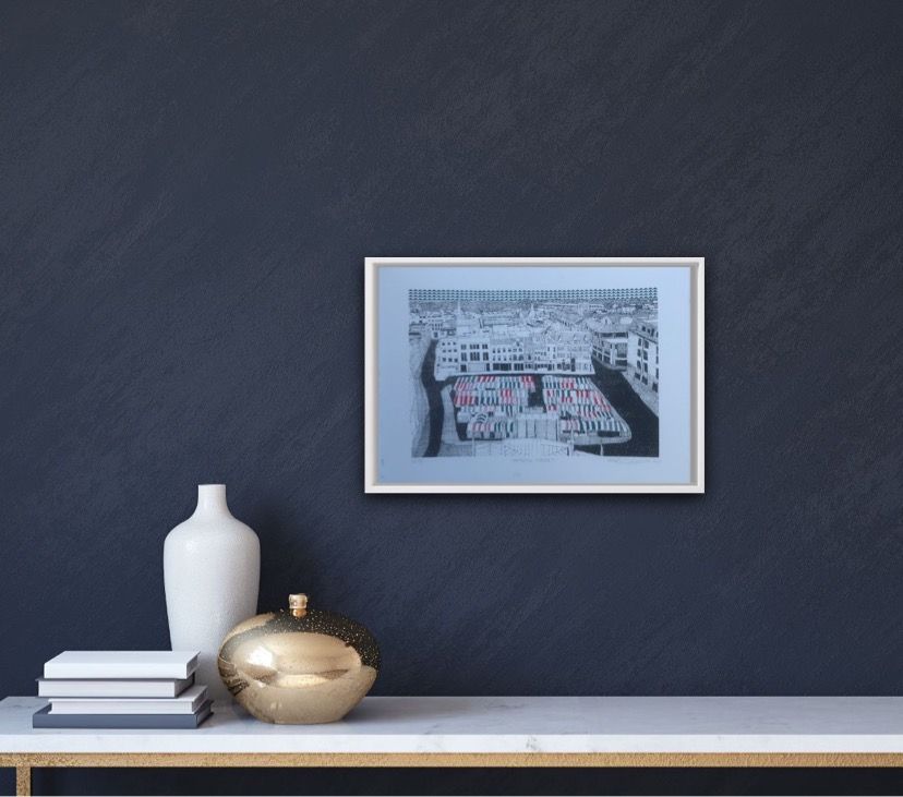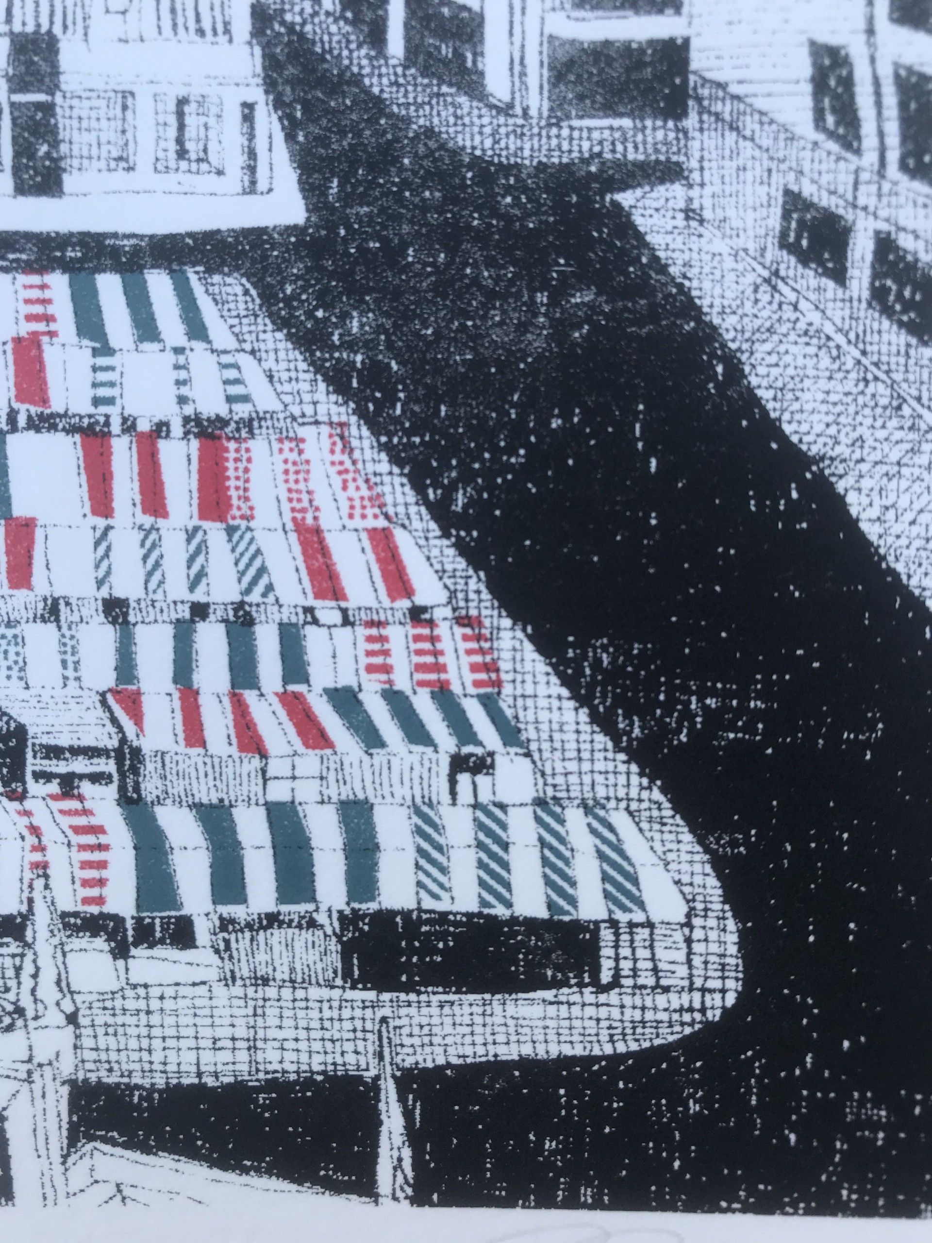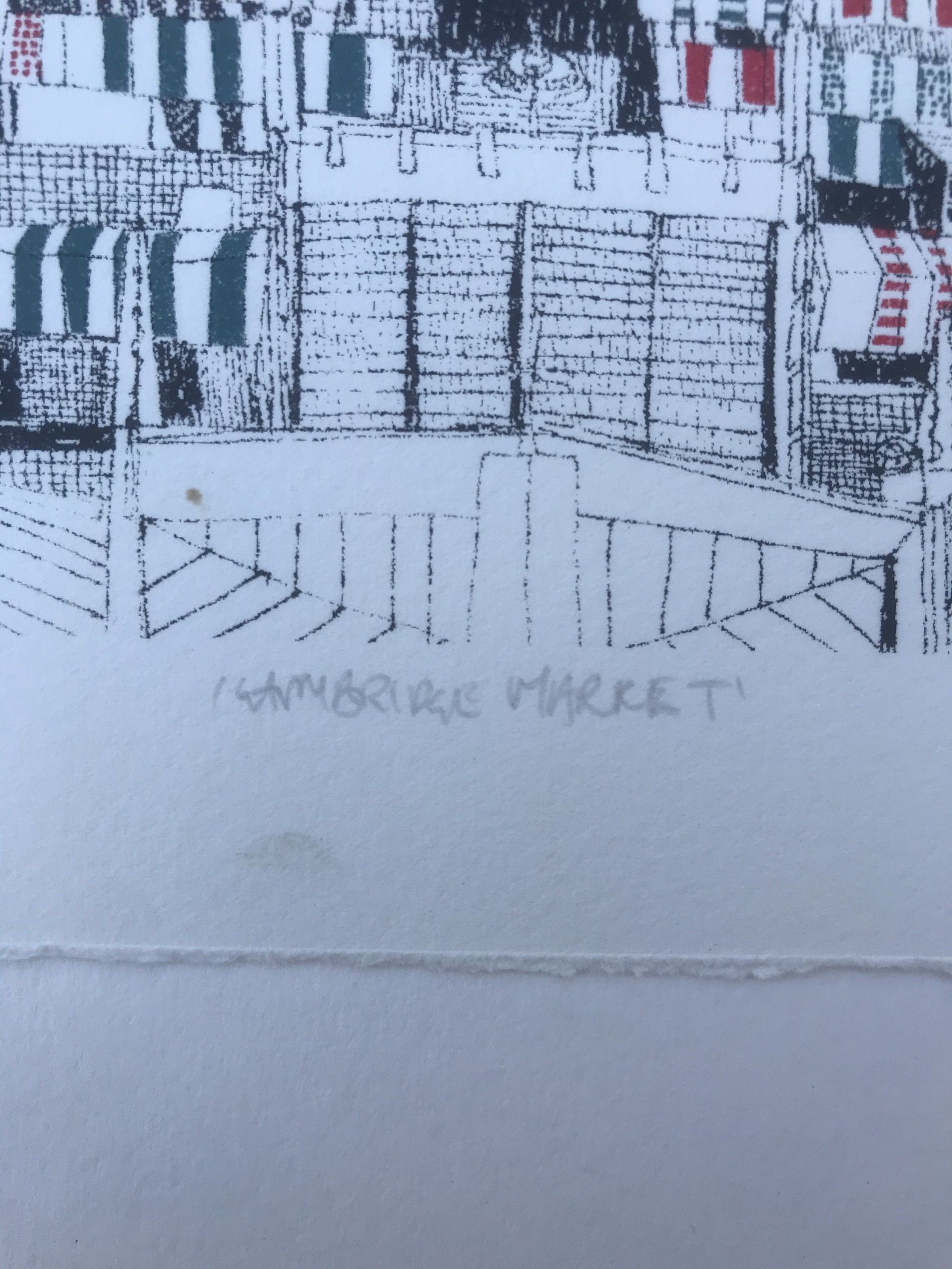 Clare Halifax Cambridge Market Limited Edition Print Silkscreen Print on Paper Edition of 75 Image Size: H 12cm x W 25cm Sheet Size: H 22cm x W 31cm Signed Sold Unframed Please note that any insitu images are purely an indication of how a piece may look. Cambridge Market is a limited edition print by Clare Halifax. It