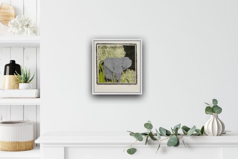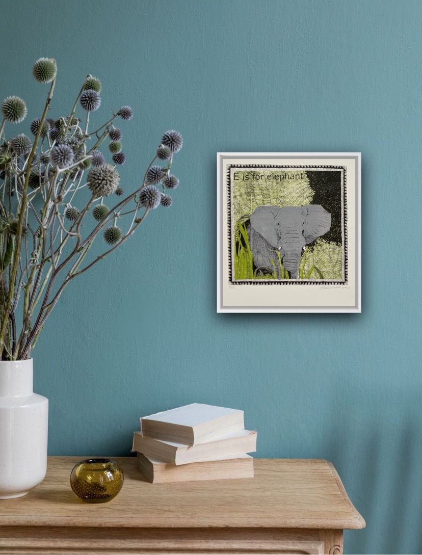 Clare Halifax E is for Elephant (small) Limited Edition 4 Colour Silkscreen Print Edition of 75 Image size H 22 x W 22cm Sheet Size: H 27 x W 25cm x D 0.1cm Sold Unframed Please note that in situ images are purely an indication of how a piece may look. The process involved in producing a print