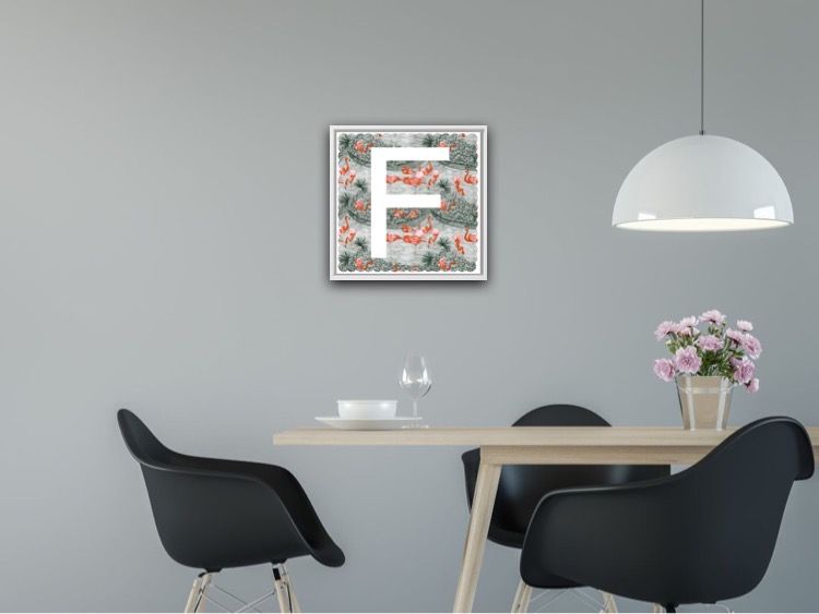 Clare Halifax F is for Flamingo Limited Edition 3 colour screen print Edition of 100 Sheet Size: H 38cm x W 37cm x 0.1cm Sold Unframed Hand printed by the artist onto somerset satin paper 300gms with deckle edge. Please Note that in situ images are purely an indication of how a piece may look F is for