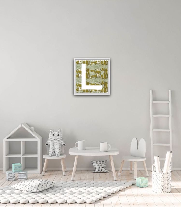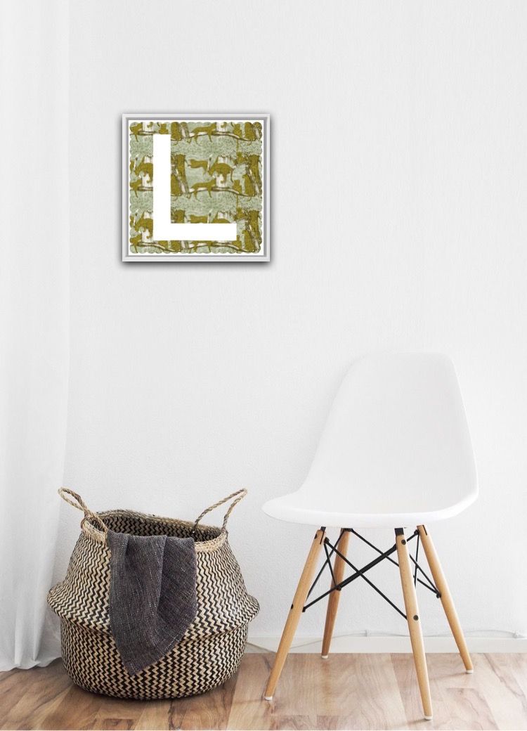 Clare Halifax L is for Leopard Limited Edition 3 colour screen print Edition of 100 Sheet Size: H 38cm x W 37cm x 0.1cm Sold Unframed Hand printed by the artist onto somerset satin paper 300gms with deckle edge. Please Note that in situ images are purely an indication of how a piece may look L is for