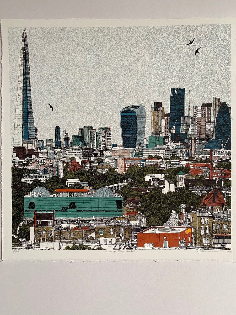 Clare Halifax Living and Learning in London Limited Edition 9 Colour Silkscreen Print Edition of 75 Sheet Size: H 37cm x W 38cm x D 0.1cm Sold Unframed Please note that in situ images are purely an indication of how a piece may look. The process involved in producing a print starts with an observational pen drawing