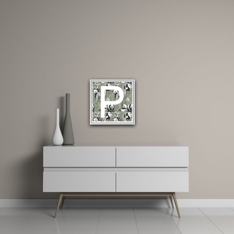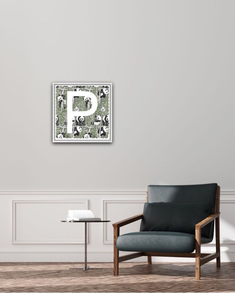 Clare Halifax P is for Panda Limited Edition 3 colour screen print Edition of 100 Sheet Size: H 38cm x W 37cm x 0.1cm Sold Unframed Hand printed by the artist onto somerset satin paper 300gms with deckle edge. Please Note that in situ images are purely an indication of how a piece may look P is for