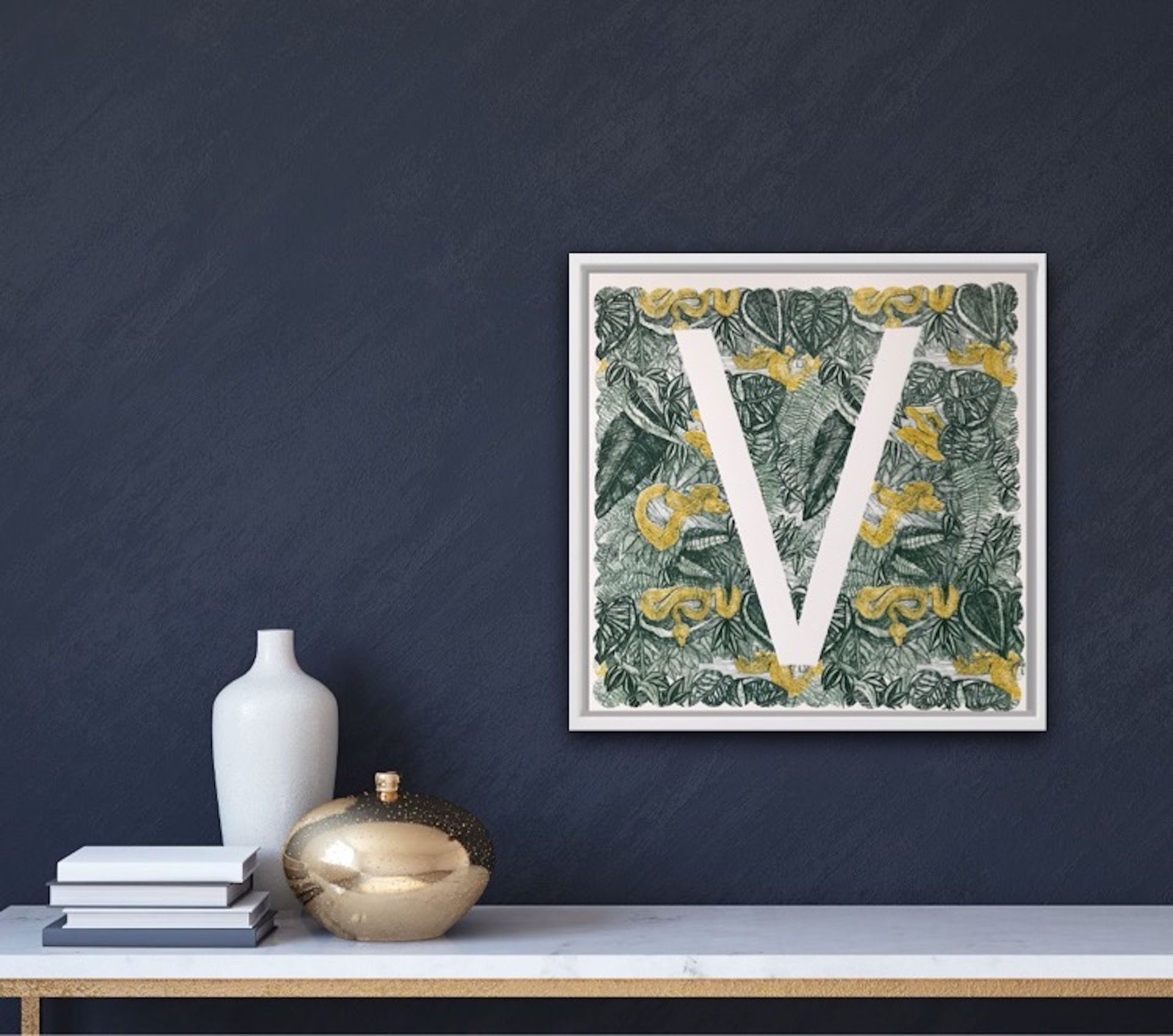 Clare Halifax V is for Viper Limited Edition 4 colour screen print Edition of 100 Sheet Size: H 38cm x W 37cm x 0.1cm Sold Unframed Hand printed by the artist onto somerset satin paper 300gms with deckle edge. Please Note that in situ images are purely an indication of how a piece may look Clare Halifax has