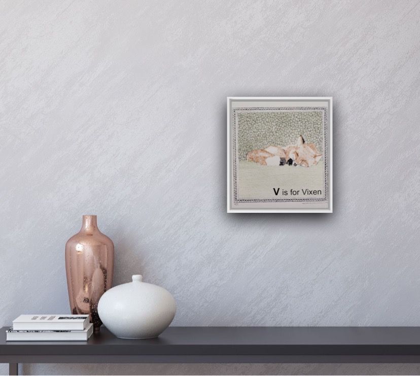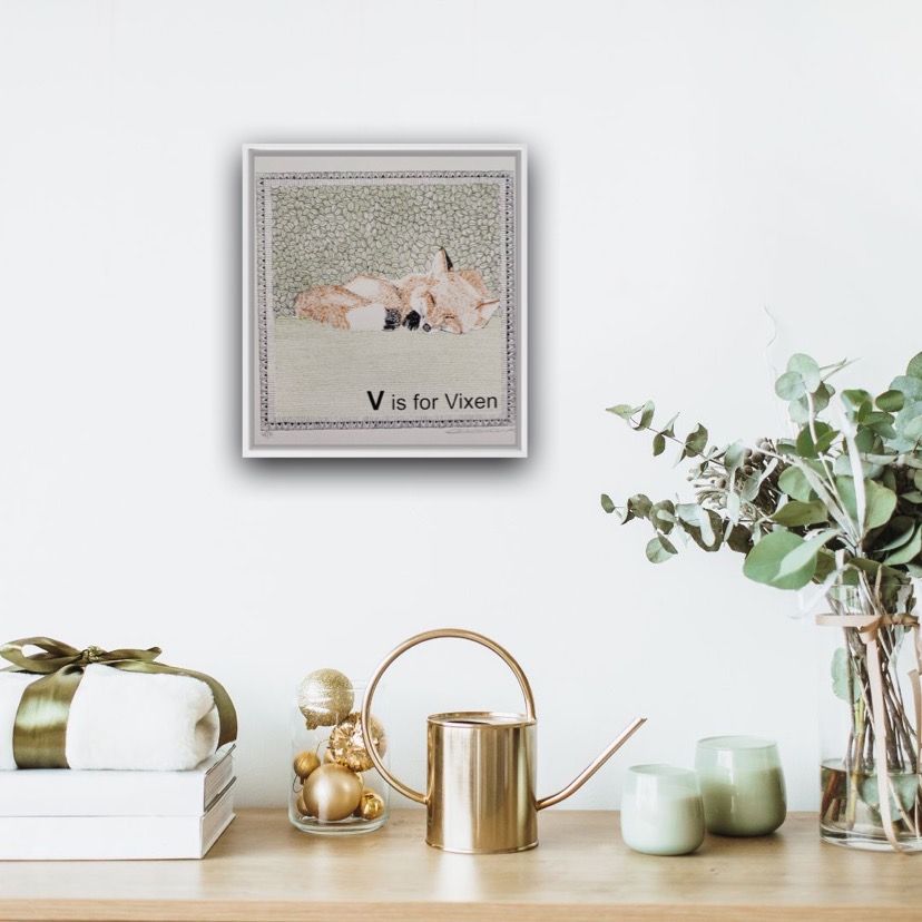 Clare Halifax V is for Vixen Limited Edition 3 Colour Silkscreen Print Edition of 75 Image size H 22 x W 22cm Sheet Size: H 27 x W 25cm x D 0.1cm Sold Unframed Please note that in situ images are purely an indication of how a piece may look. The process involved in producing a print starts