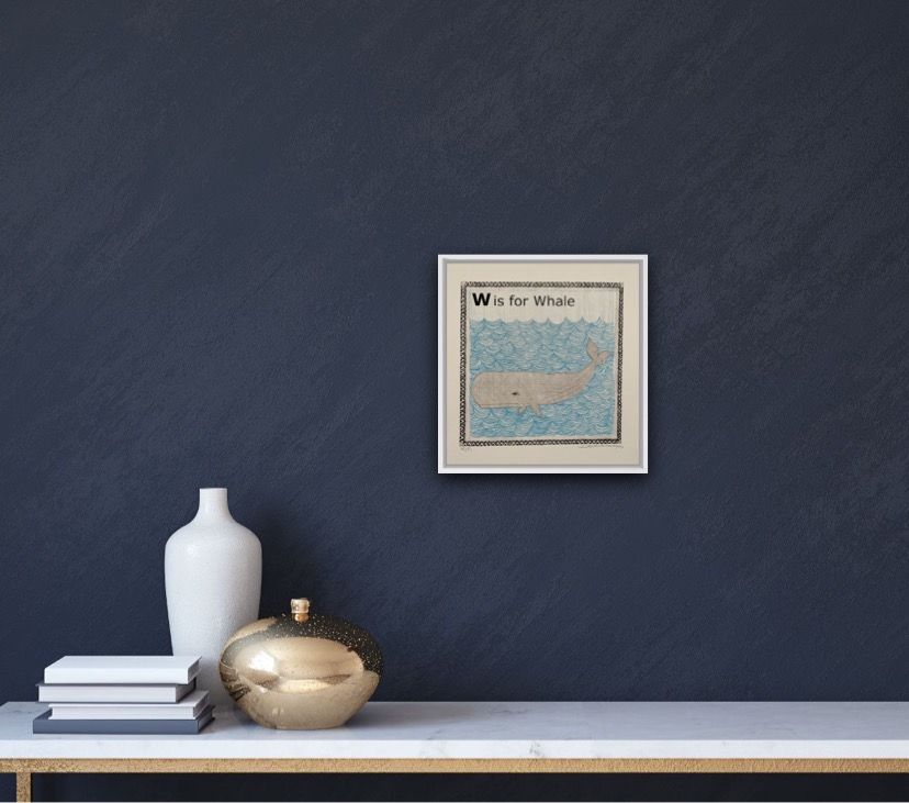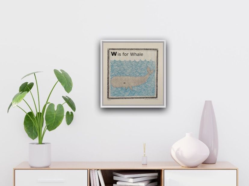 Clare Halifax W is for Whale (small) Limited Edition 3 Colour Silkscreen Print Edition of 75 Image size H 22 x W 22cm Sheet Size: H 27 x W 25cm x D 0.1cm Sold Unframed Please note that in situ images are purely an indication of how a piece may look. The process involved in producing a print