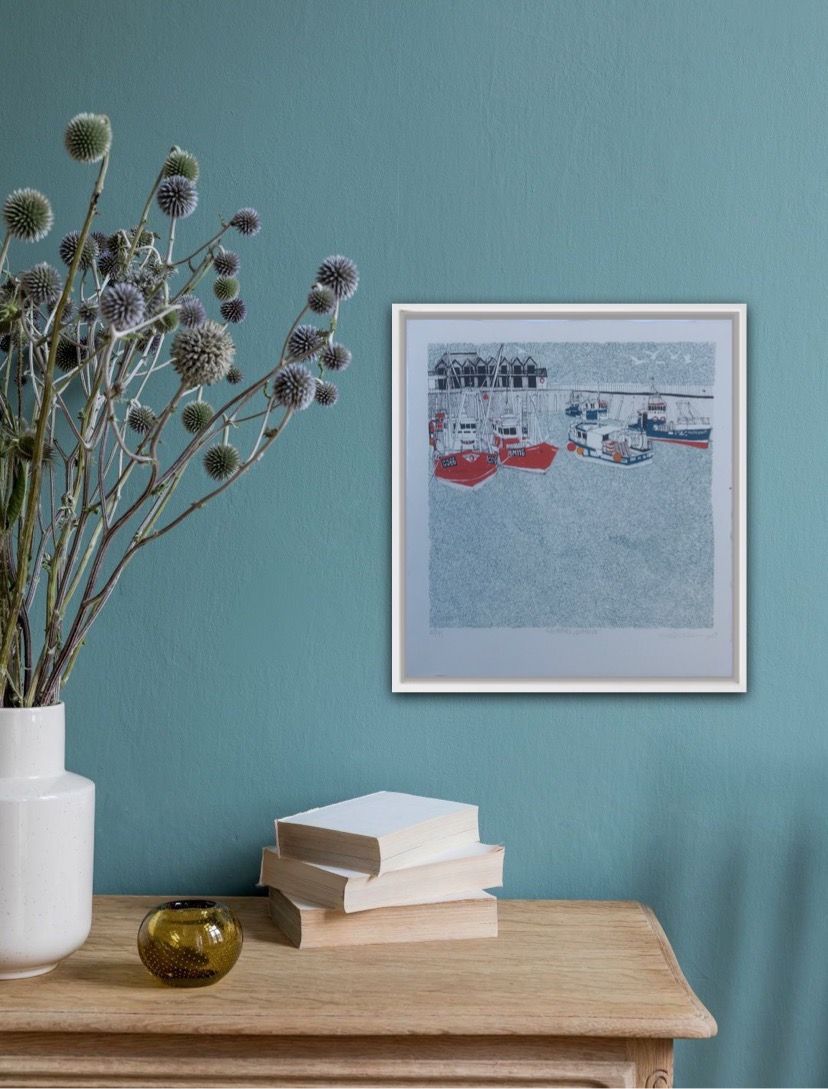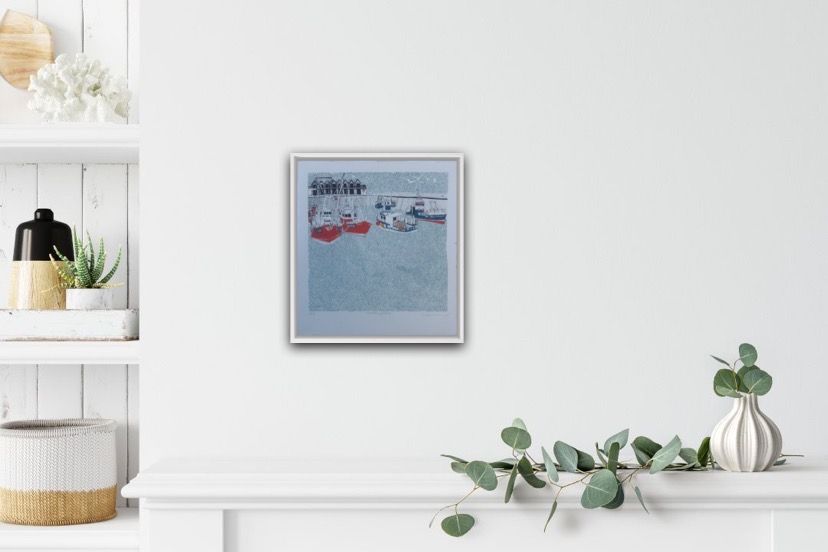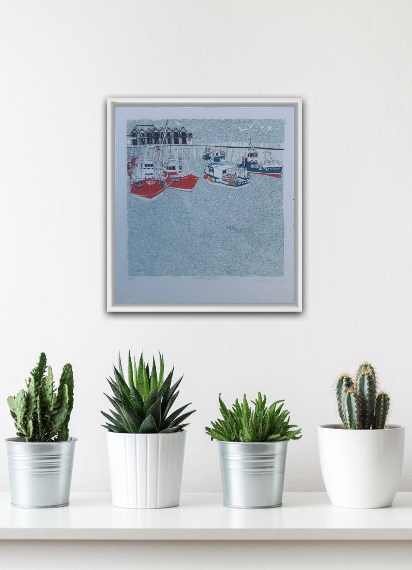 Clare Halifax Whitstable Harbour Limited Edition Print Silk Screen Print Edition of 75 Image Size: H 23cm x W 23cm Paper Size: H 25cm x W 25cm Signed Sold Unframed Please note that any insitu images are purely an indication of how a piece may look. Whitstable Harbour is a limited
