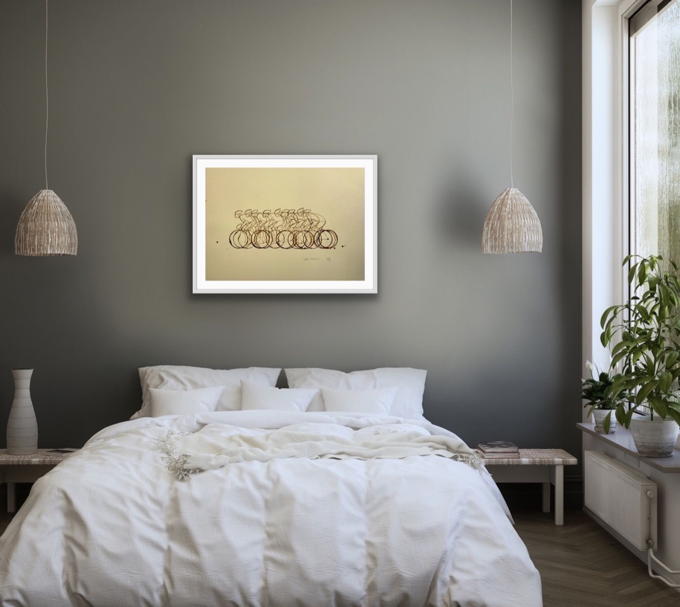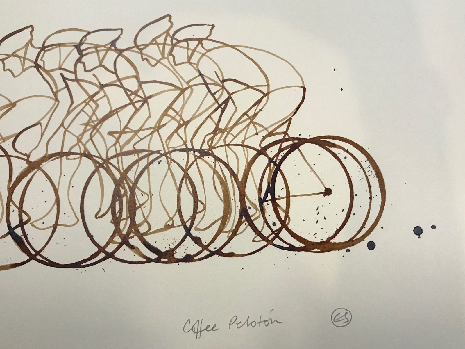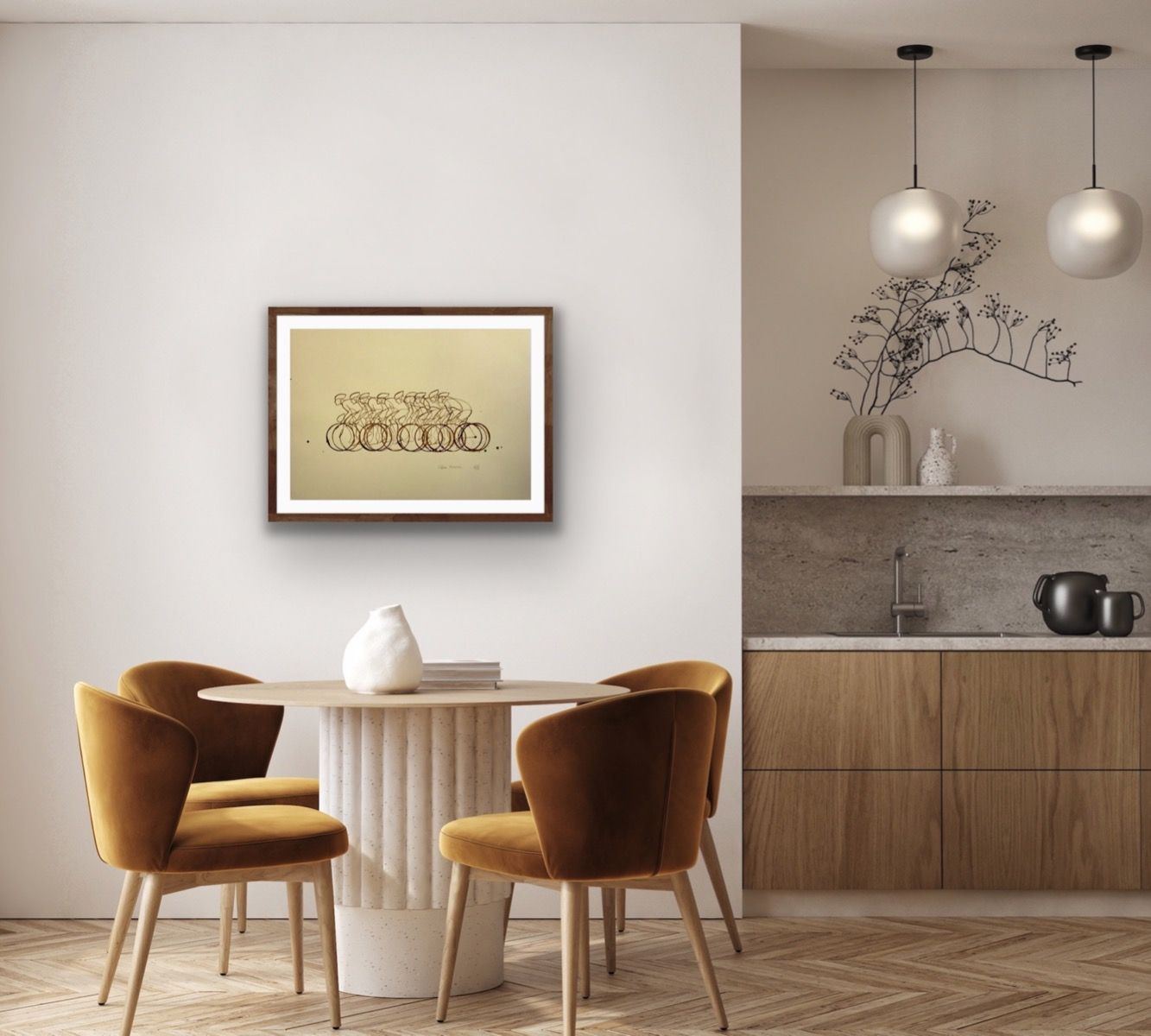 Additional information:Eliza SouthwoodCoffee on paperSold unframed Image size ( dimentions of the cyclists): Height: 17.2cmWidth: 47cmComplete size of unframed painting Height:49cmWidth: 69cmDepth: 0.1cm