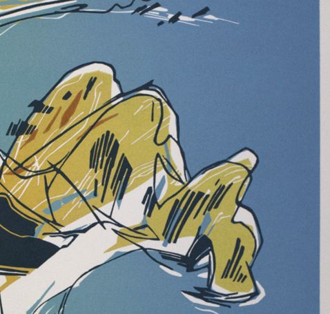 Colin Moore Durdle Door Limited Edition Linocut Print Edition of 100 Image Size: H 34cm x W 24.5cm Sheet Size: H 45cm x W 34.5 cm x D 0.1cm Sold Unframed Please note that insitu images are purely an indication of how a piece may look. Durdle Door is a limited edition three block colour lino print by Colin